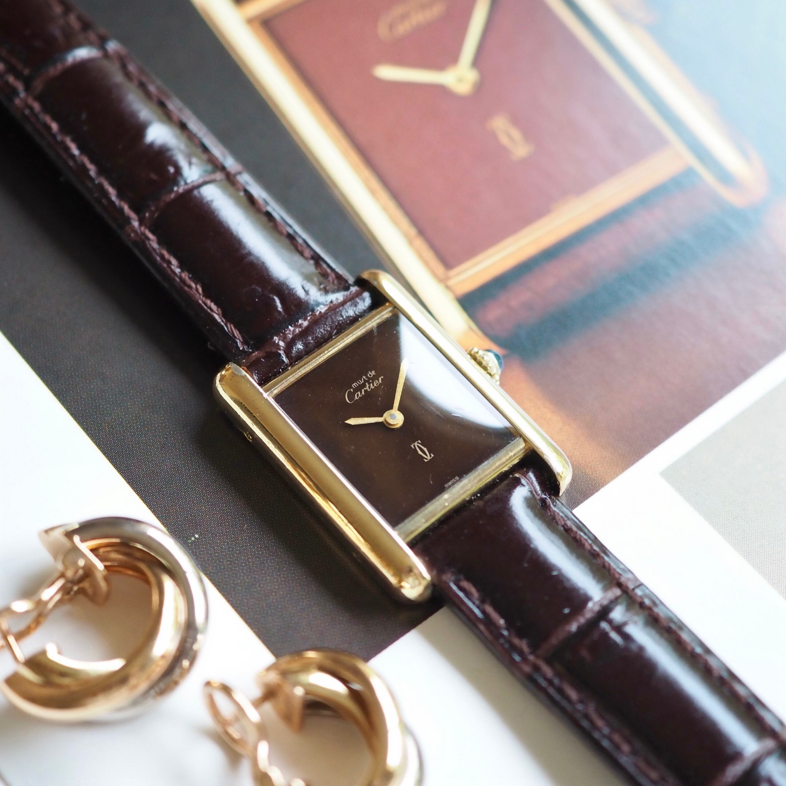 OH済 Cartier カルティエ マストタンク マーブルブラウン文字盤