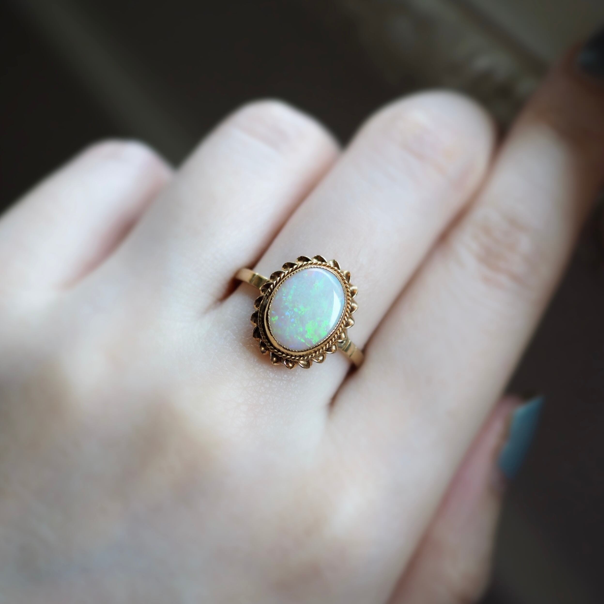イギリス ヴィンテージリング ホワイトオパール 英国 指輪