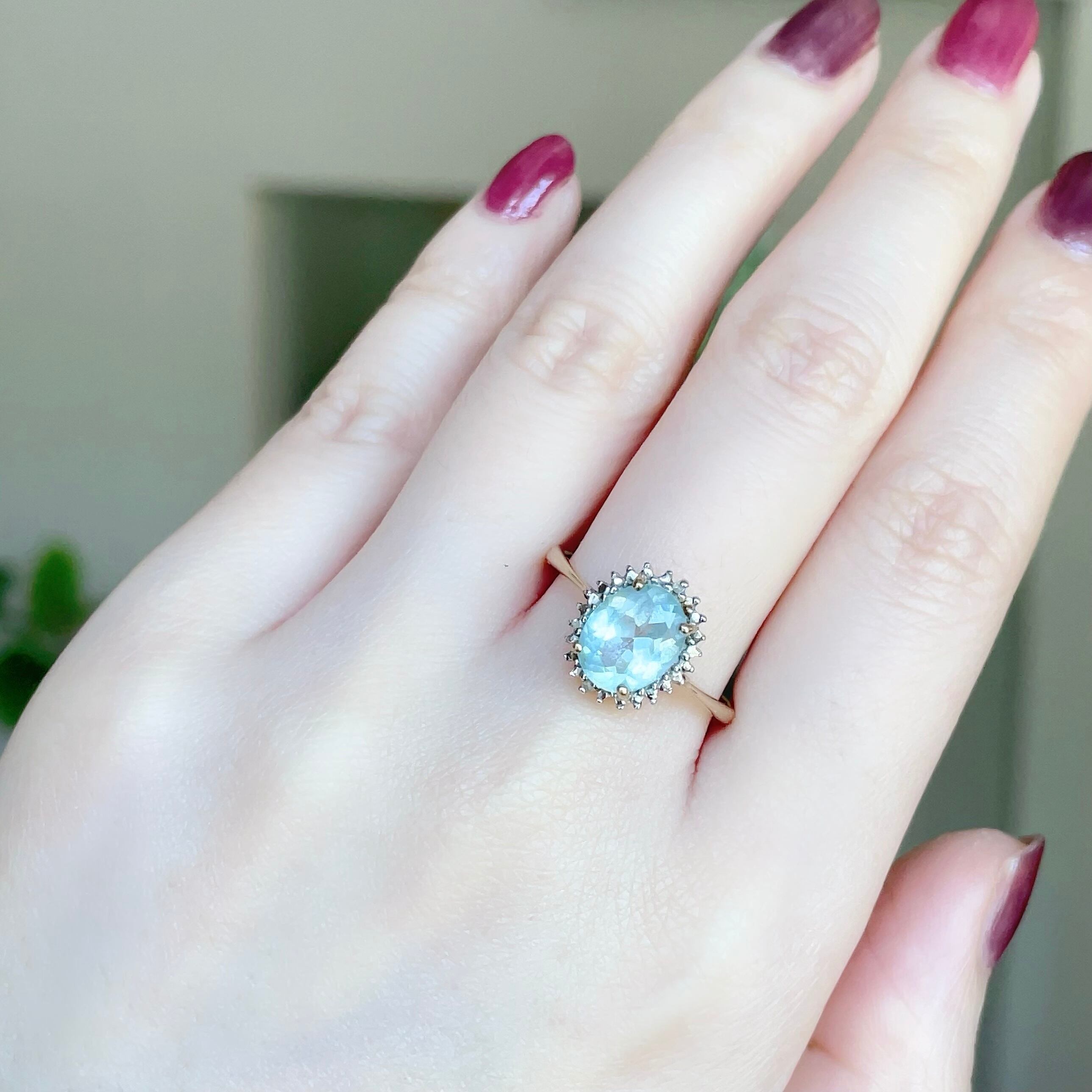 イギリス ヴィンテージリング アクアマリン&ダイヤモンド