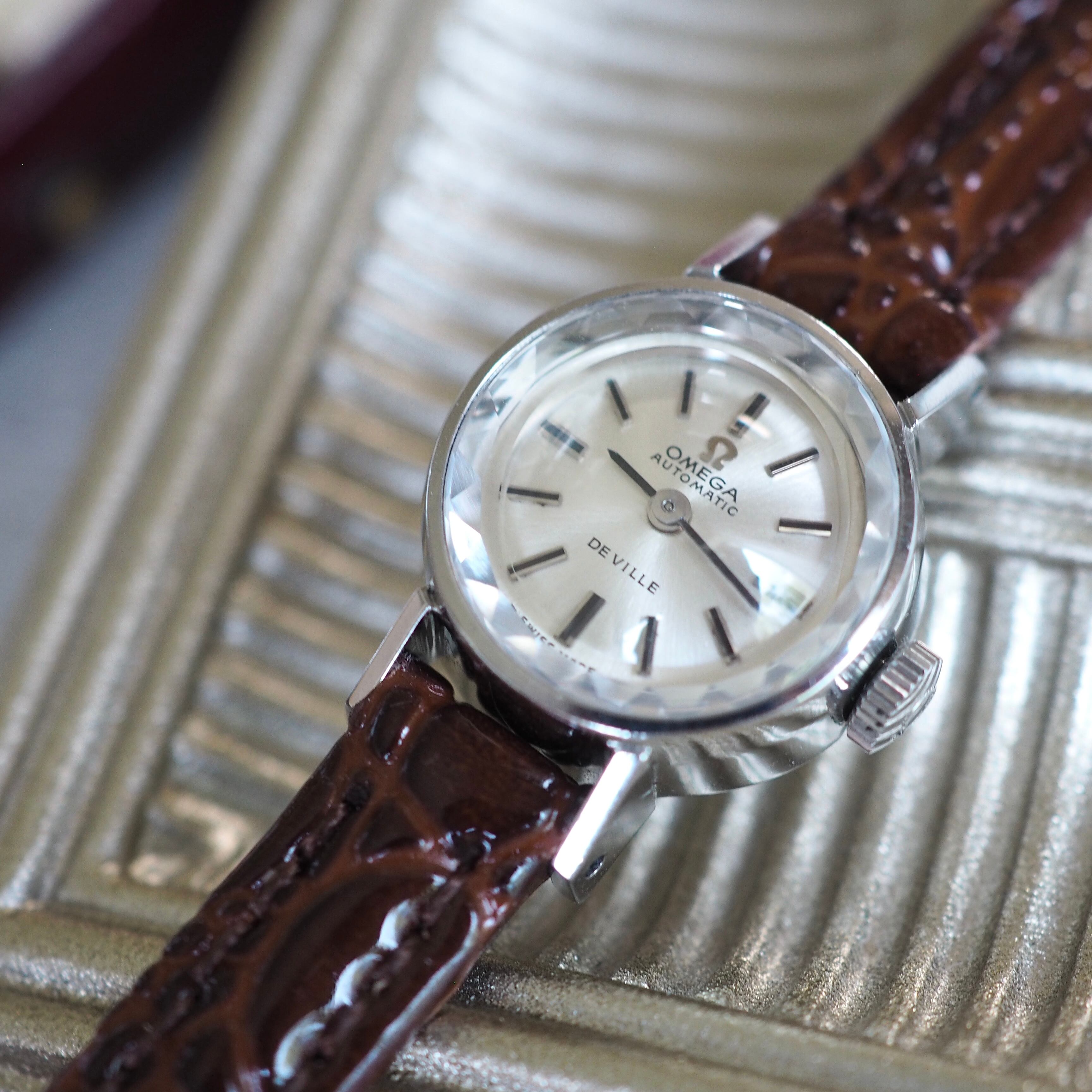 アンティークオメガのアイコンとも言える人気のサファイアカットガラスのdevilleモデルです。
