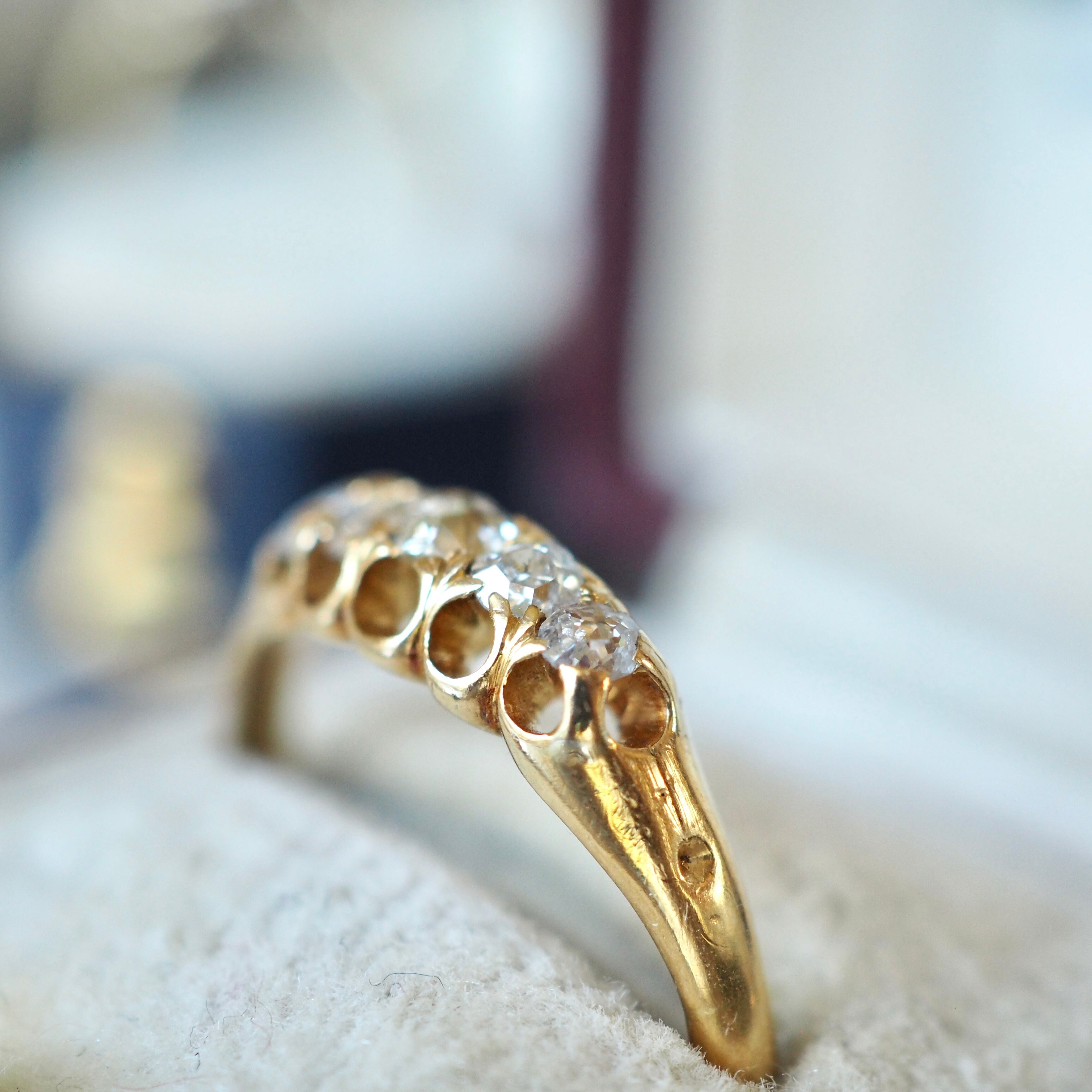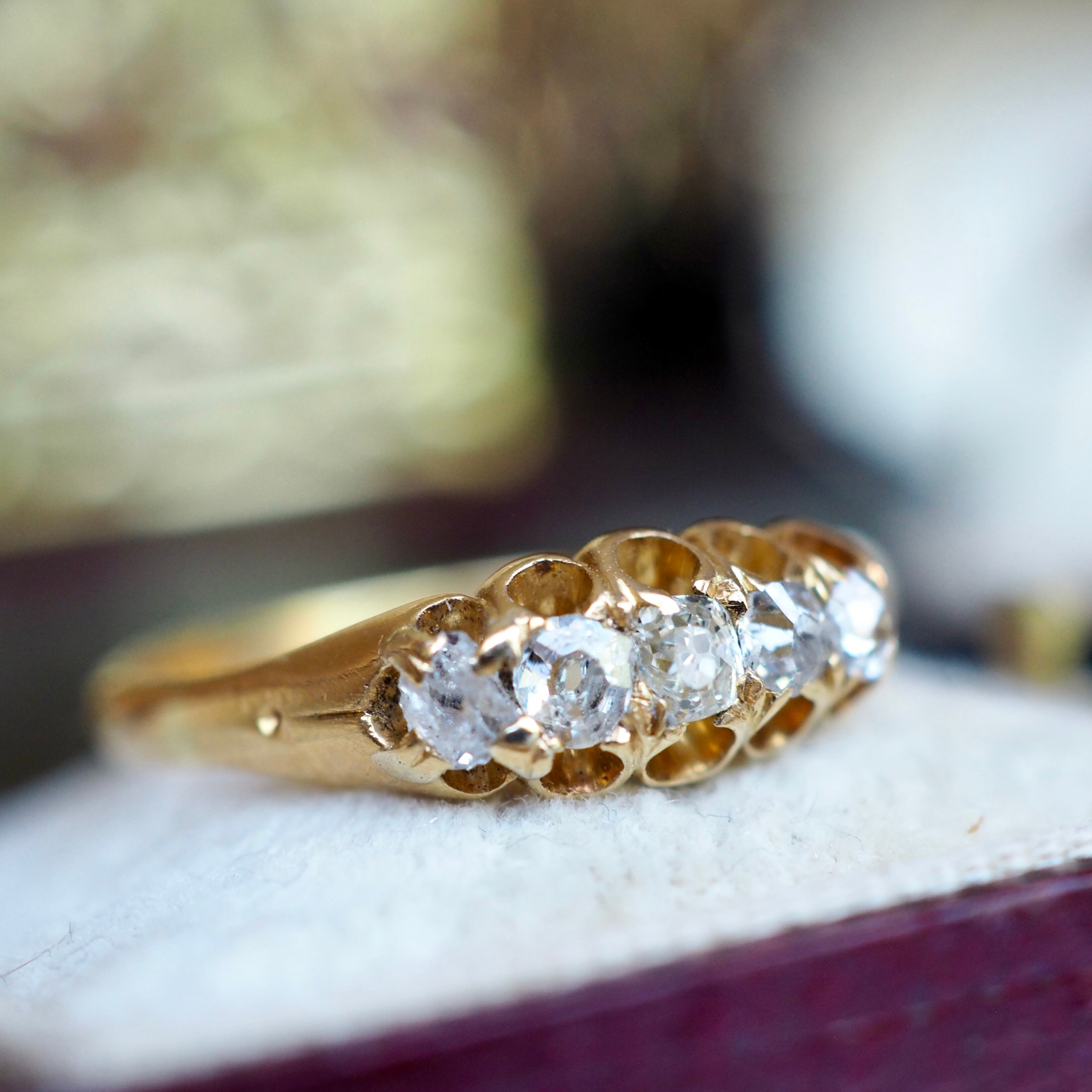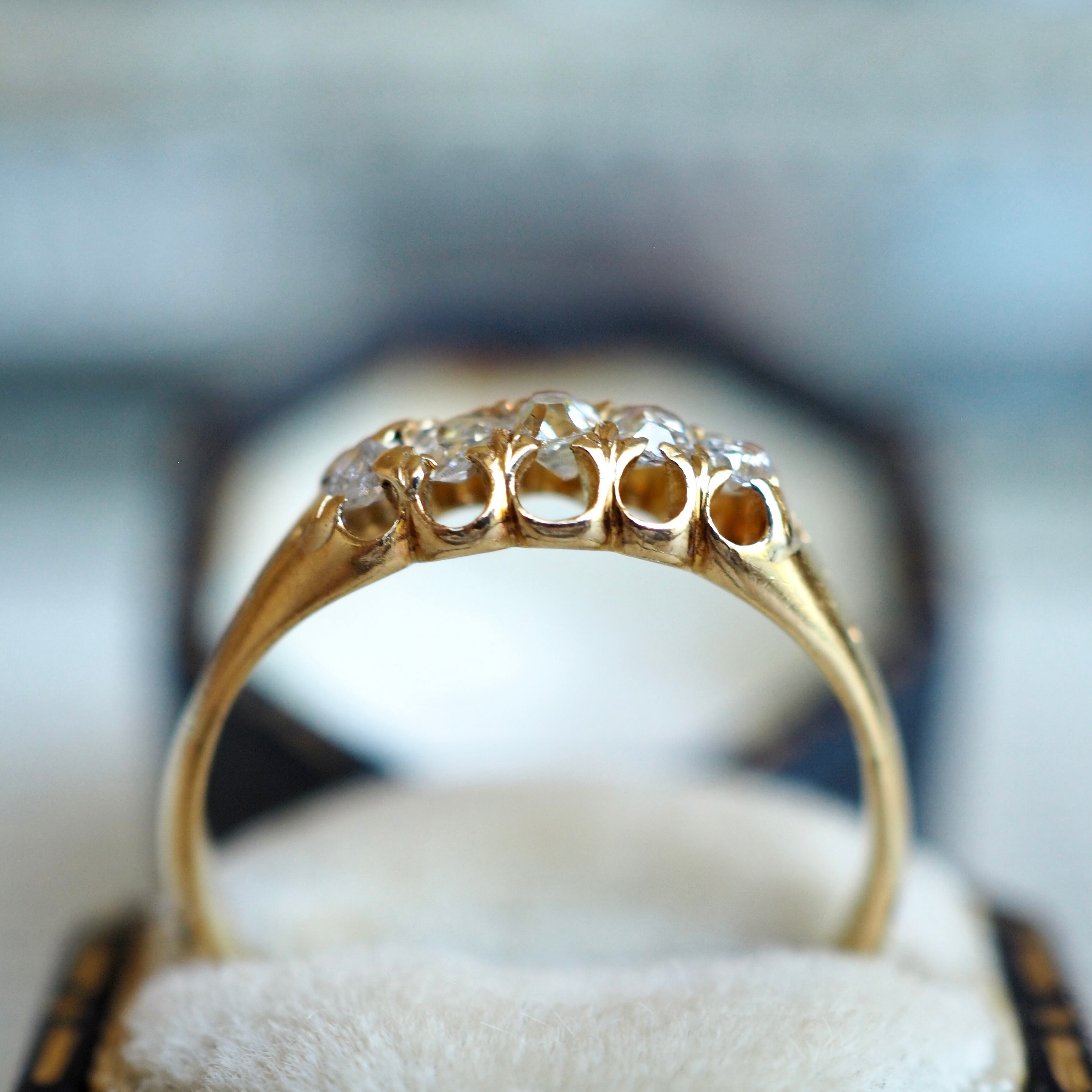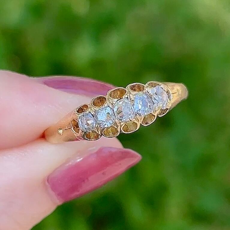 1890年代頃のイギリス ヴィクトリア期 オールドカット ダイヤモンド・ファイブストーンリング。