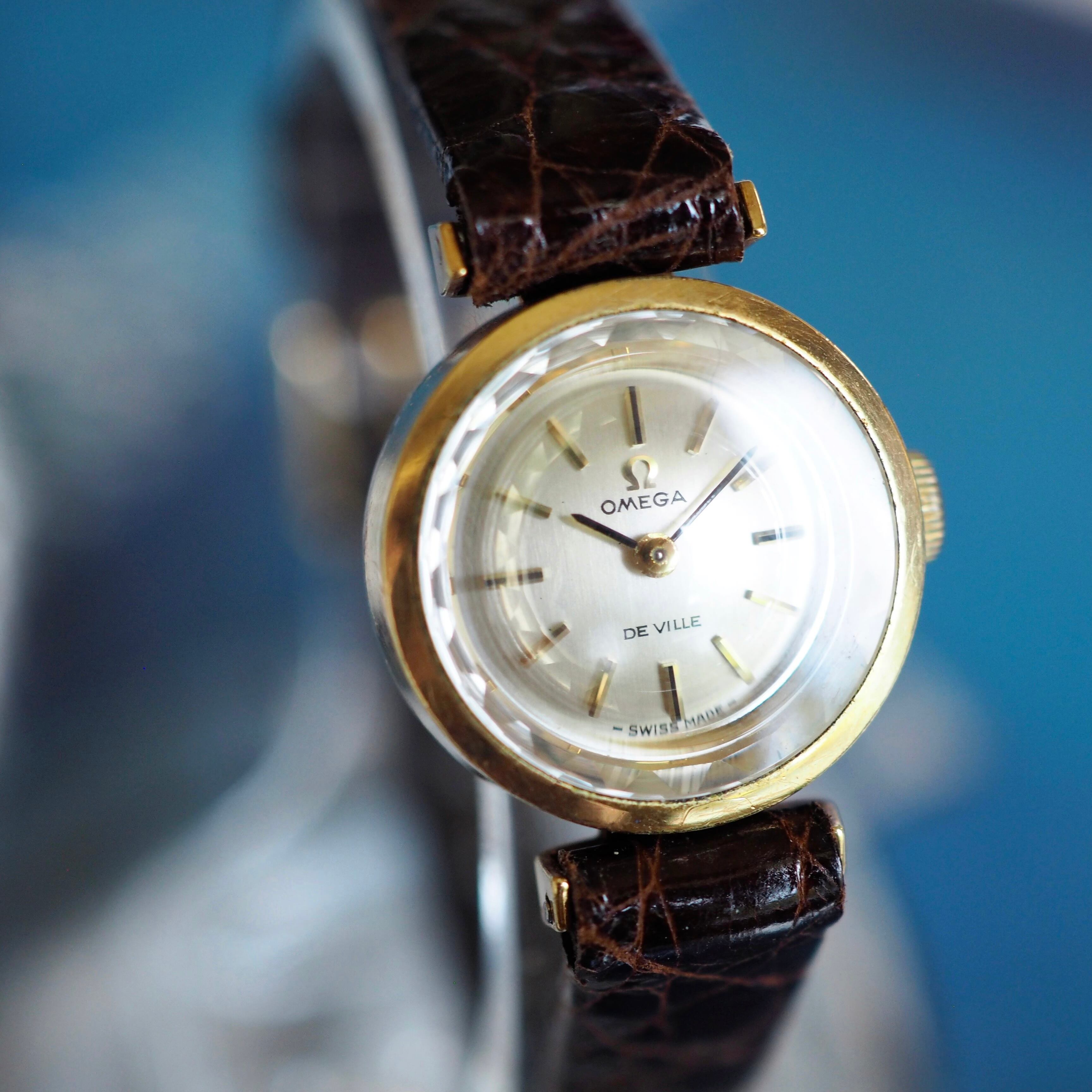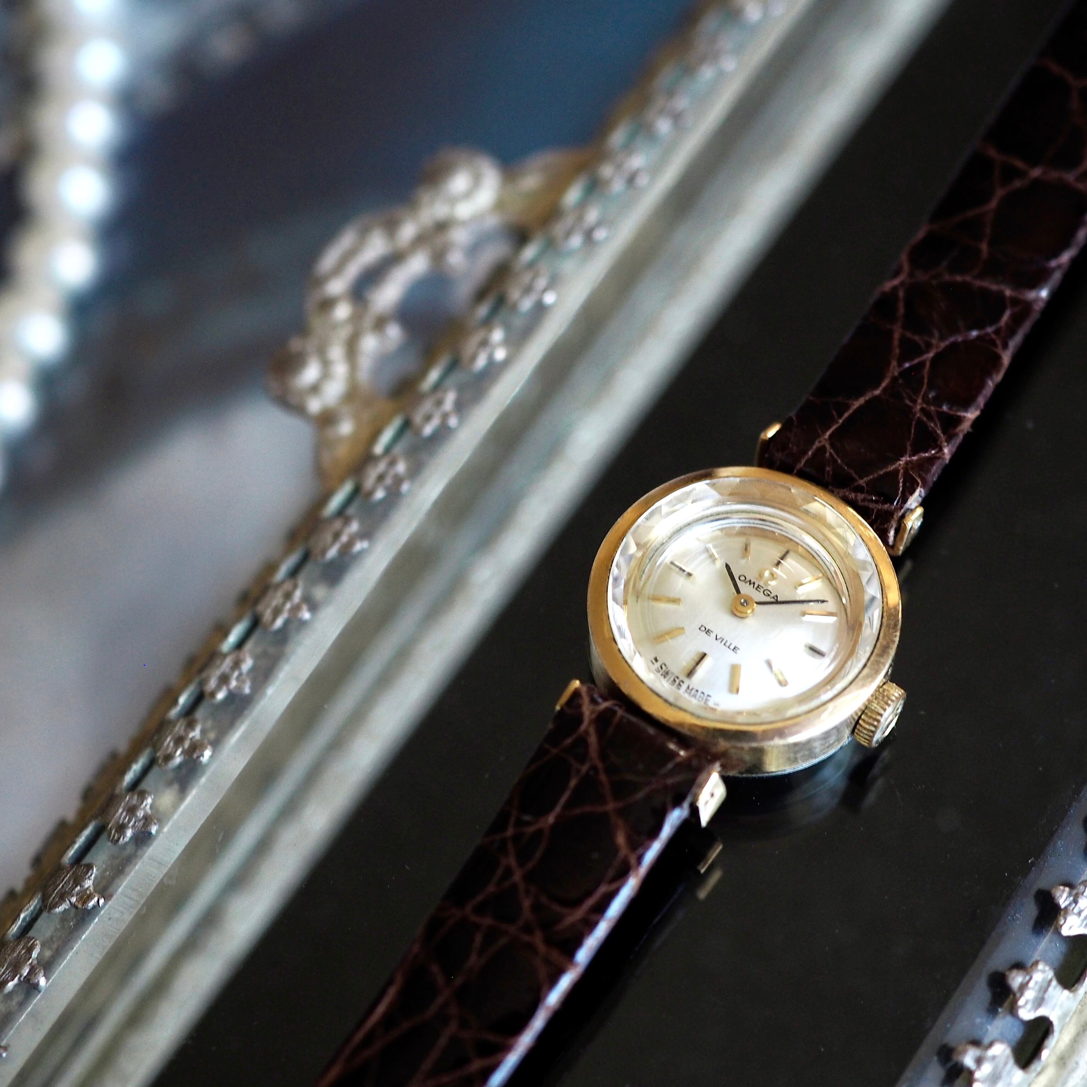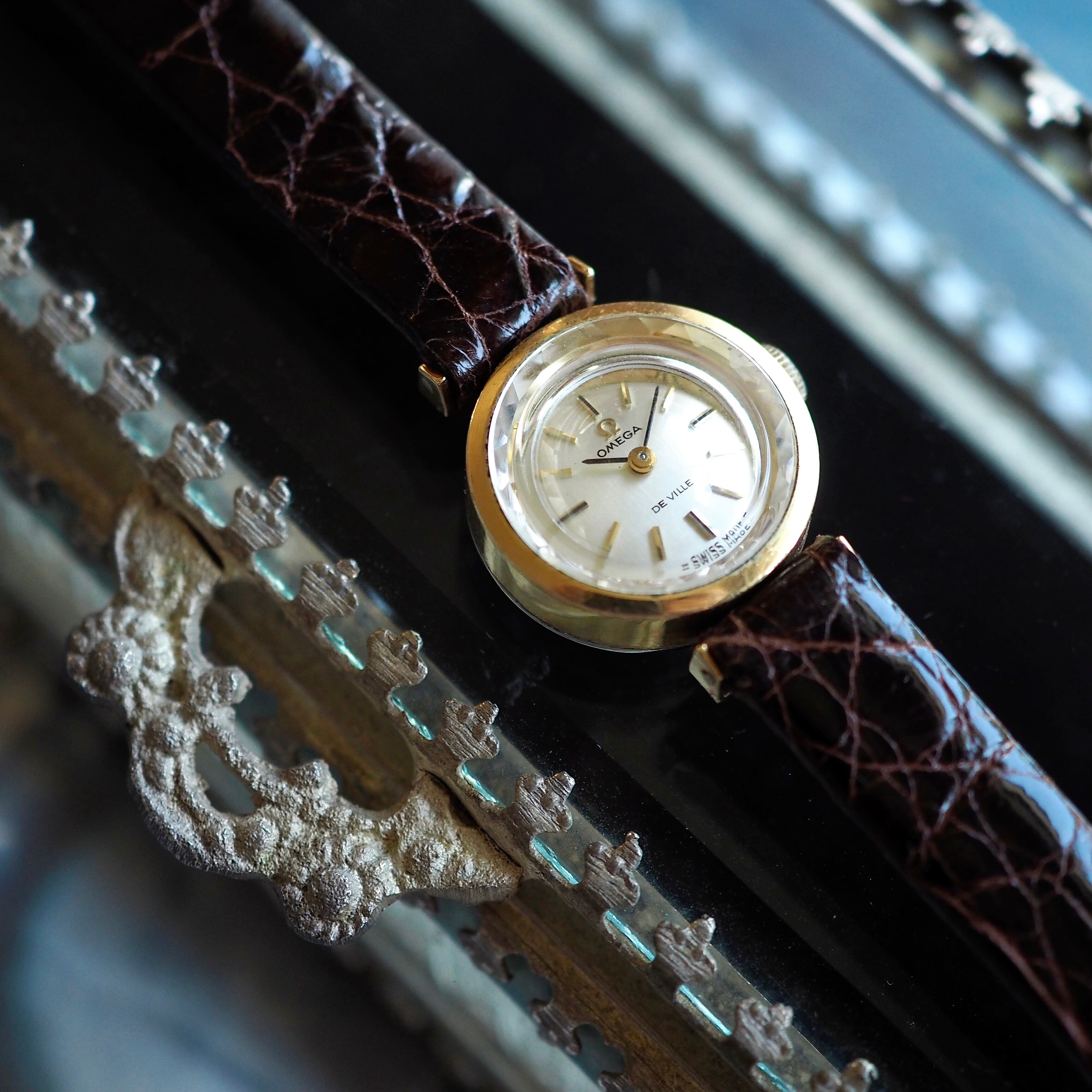 OMEGA オメガ deville サファイアカットガラス ワニ革 アンティーク時計