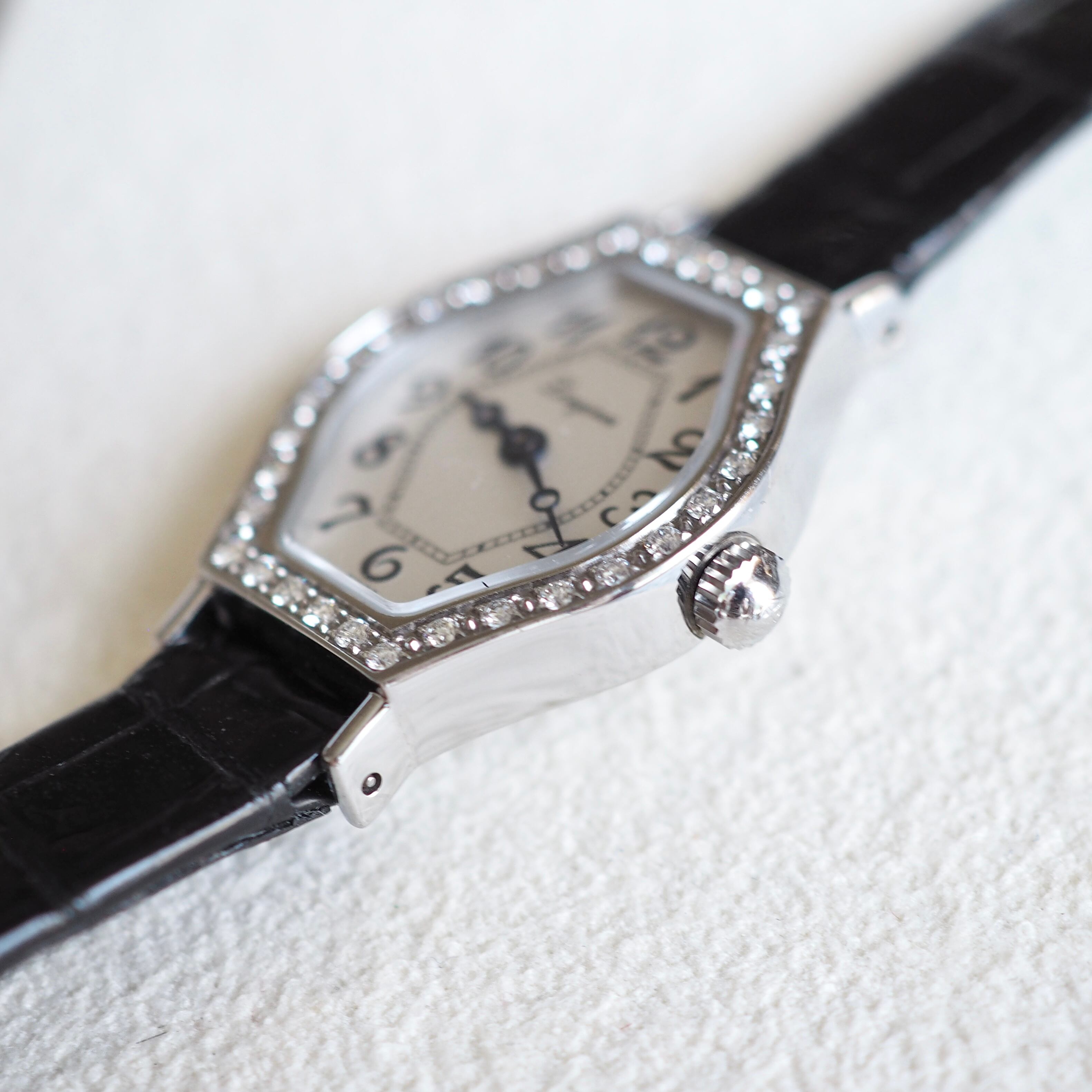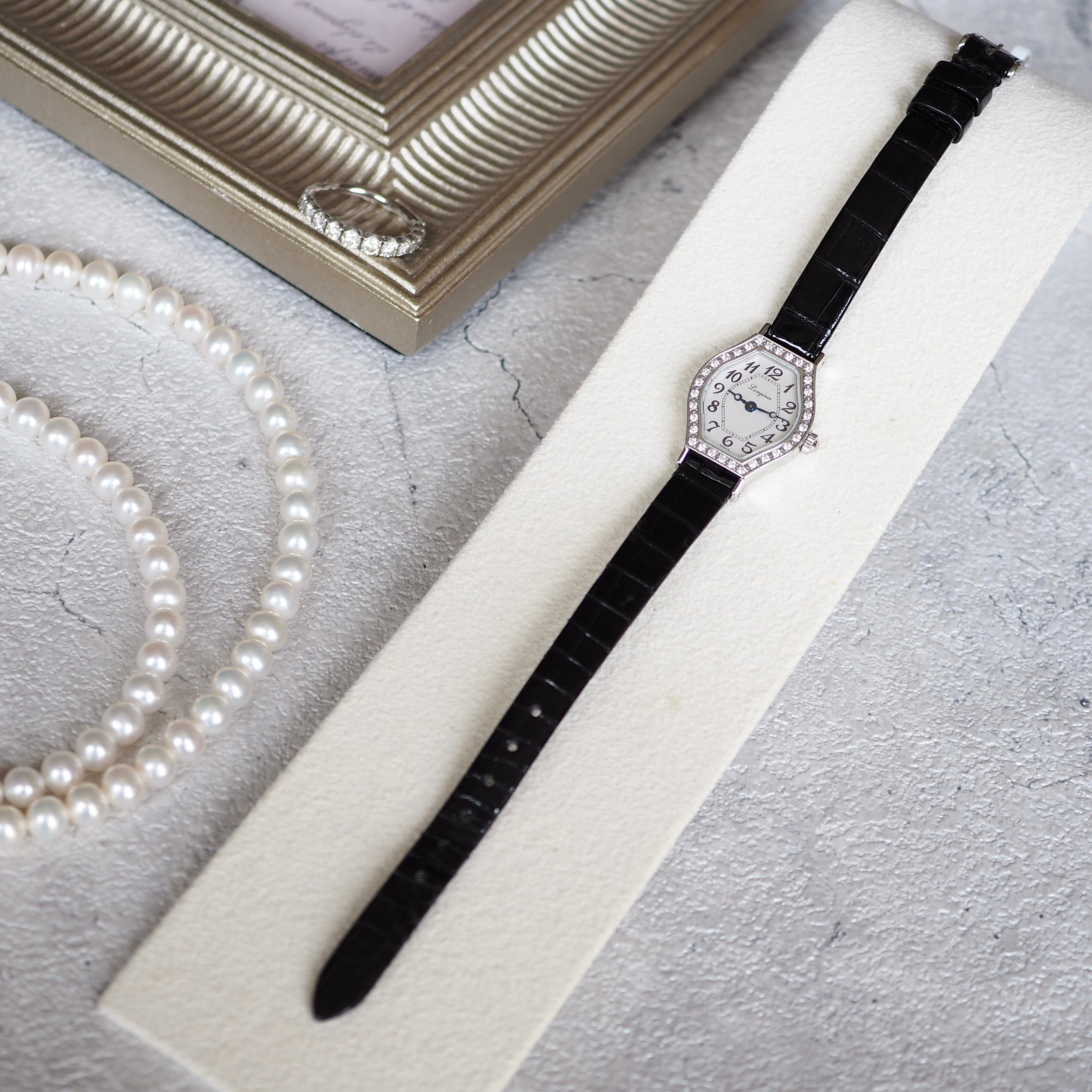 トノー型ベゼルには32Pもの上質なダイヤモンドがセッティングされております。