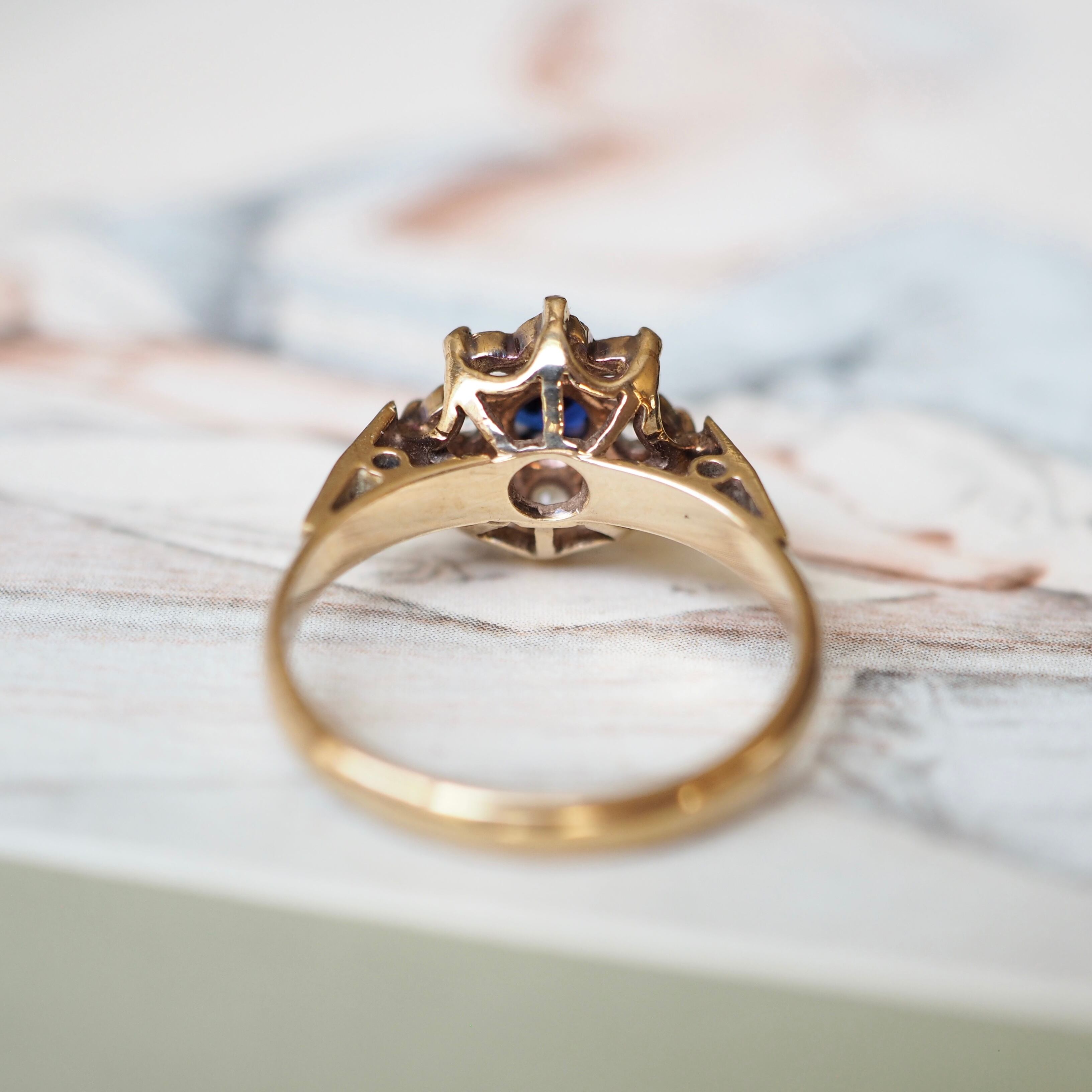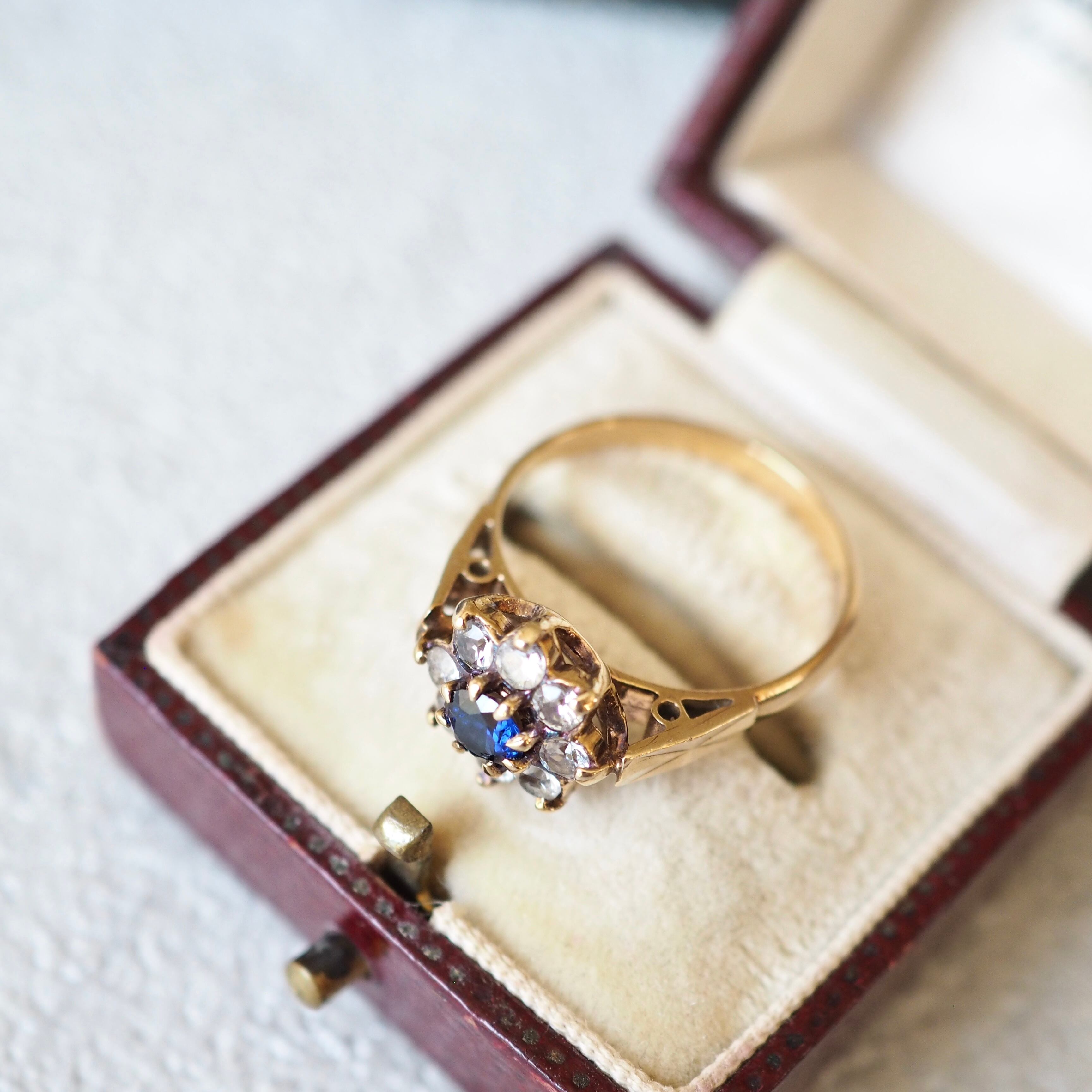 イギリス アンティークリング ブルーサファイア×ホワイトサファイア デイジーリング