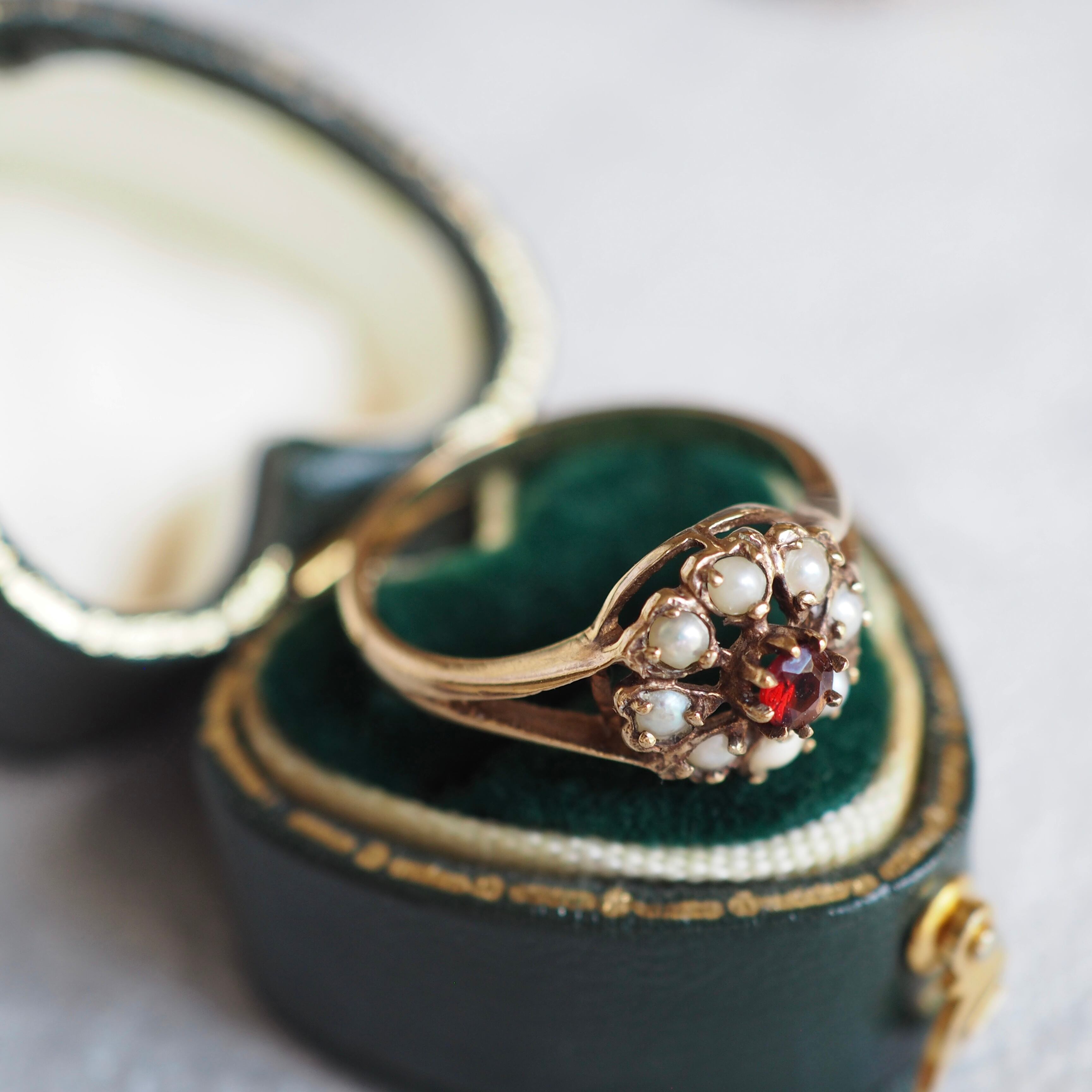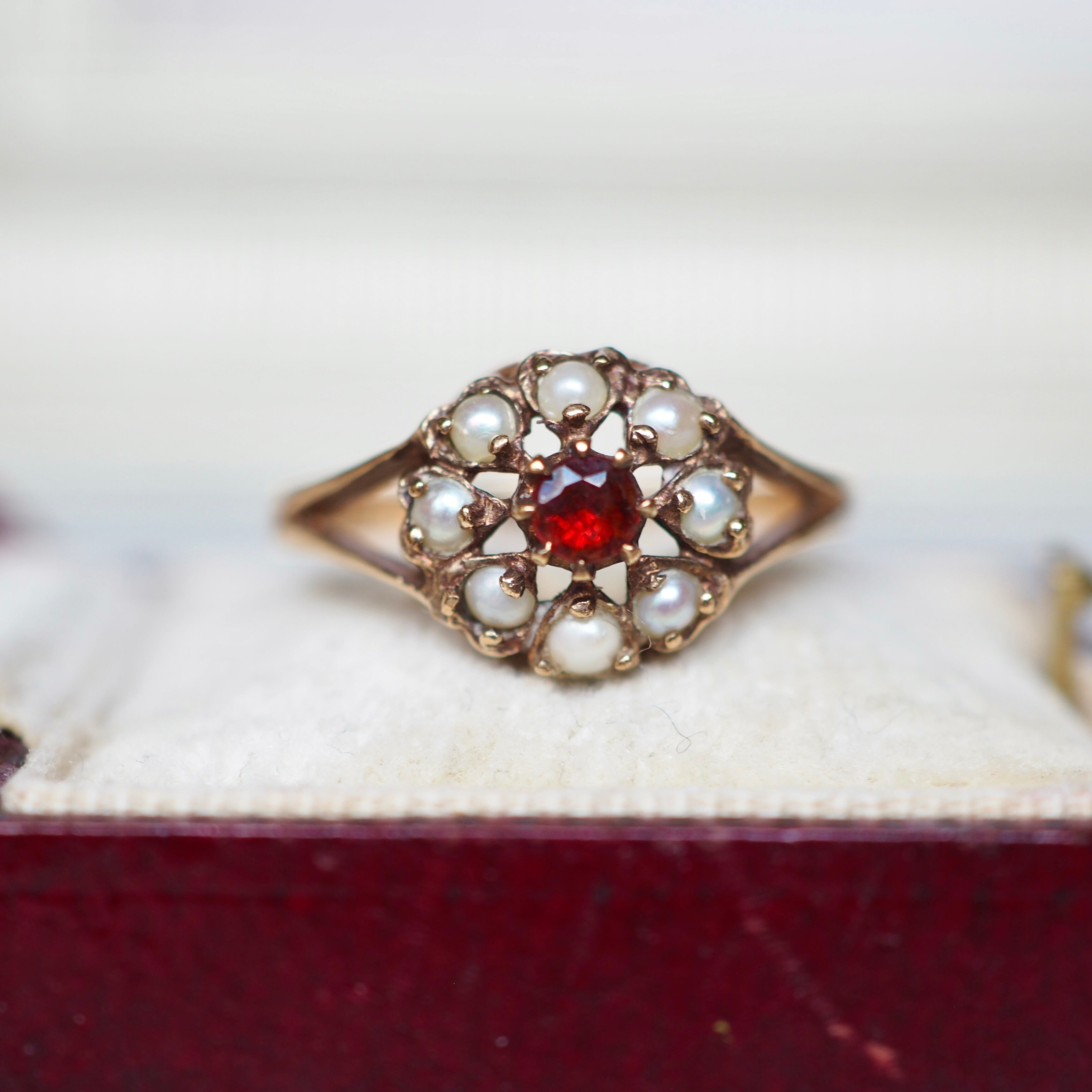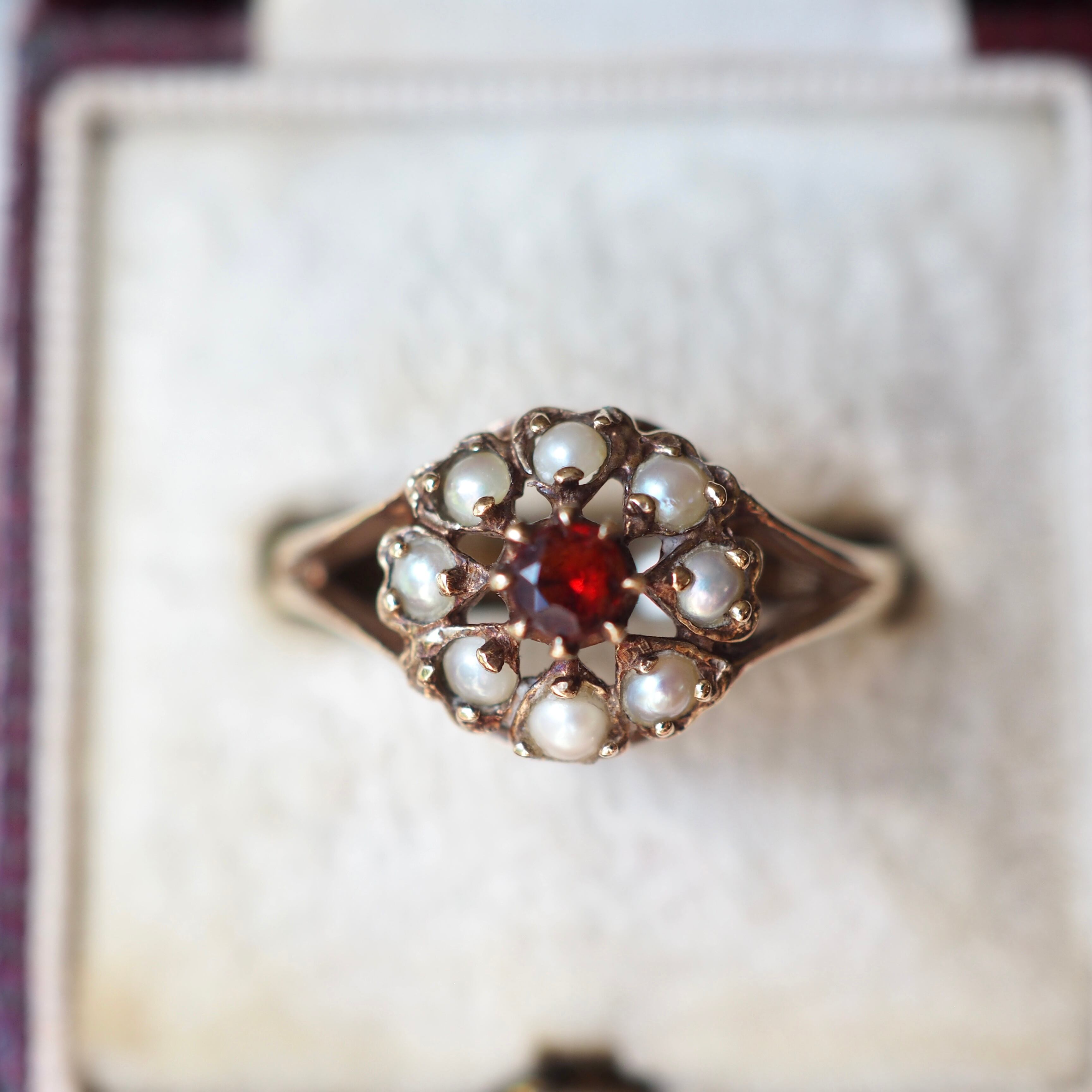 イギリス ヴィンテージ シードパール×ガーネット フラワーリング