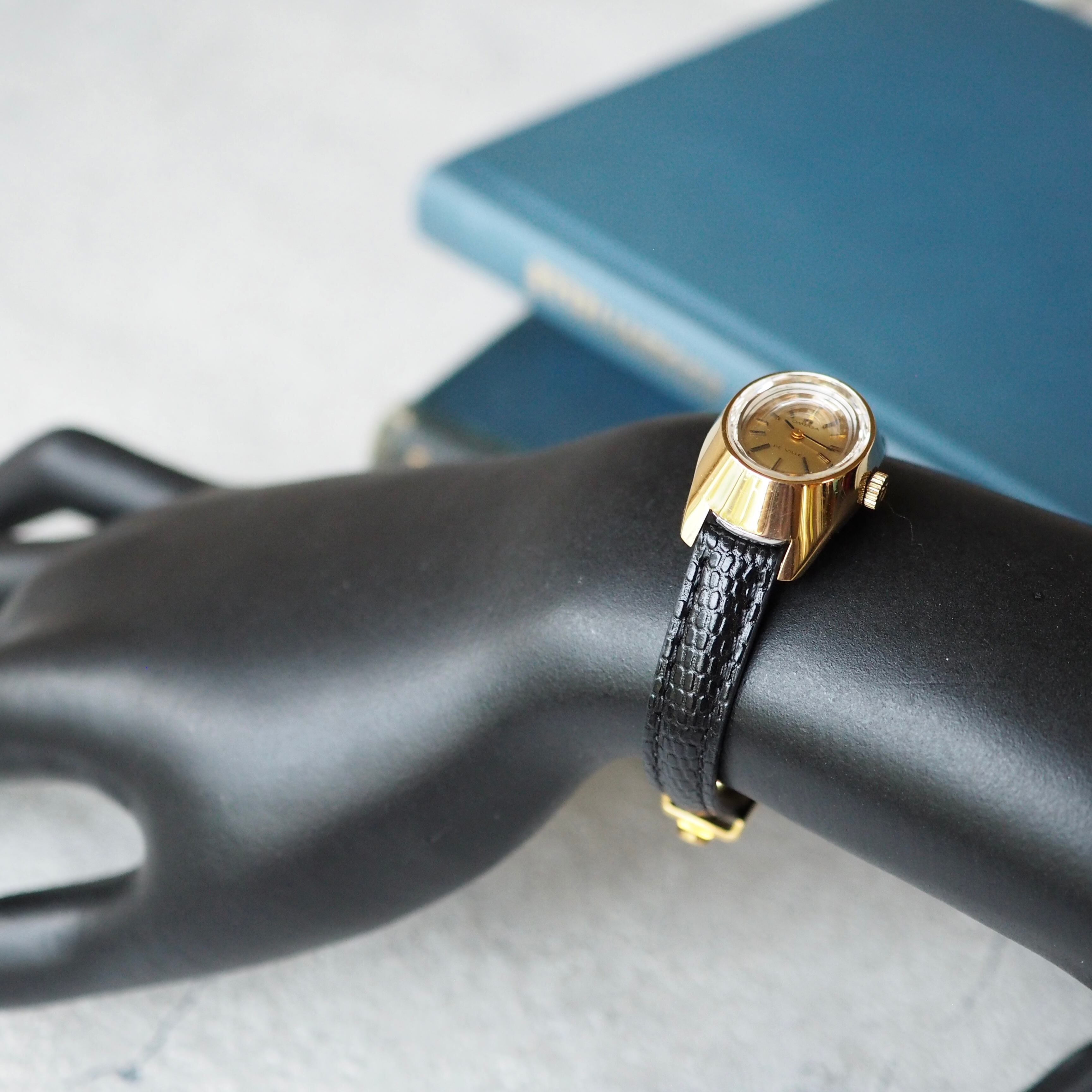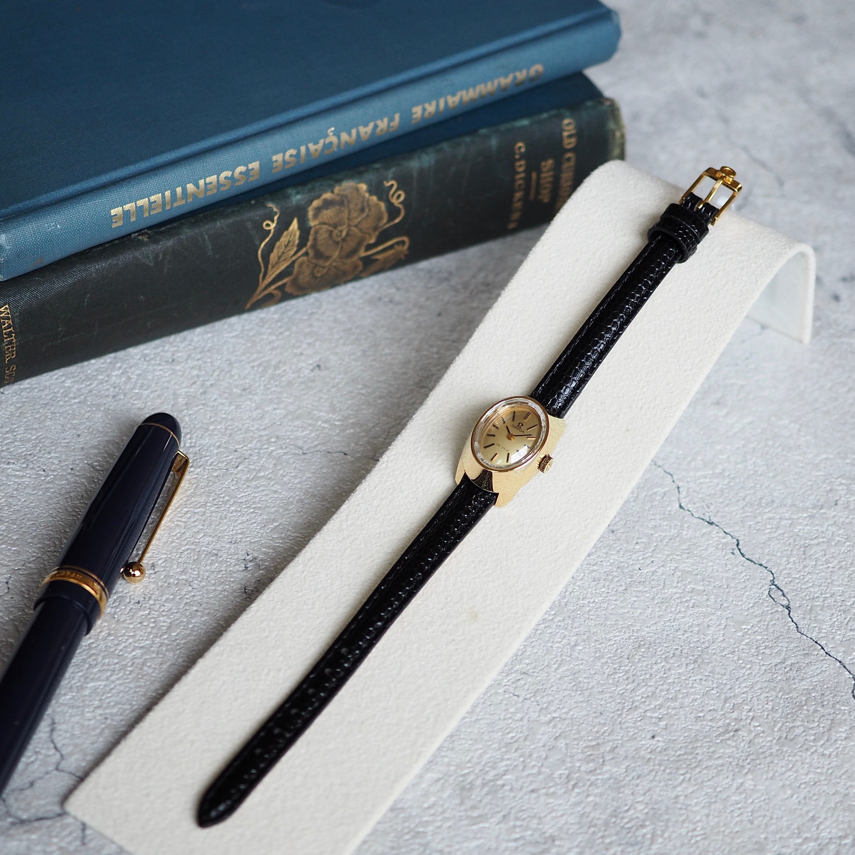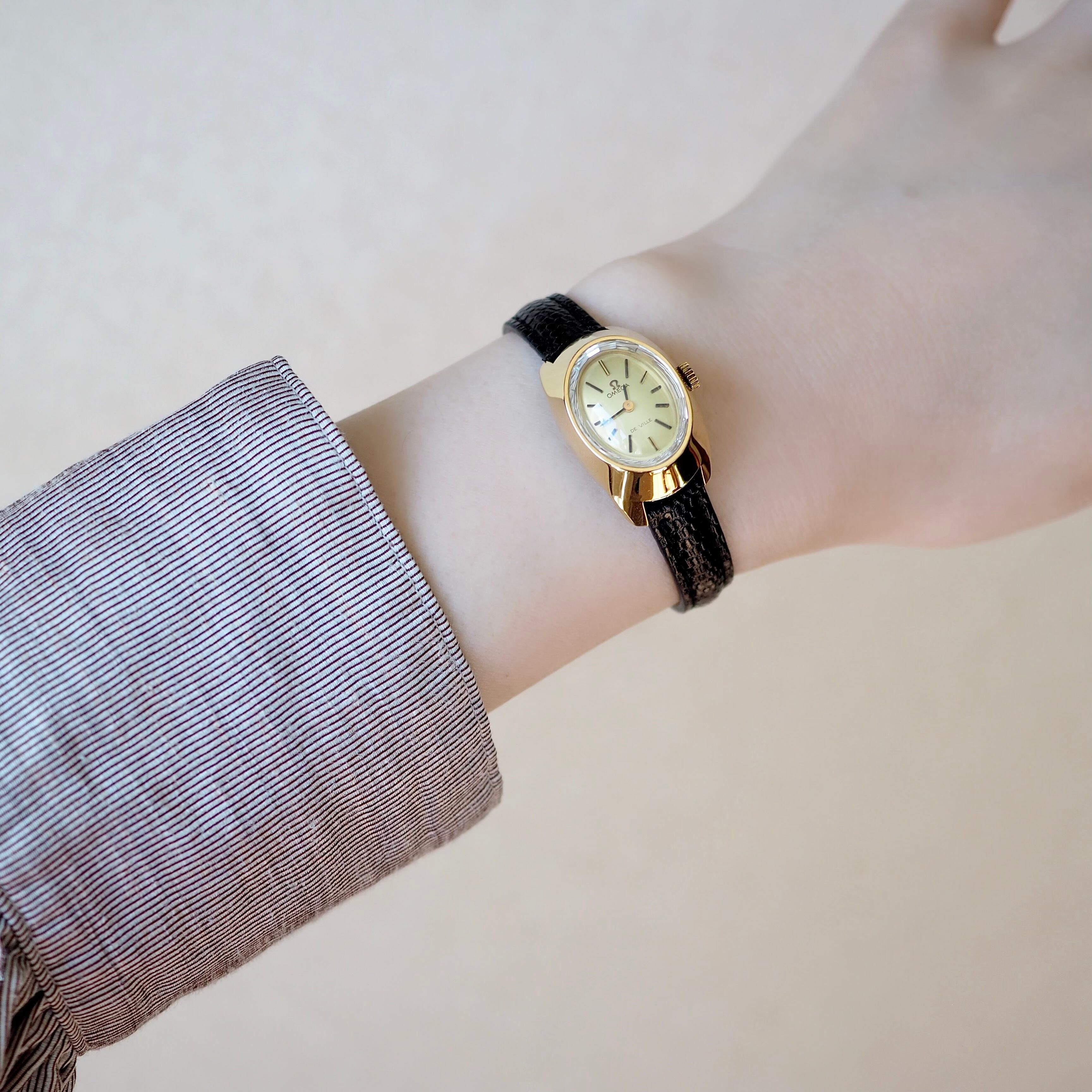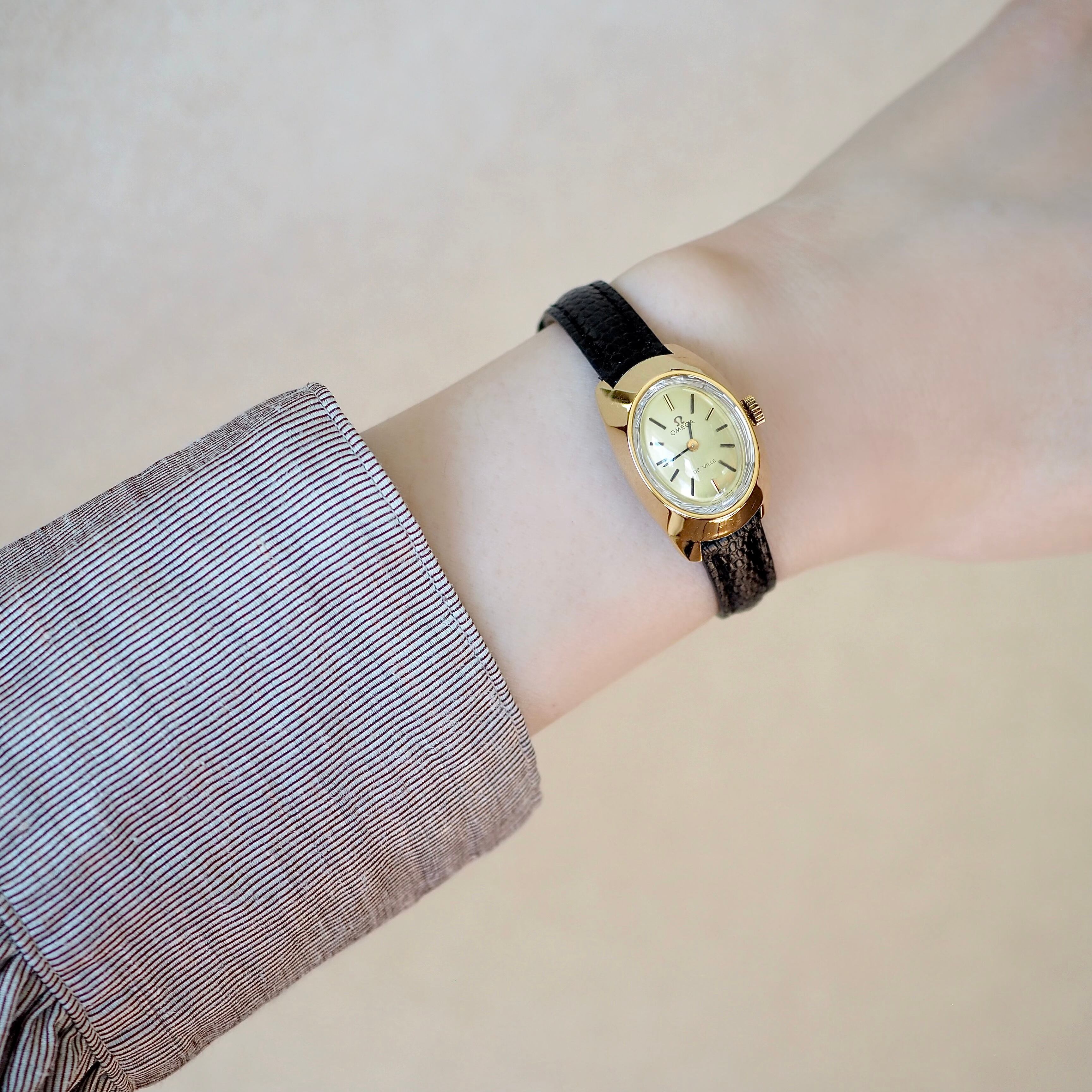 フェイスはオーバル型・文字盤もゴールドでまとめられ女性らしい上品で柔らかな印象です。