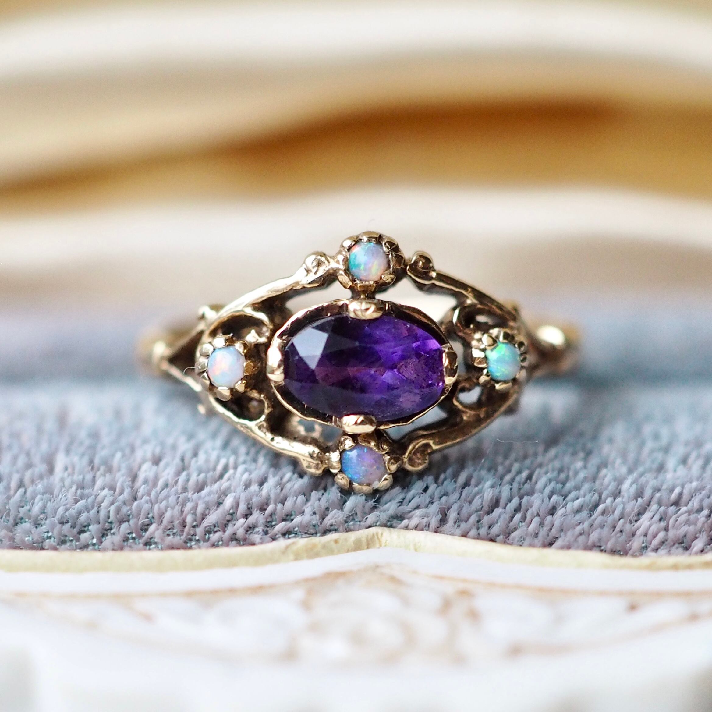 イギリス ヴィンテージリング アメシスト オパール 指輪 英国 アンティーク