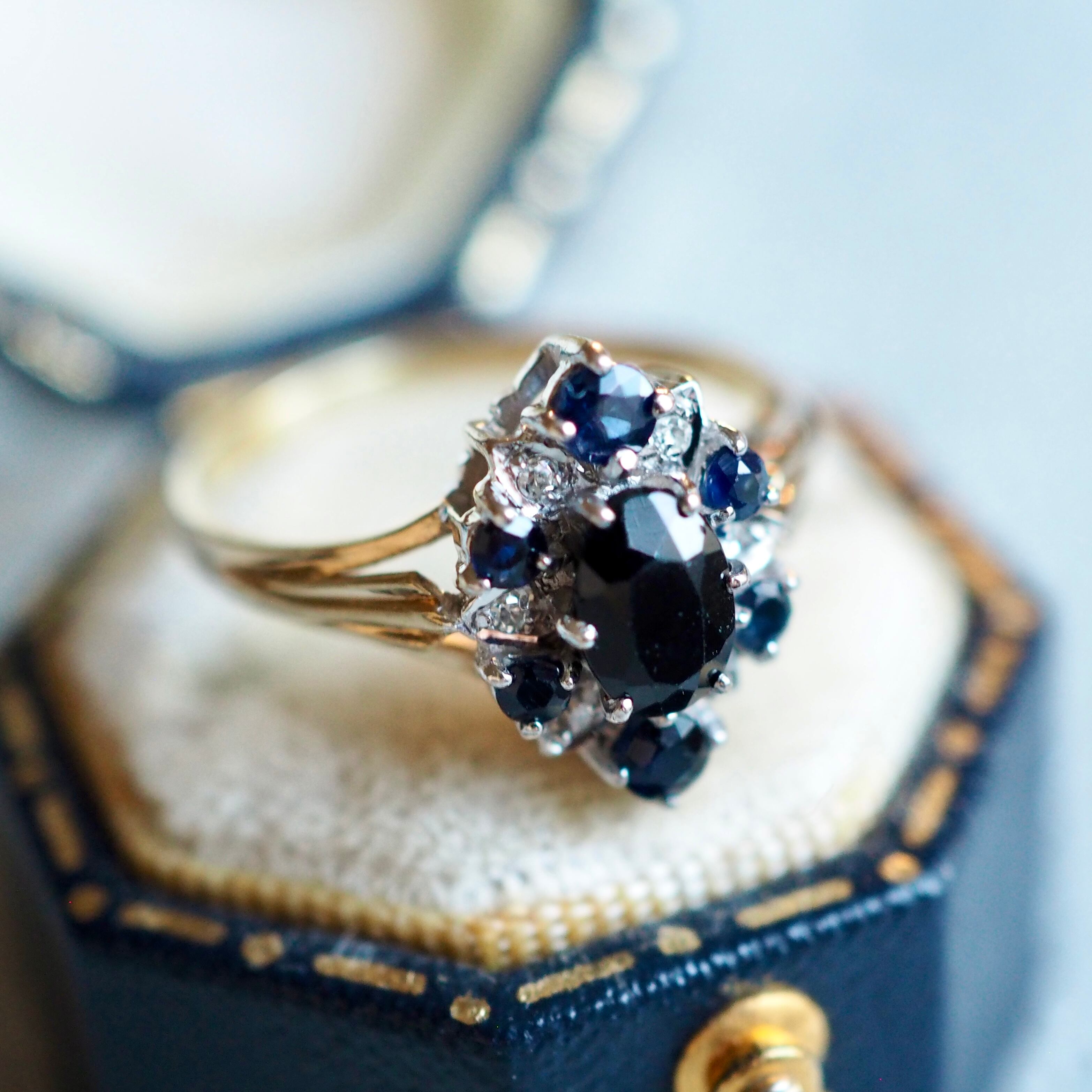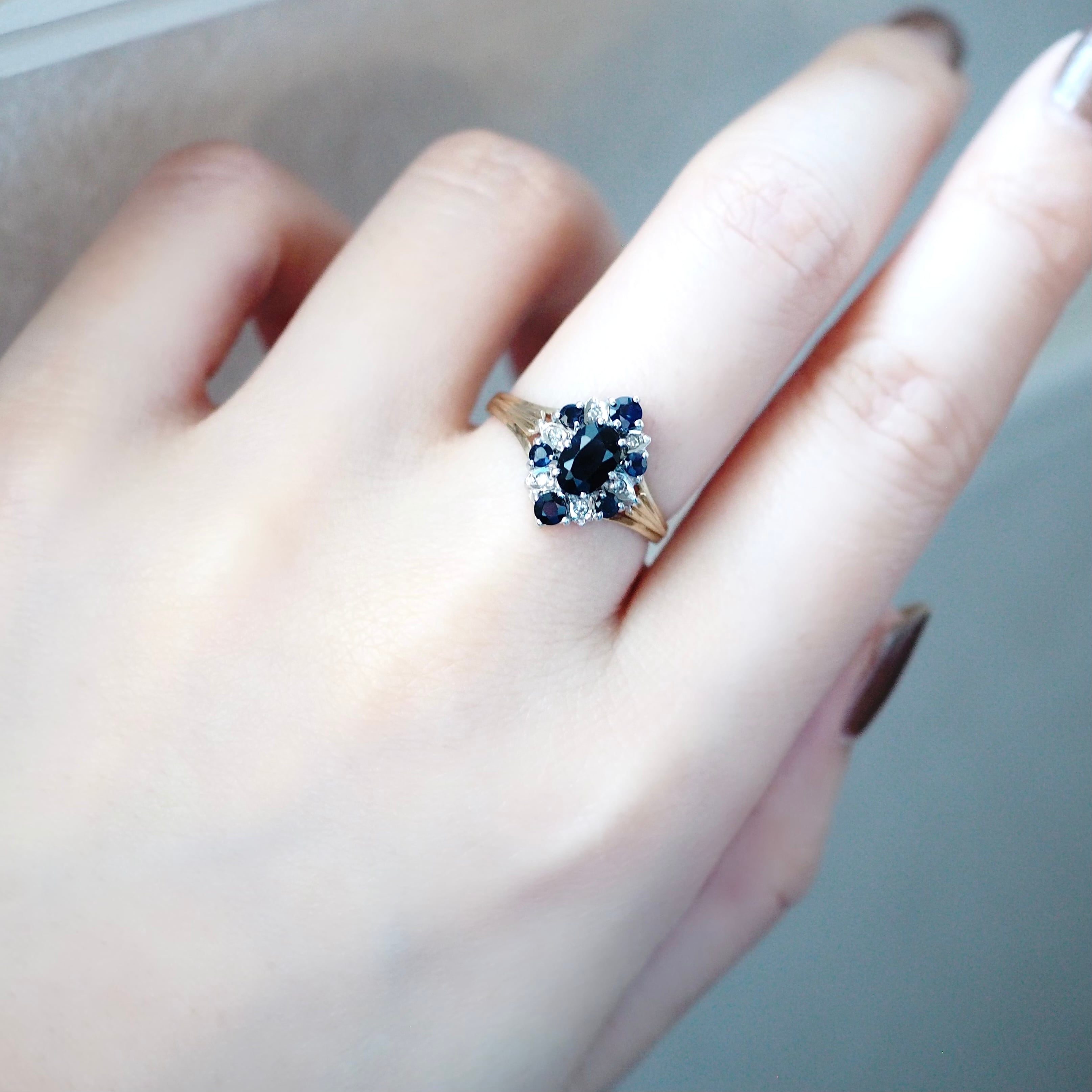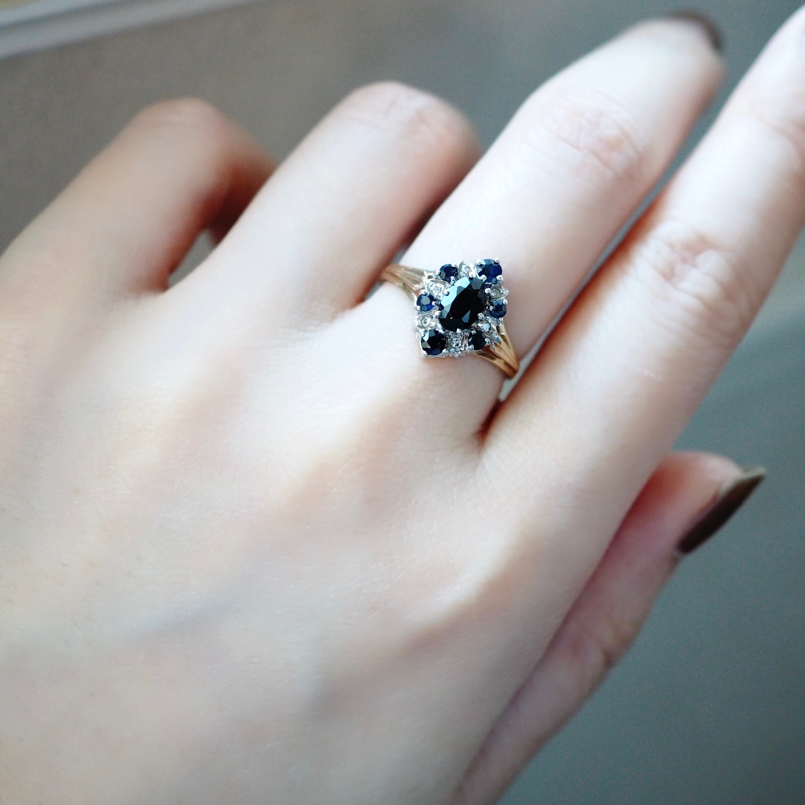 イギリス ヴィンテージリング サファイア×ダイヤモンド 英国 アンティーク 指輪