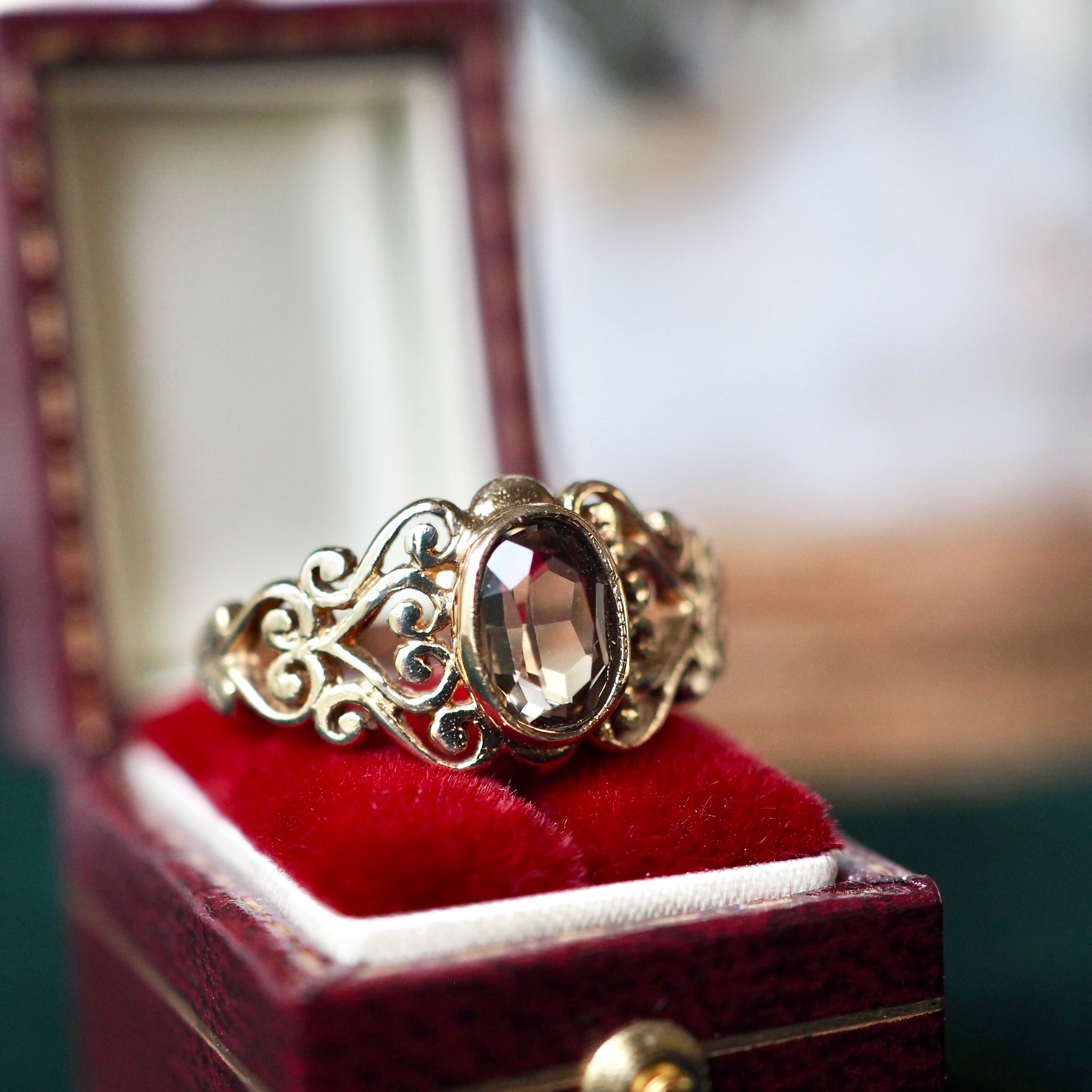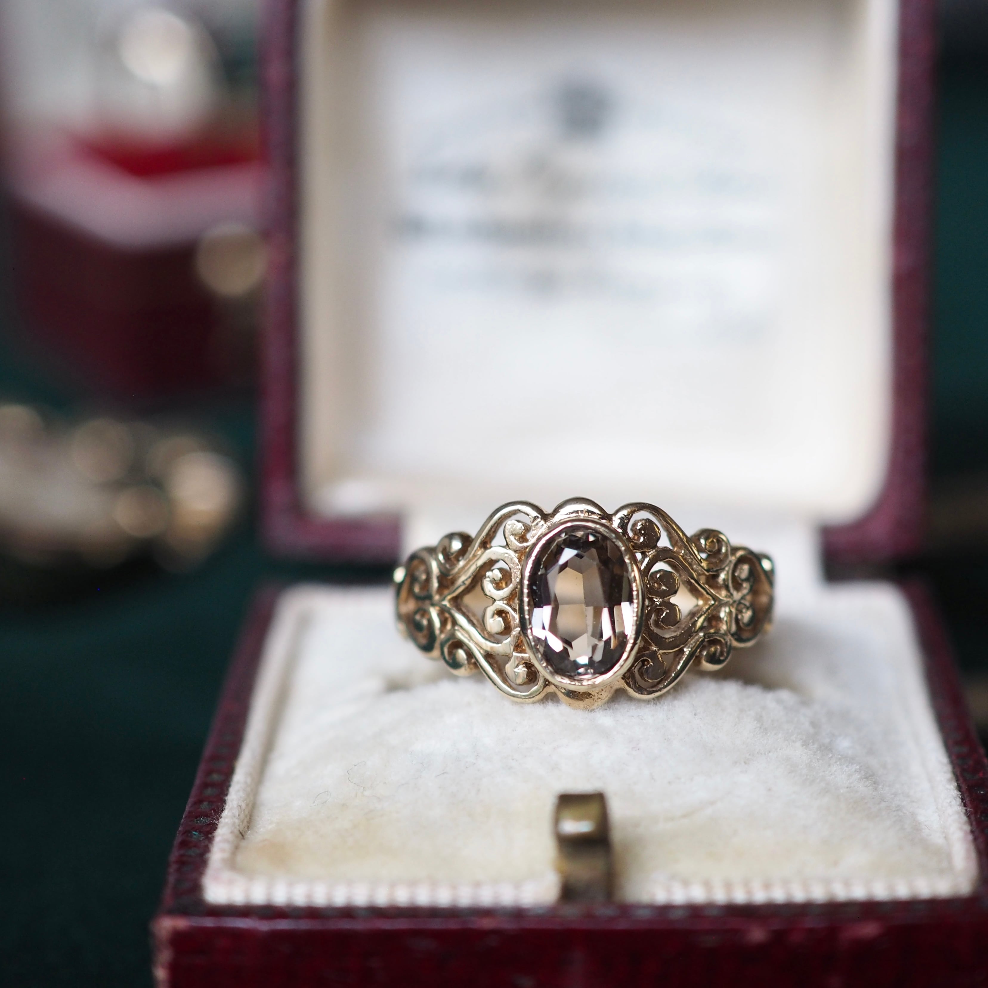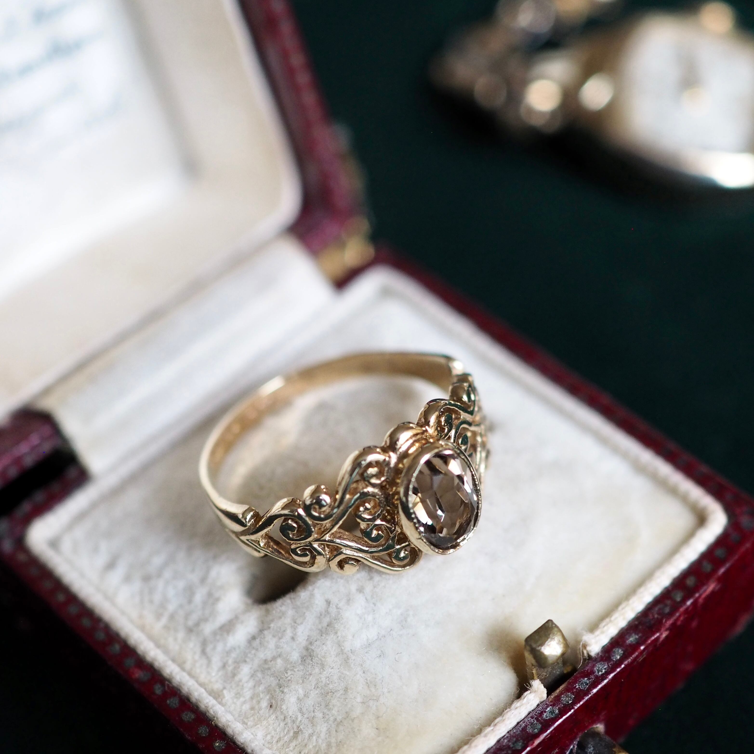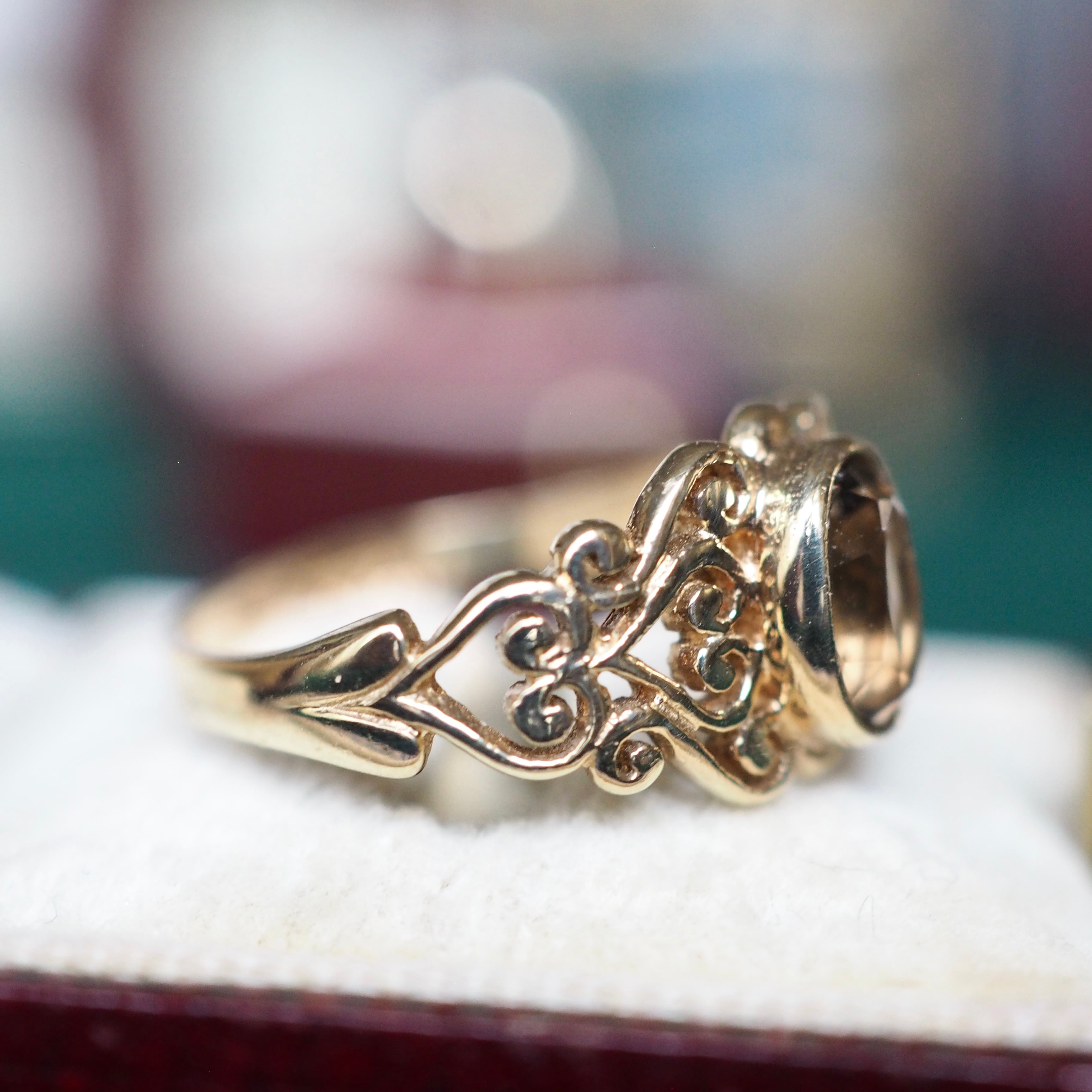 イギリス ヴィンテージリング スモーキークォーツ 英国 指輪