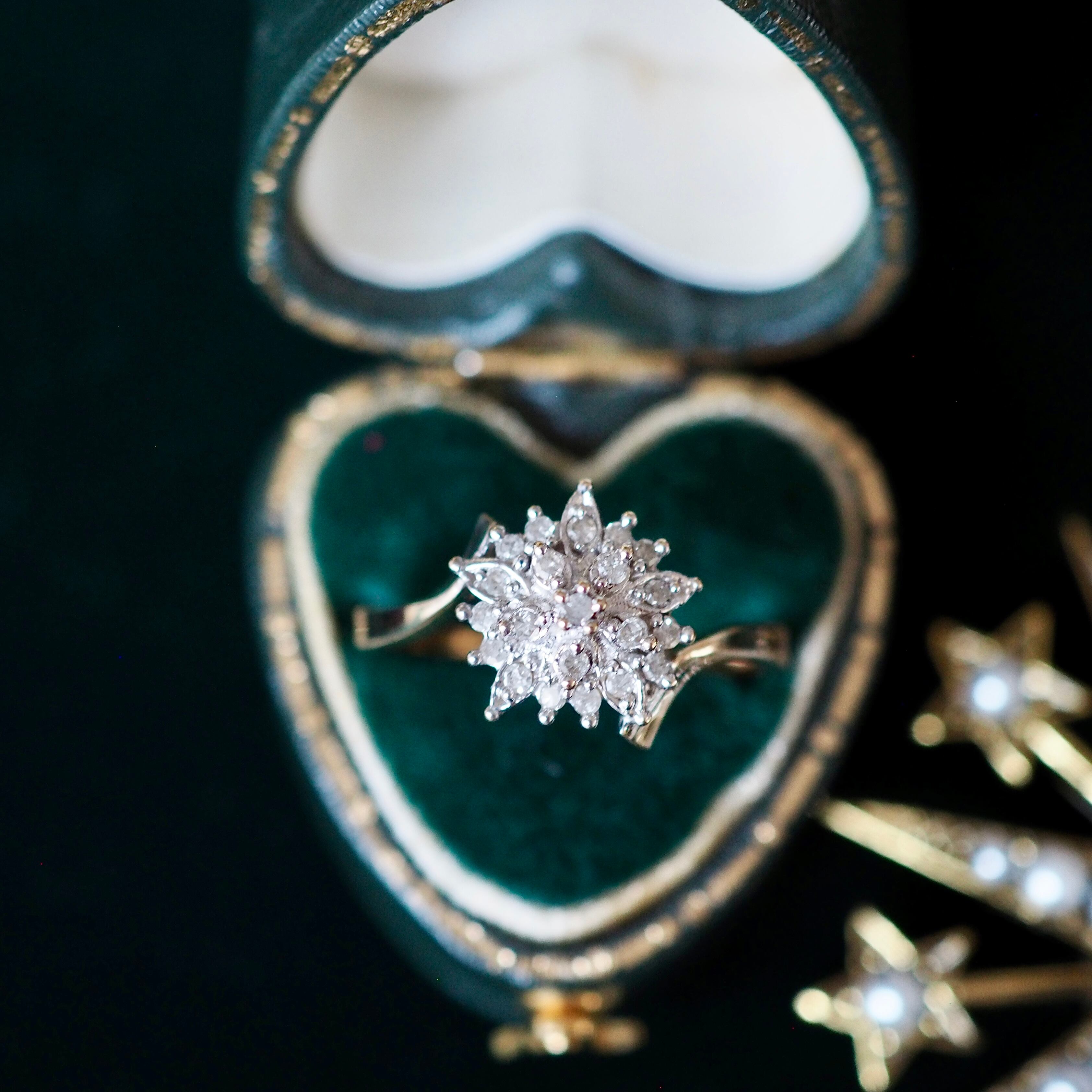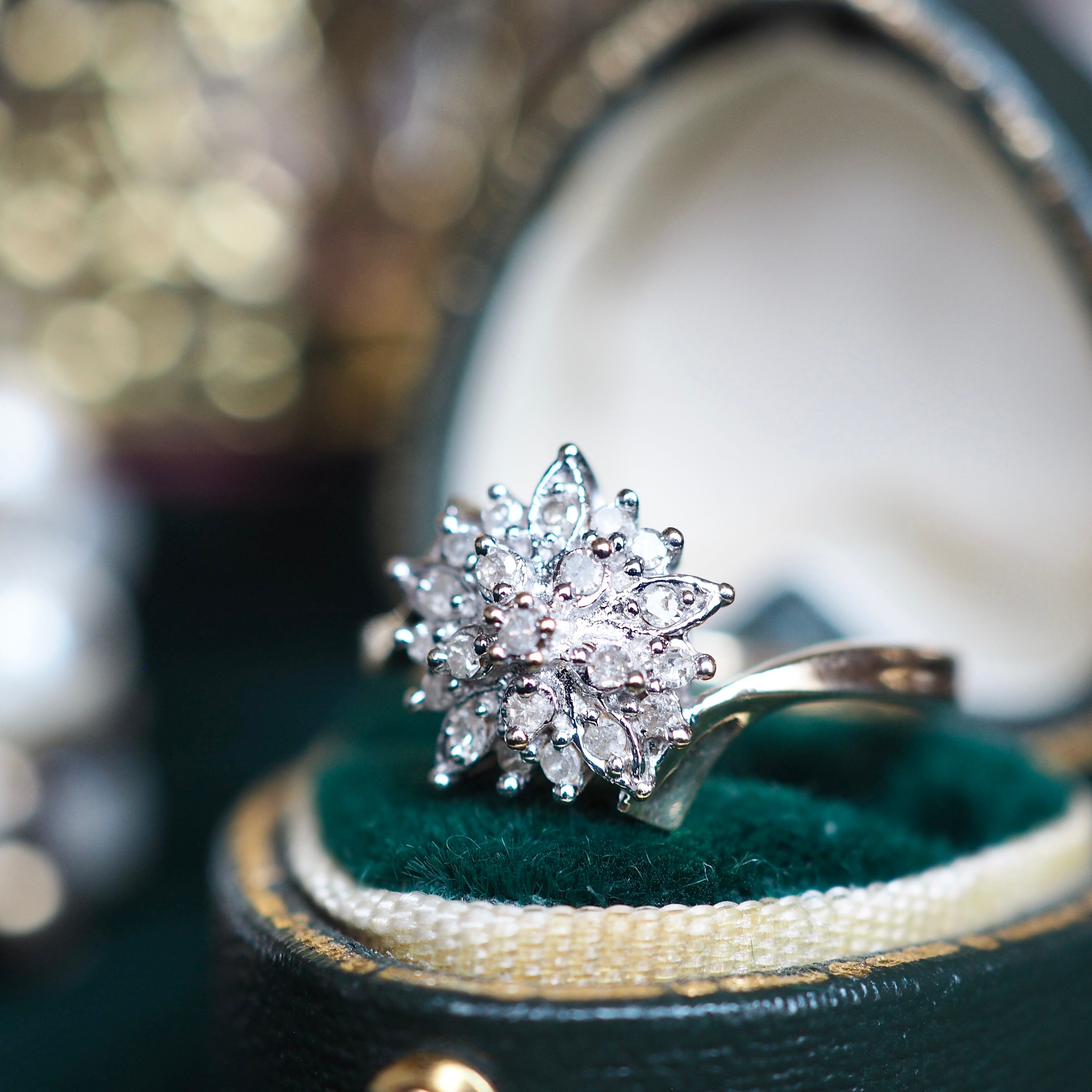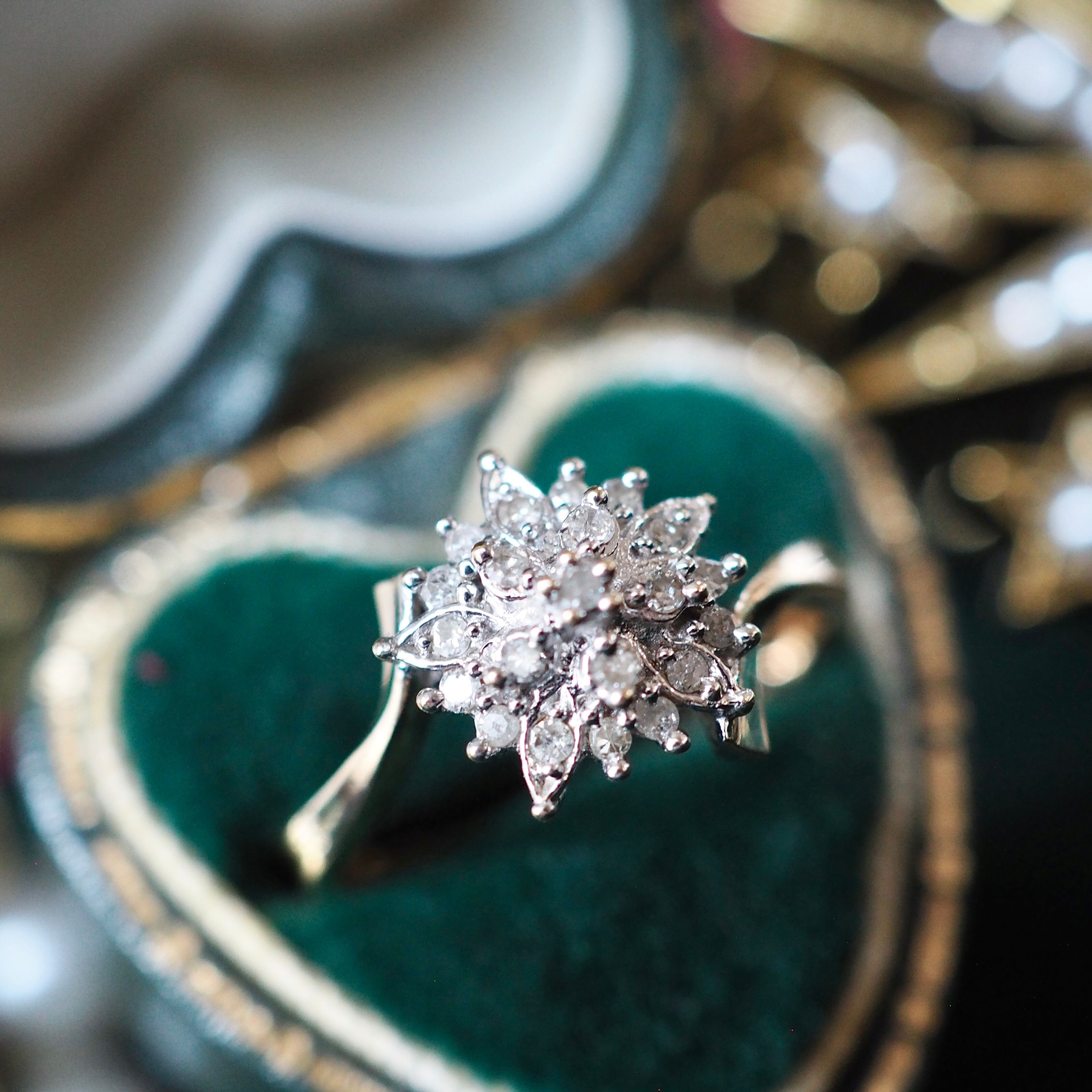 ❄︎snowflake❄︎ diamond cluster vintage ring