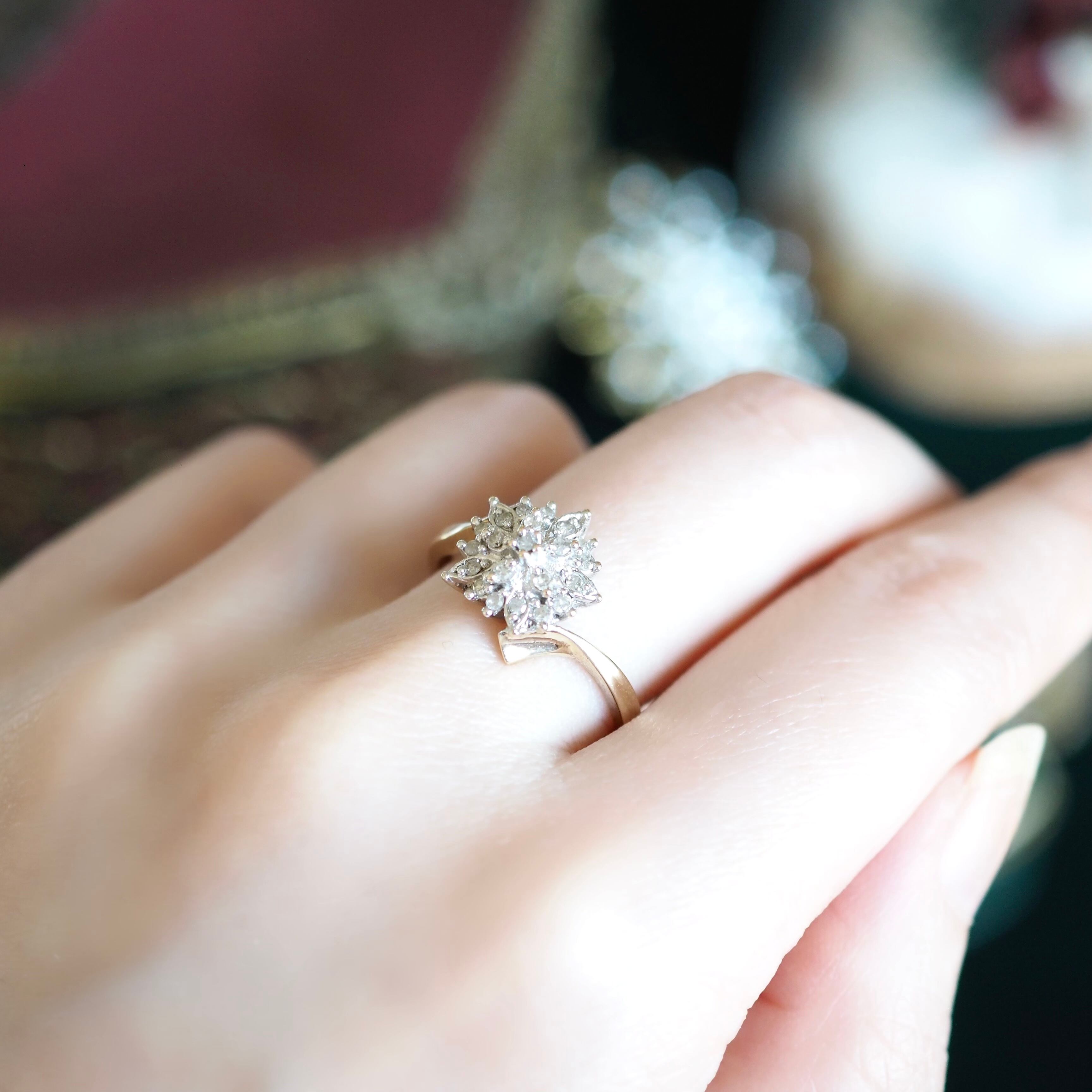 イギリス ヴィンテージリング ダイヤモンド スノーフレーク クラスター 英国 指輪