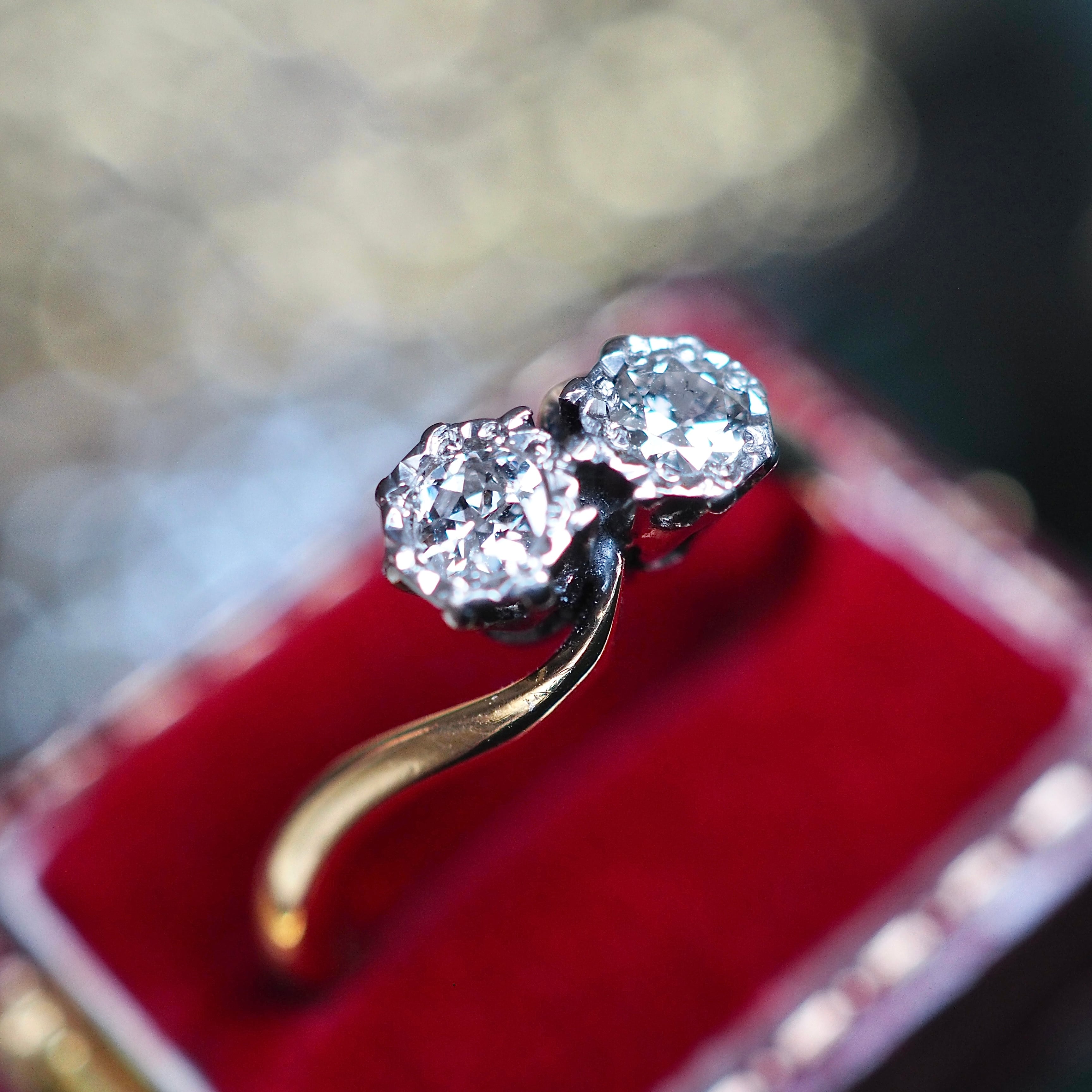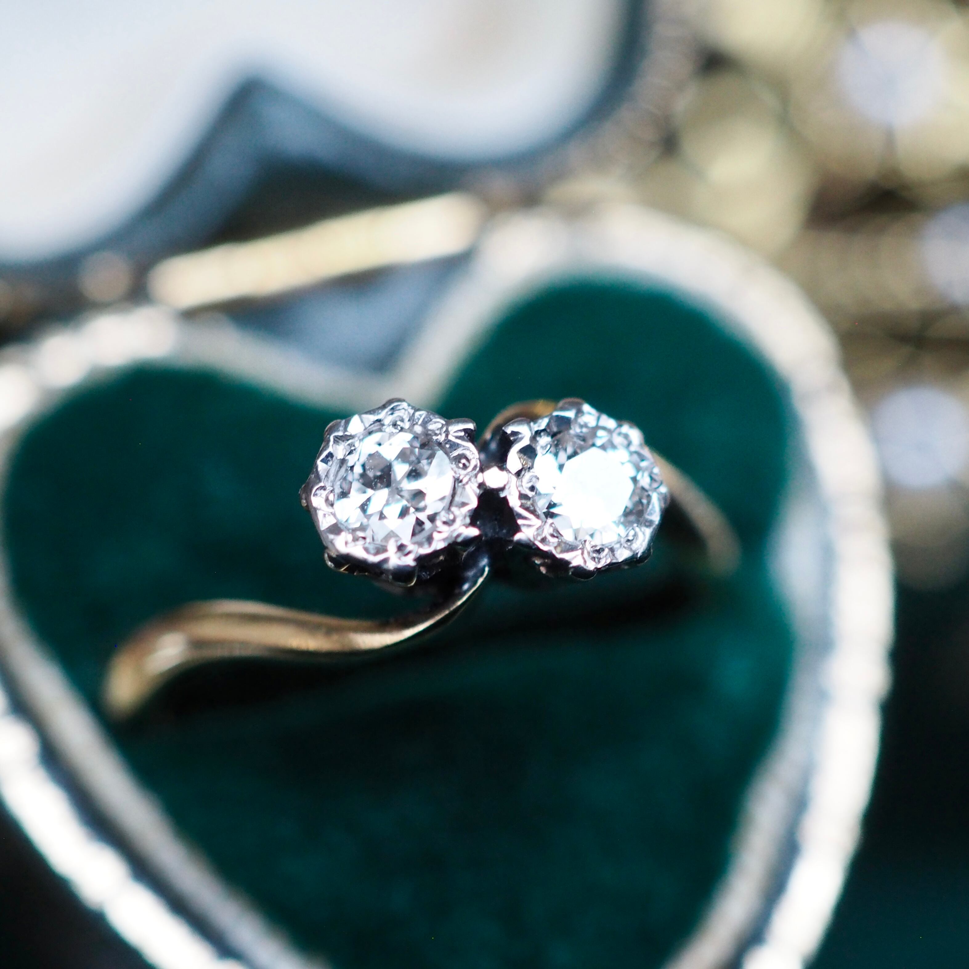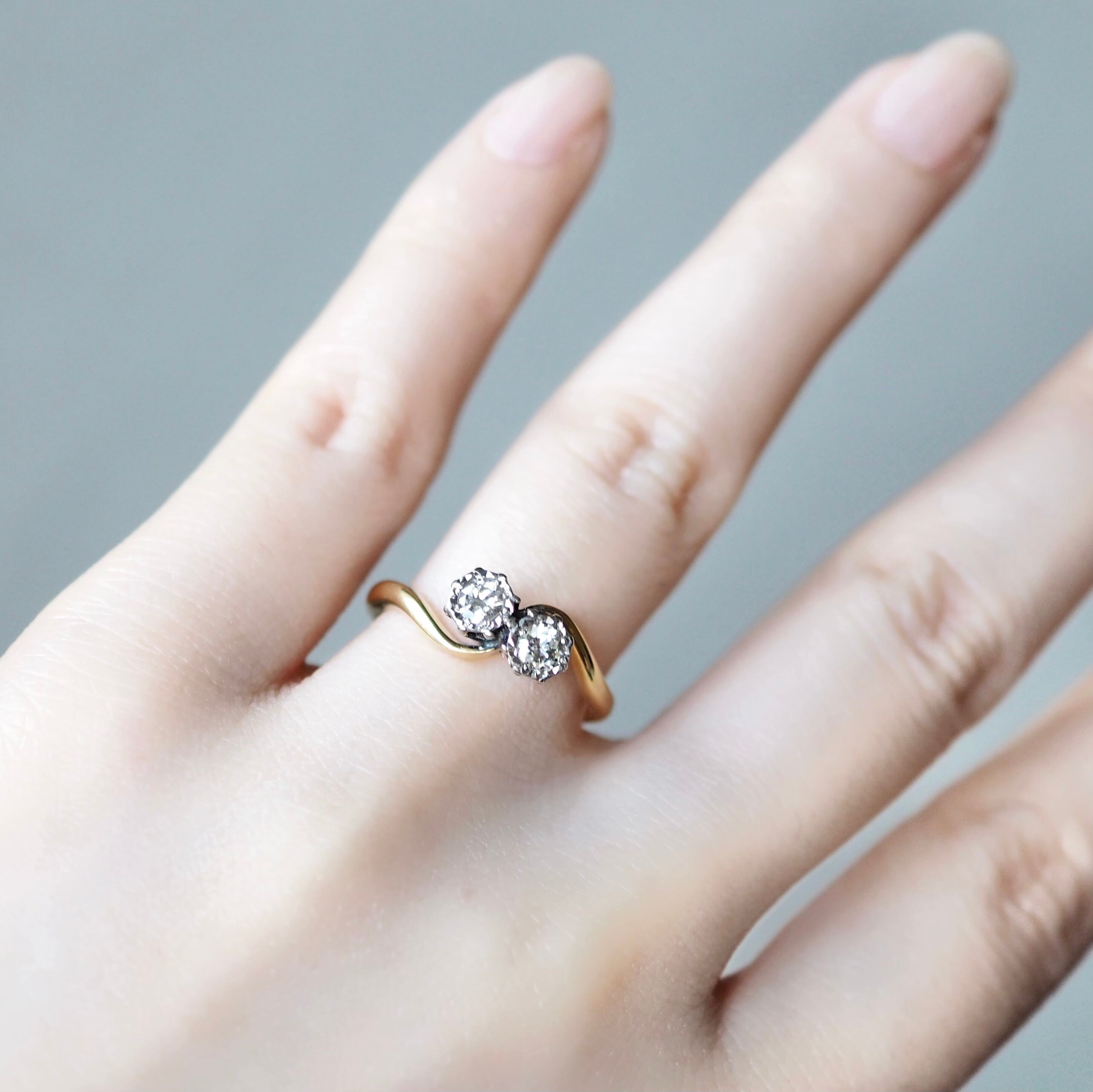フランス語でtoi et moi「あなたと私」を意味する2つの宝石が隣り合った配置のリング。