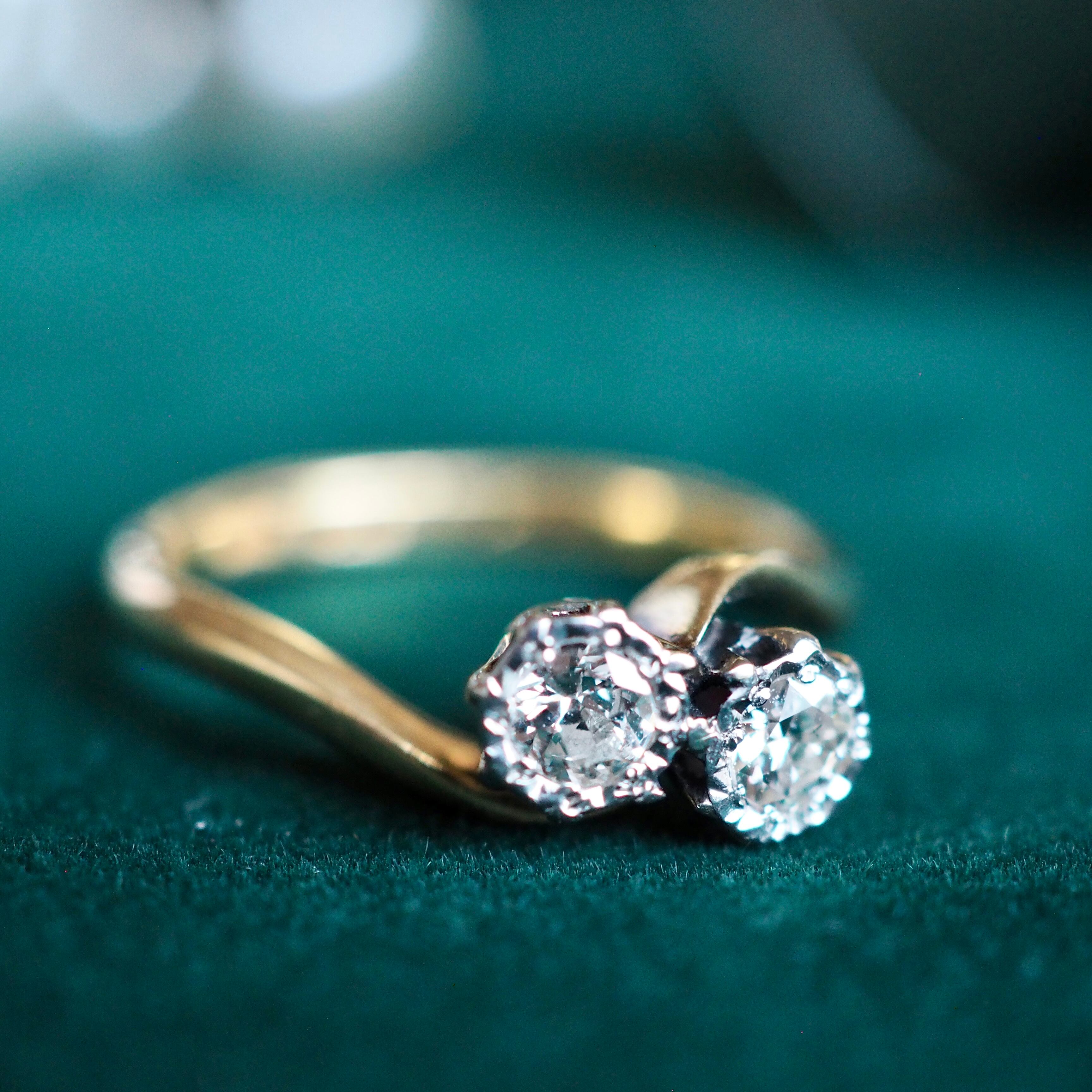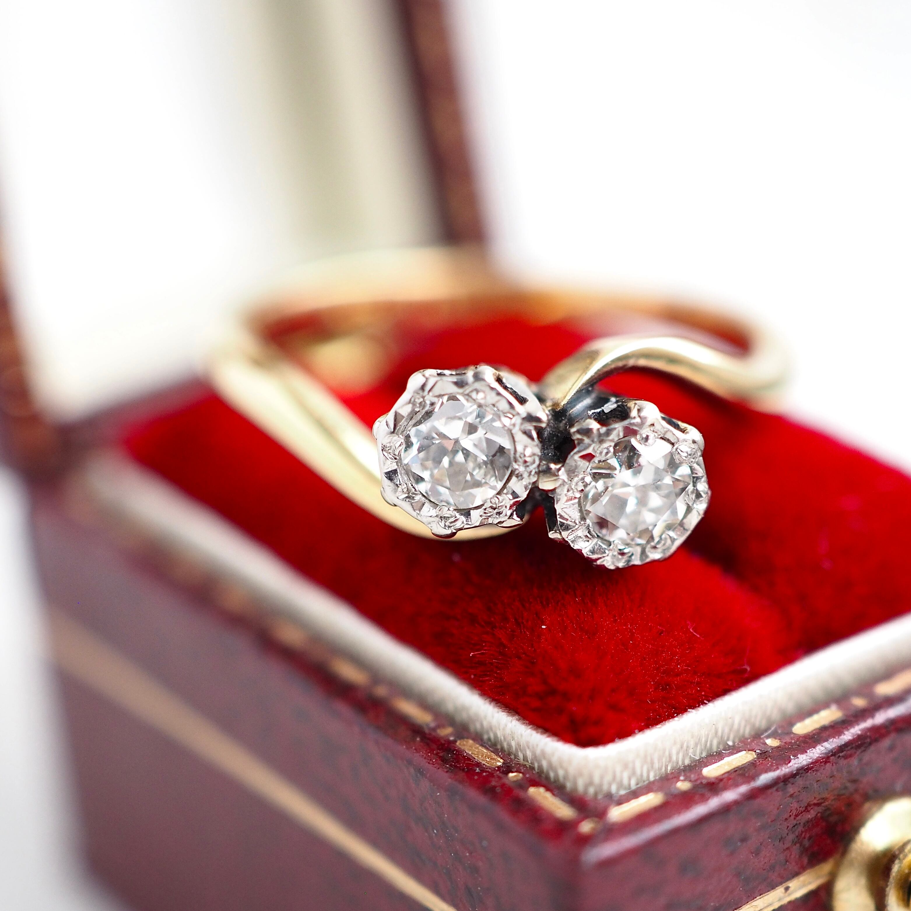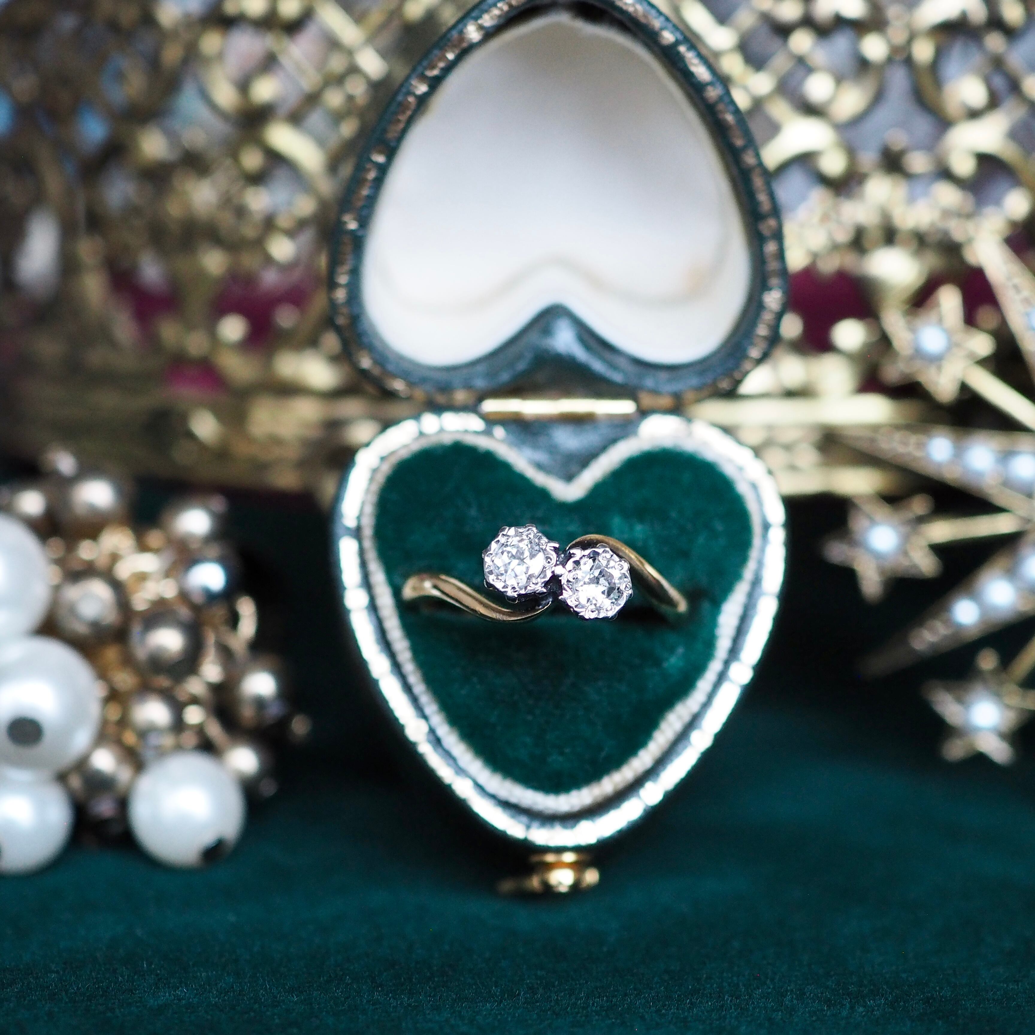 フランス語でtoi et moi「あなたと私」を意味する2つの宝石が隣り合った配置のリング。