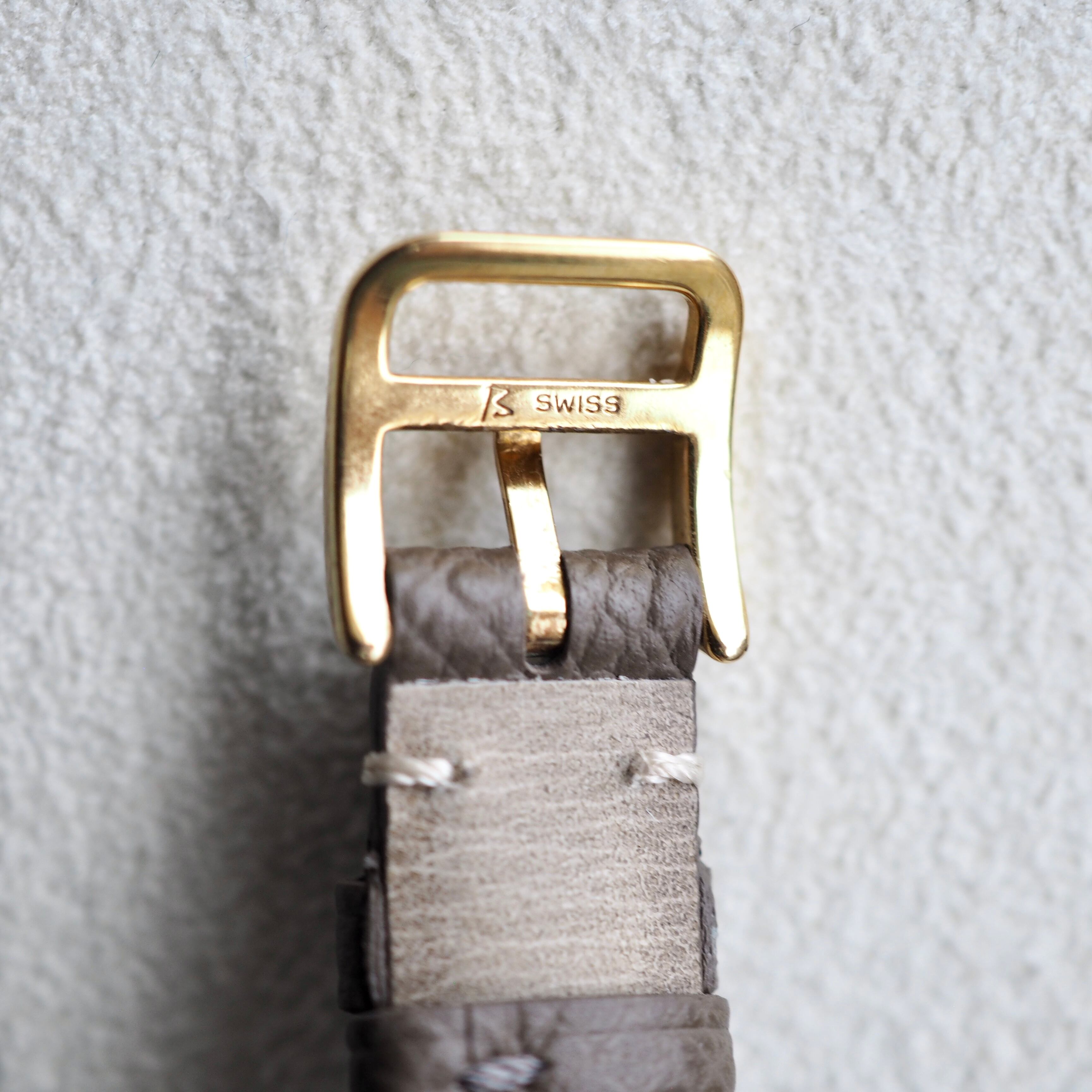 ベルトにもこだわり、某メゾンで鞄や財布に使われる最高級ボックスカーフの新品ベルト(トープカラー)をお付けしました。