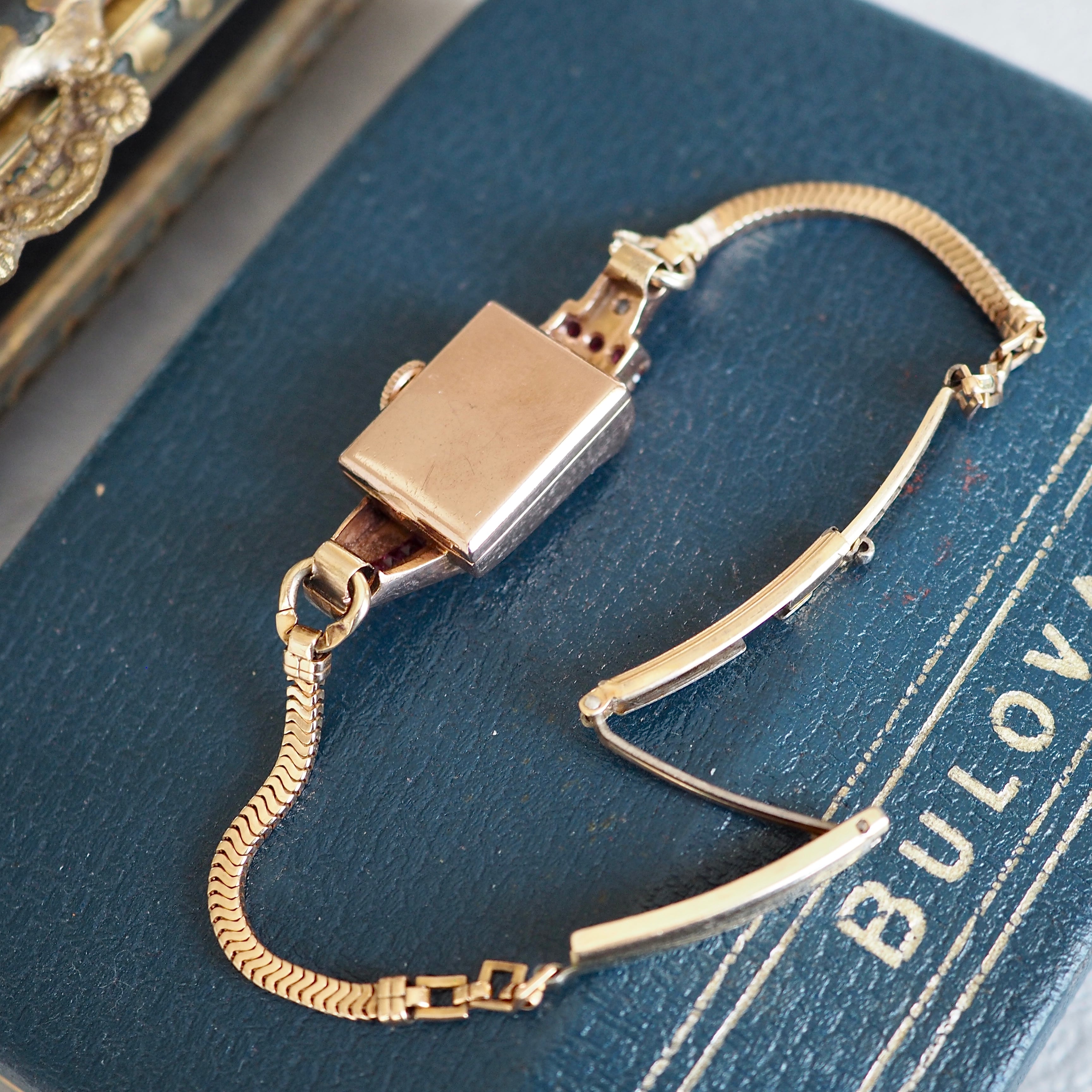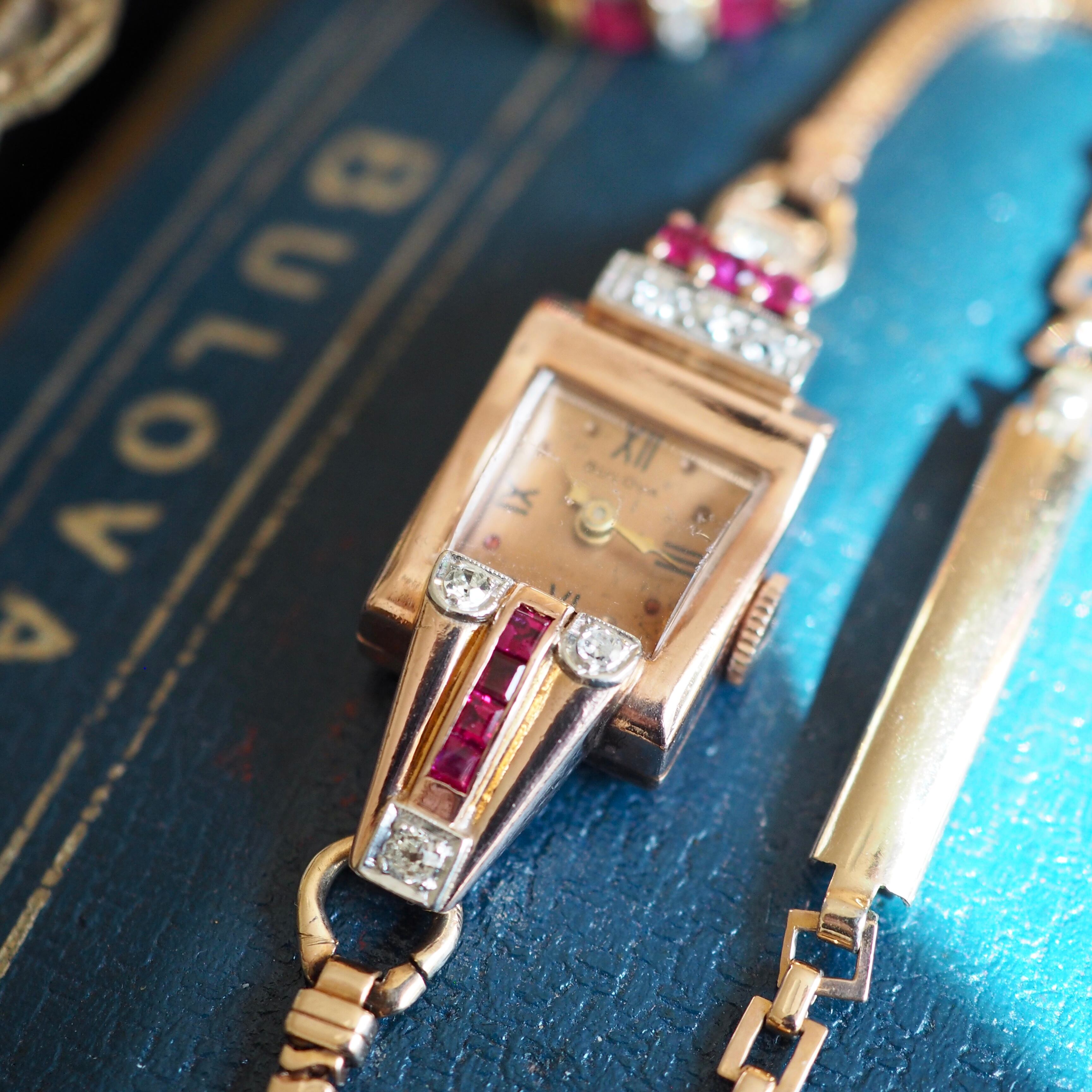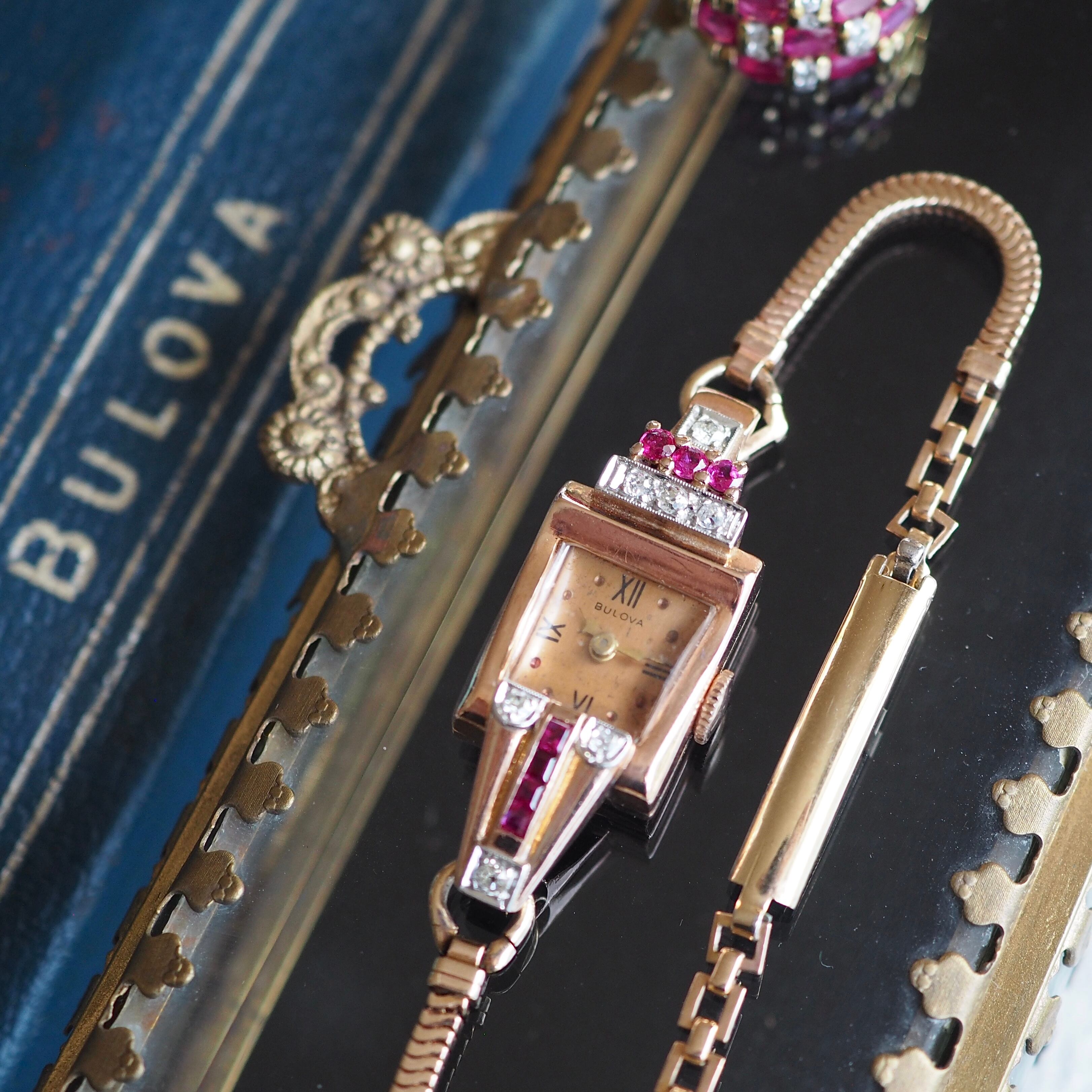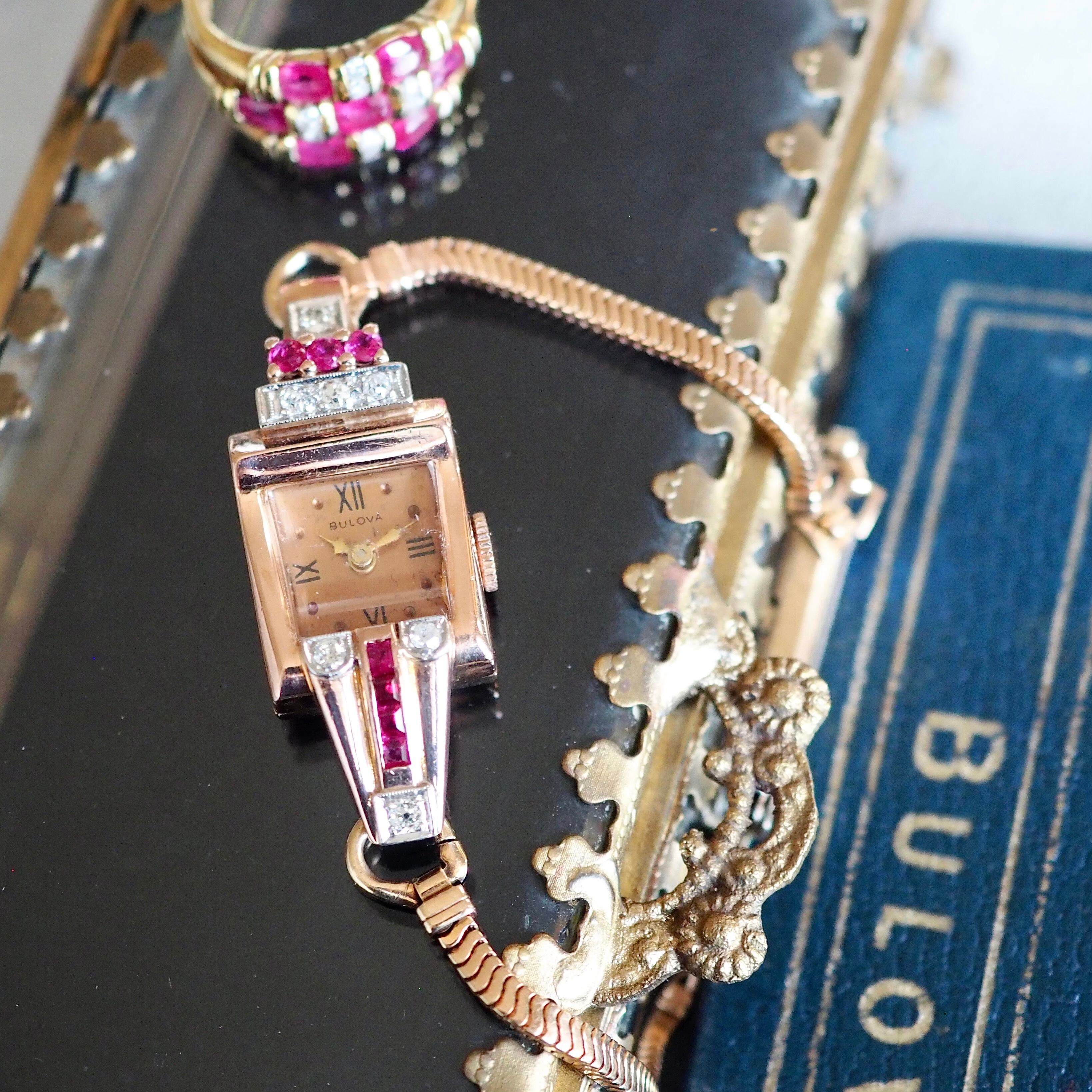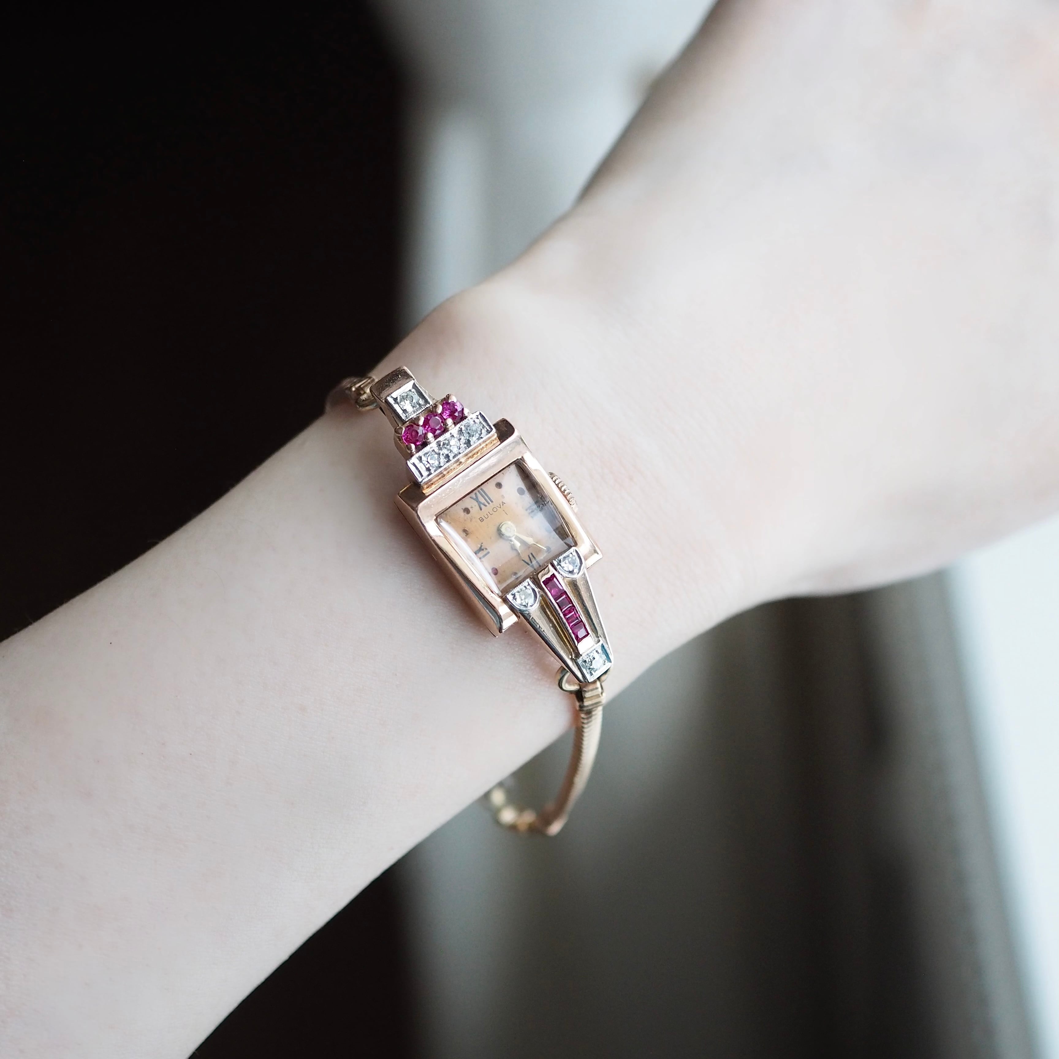 BULOVA ブローバ 14金無垢 ダイヤモンド&ルビー ジュエリーウォッチアンティーク時計