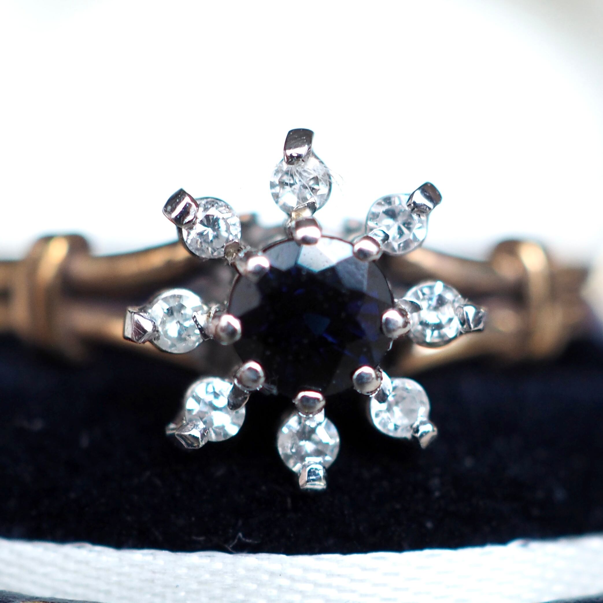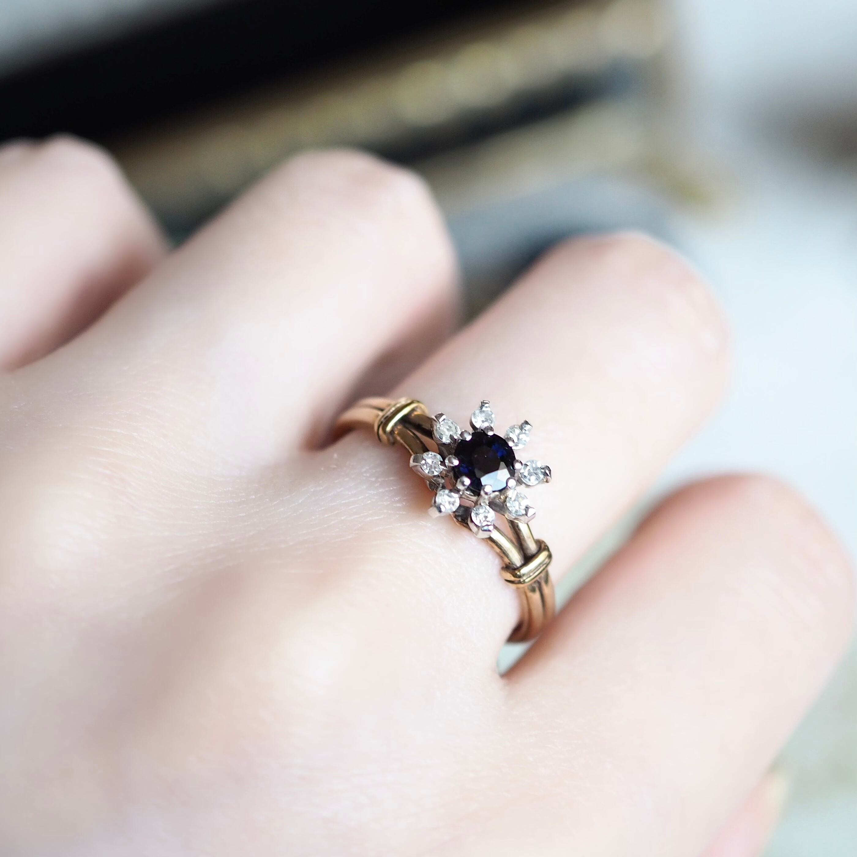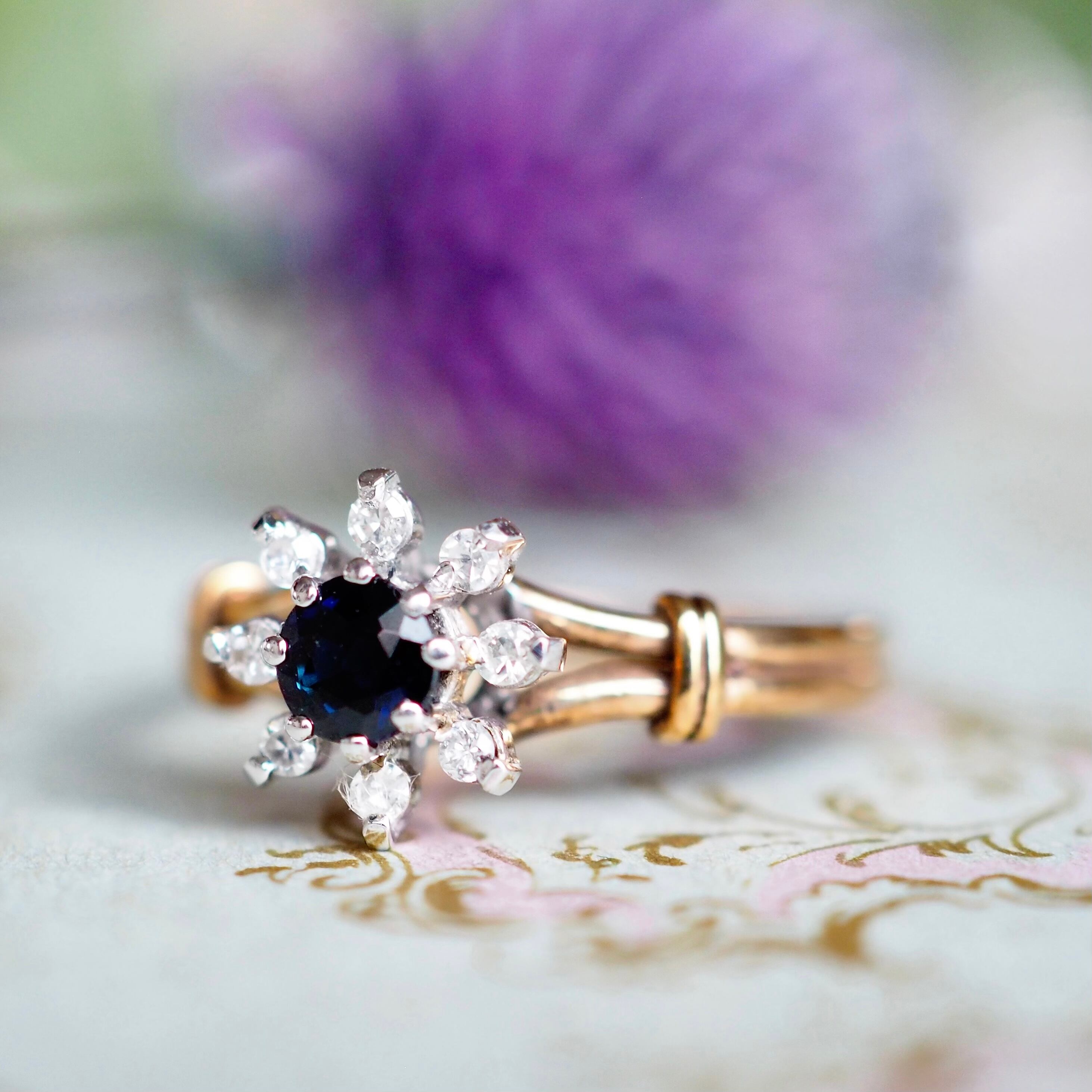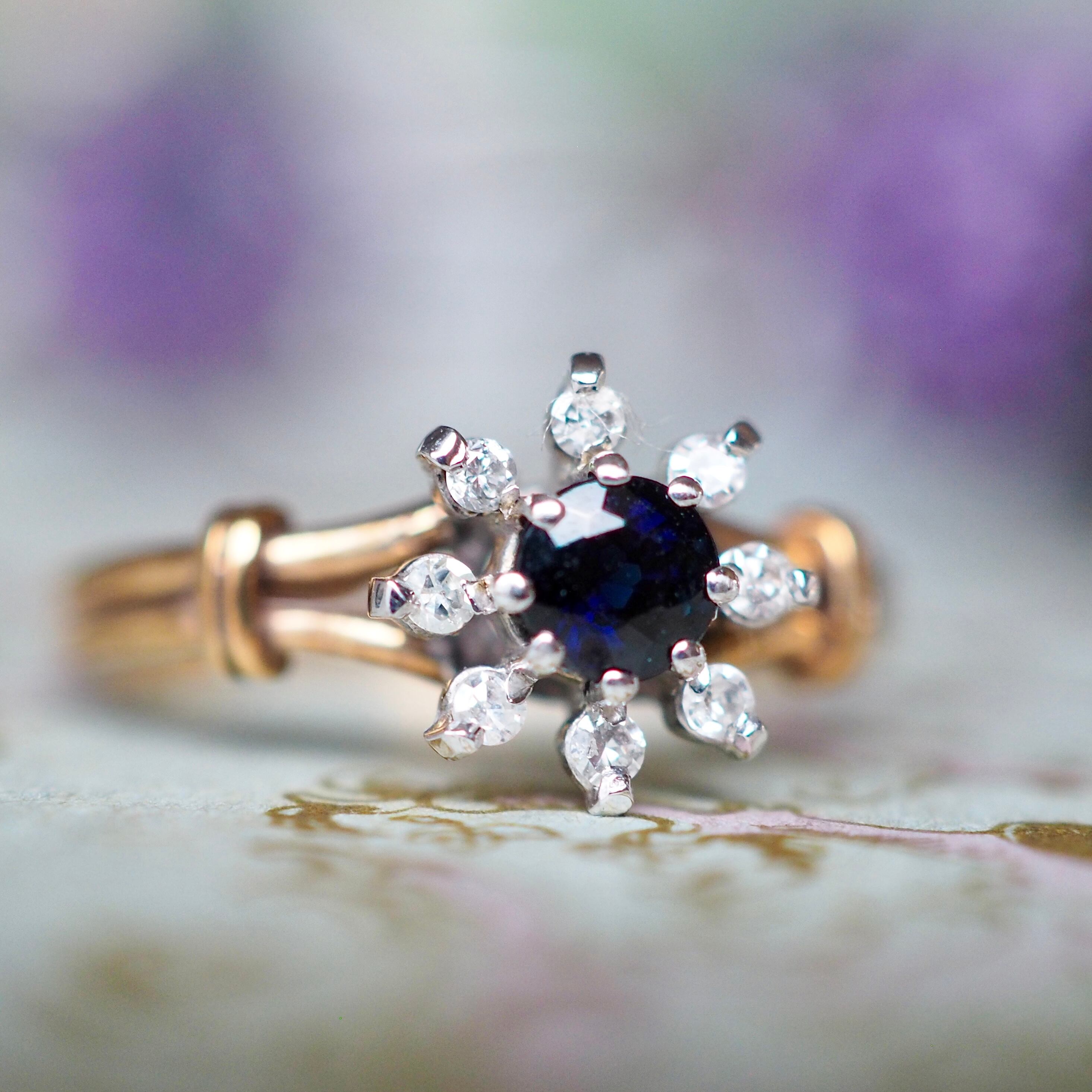 イギリス ヴィンテージ フラワーリング サファイア&ダイヤモンド 英国
