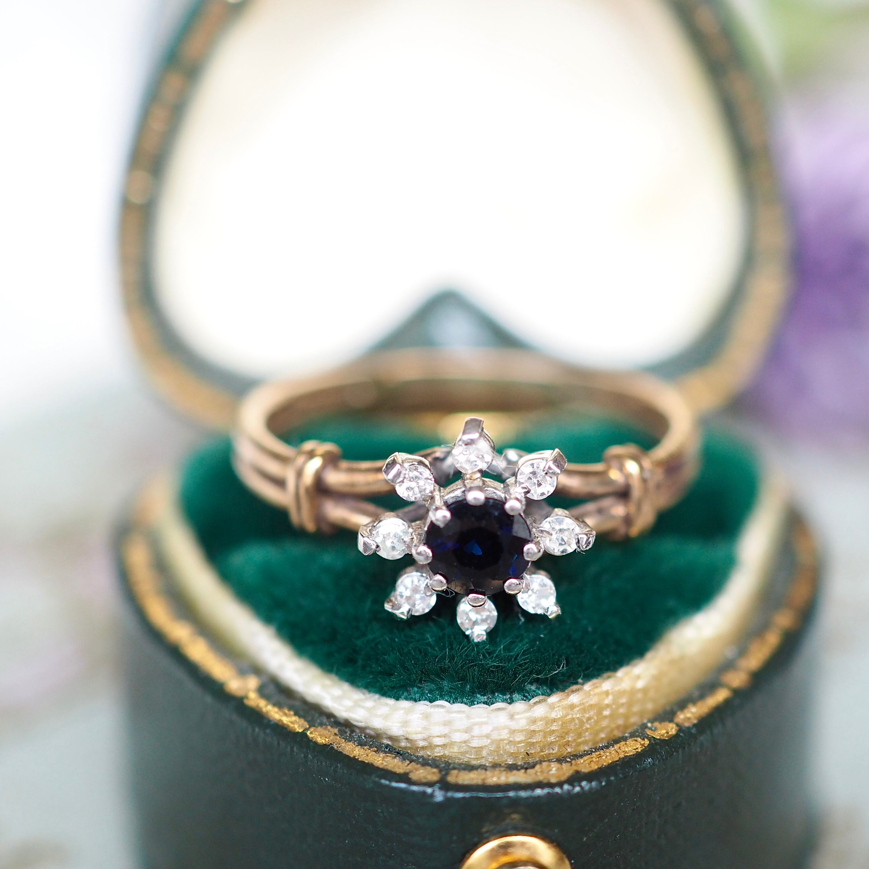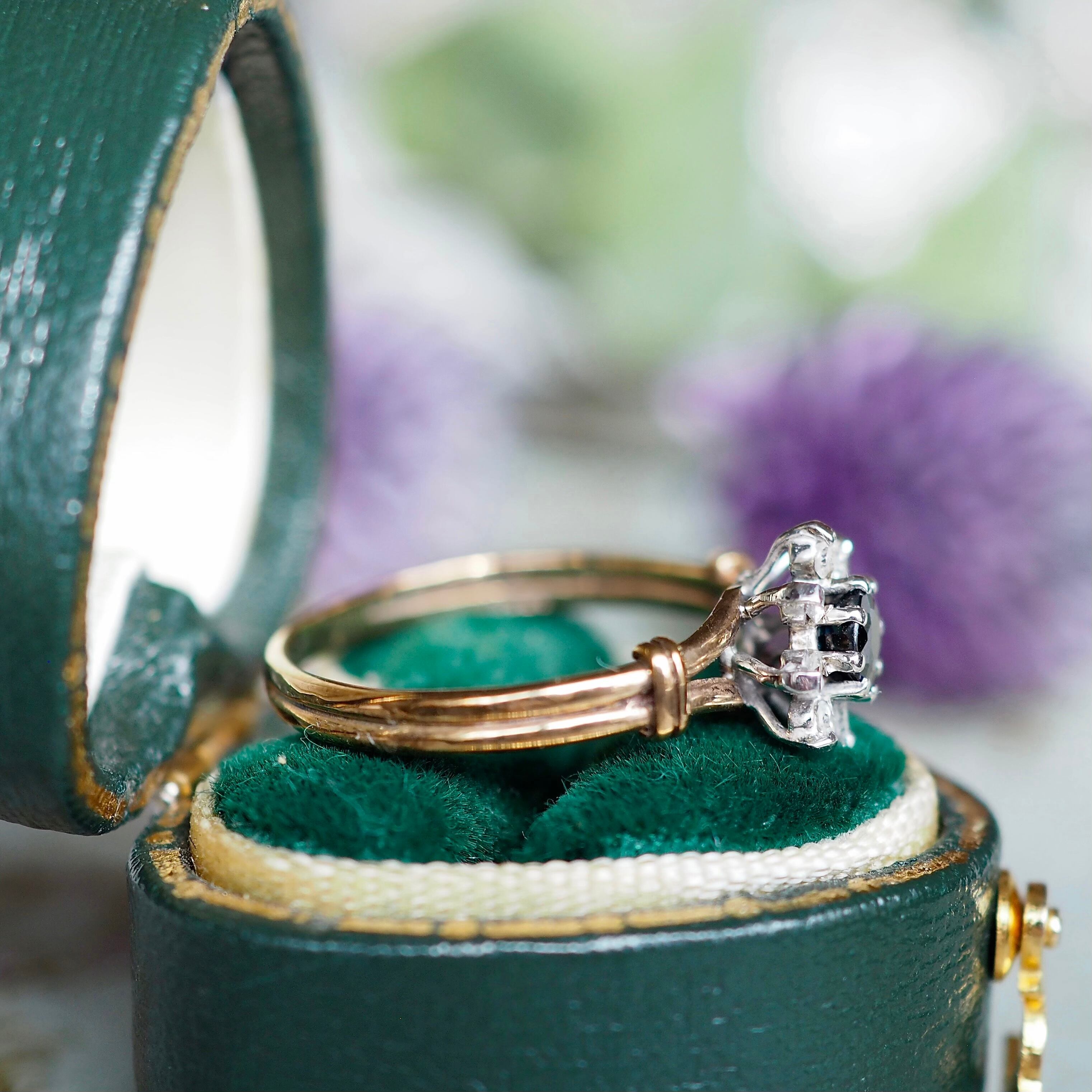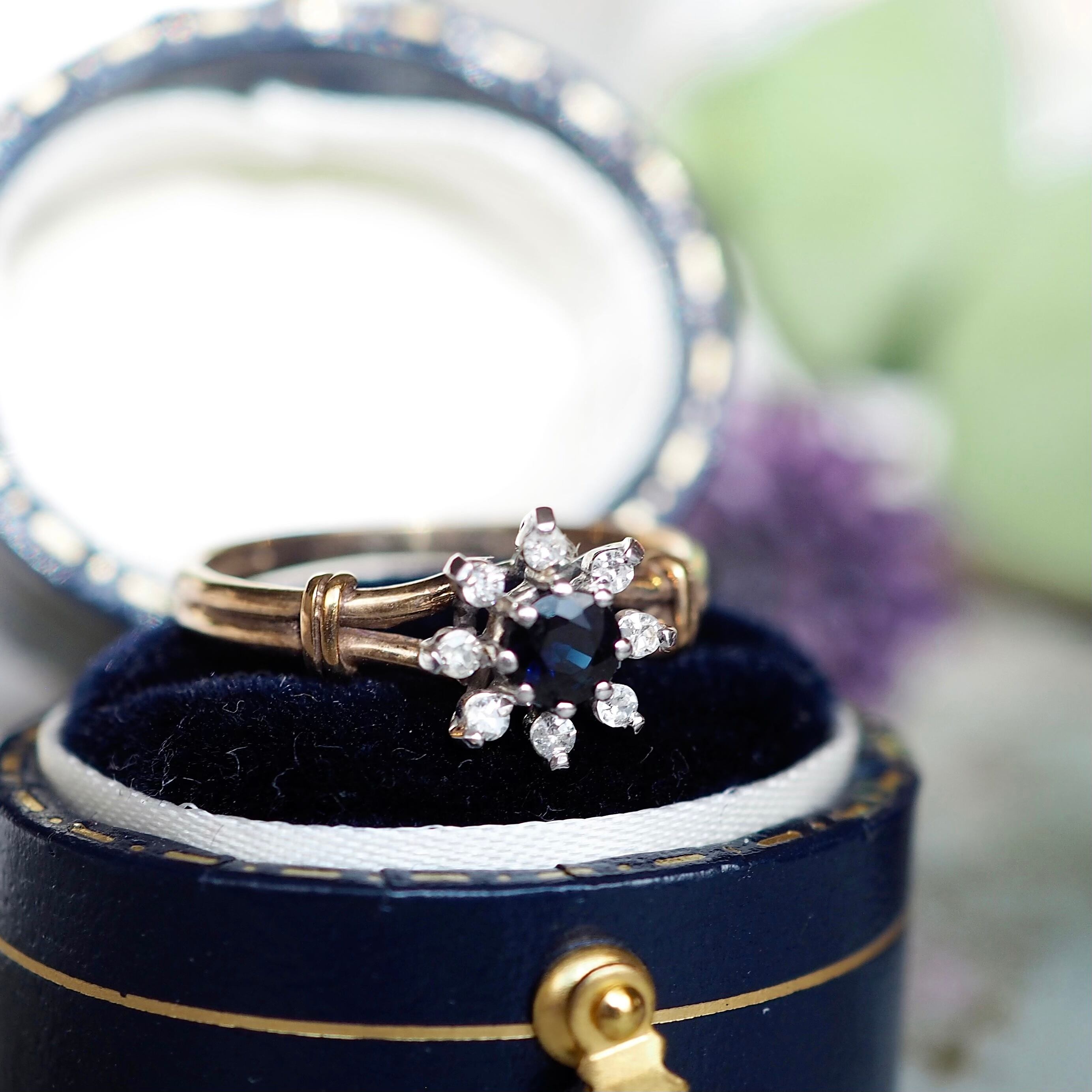 イギリス ヴィンテージ フラワーリング サファイア&ダイヤモンド 英国