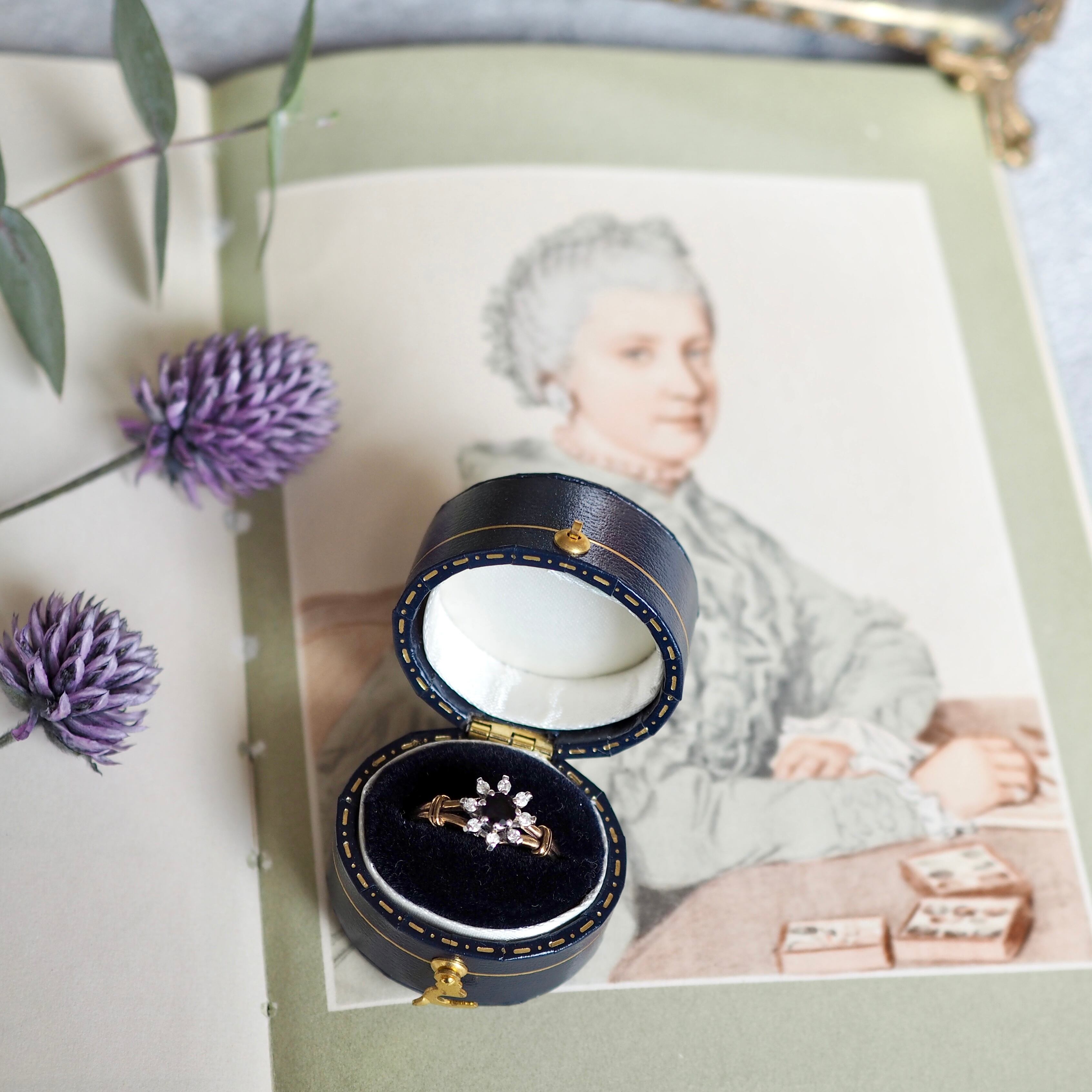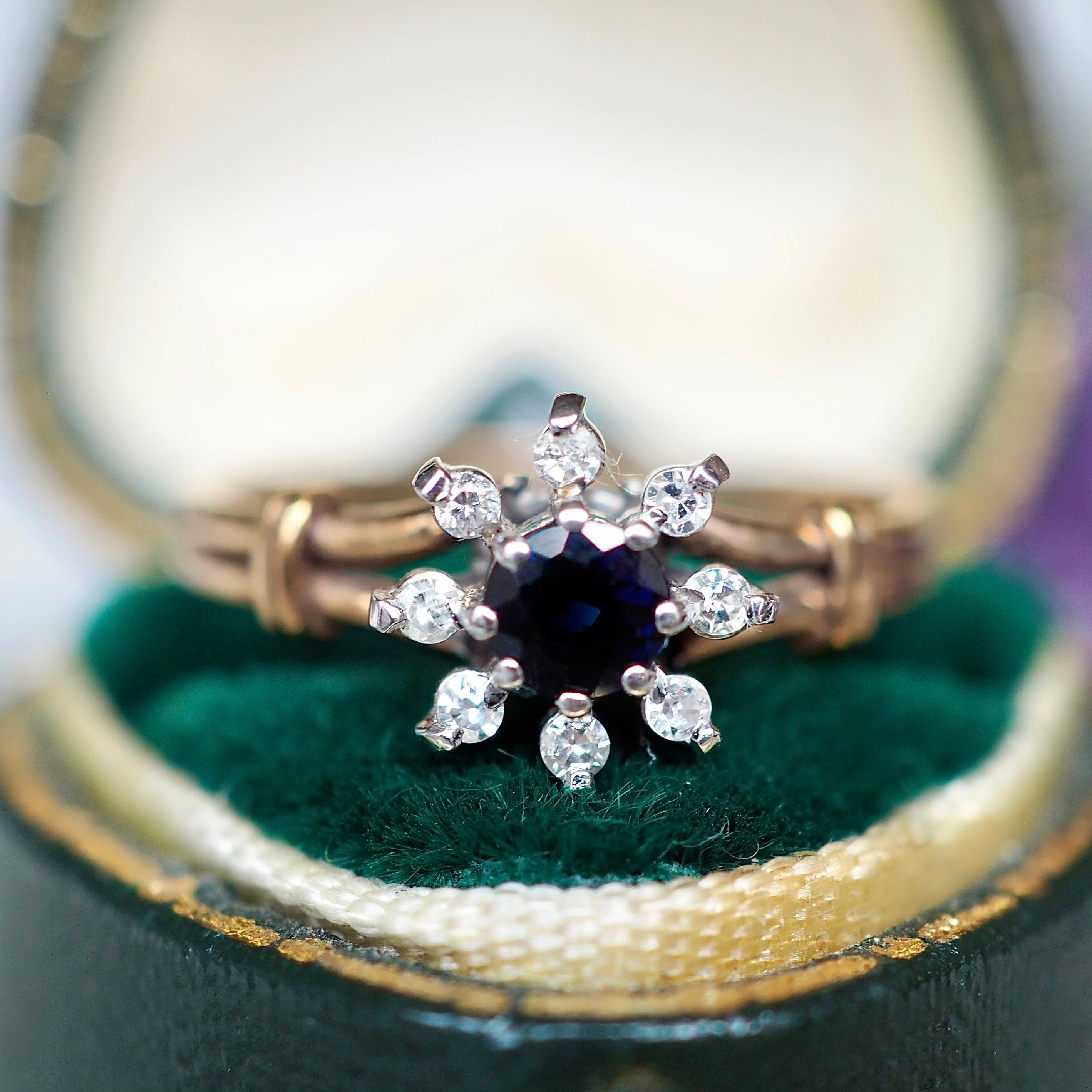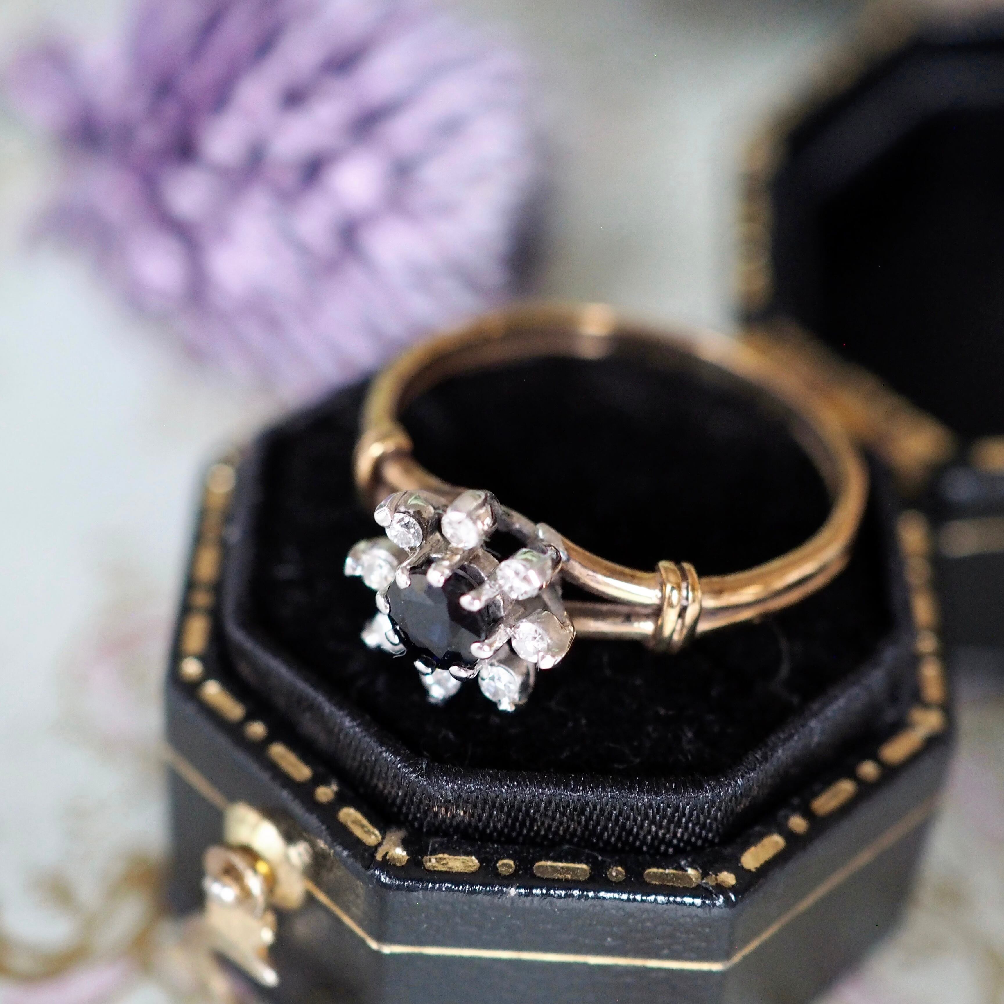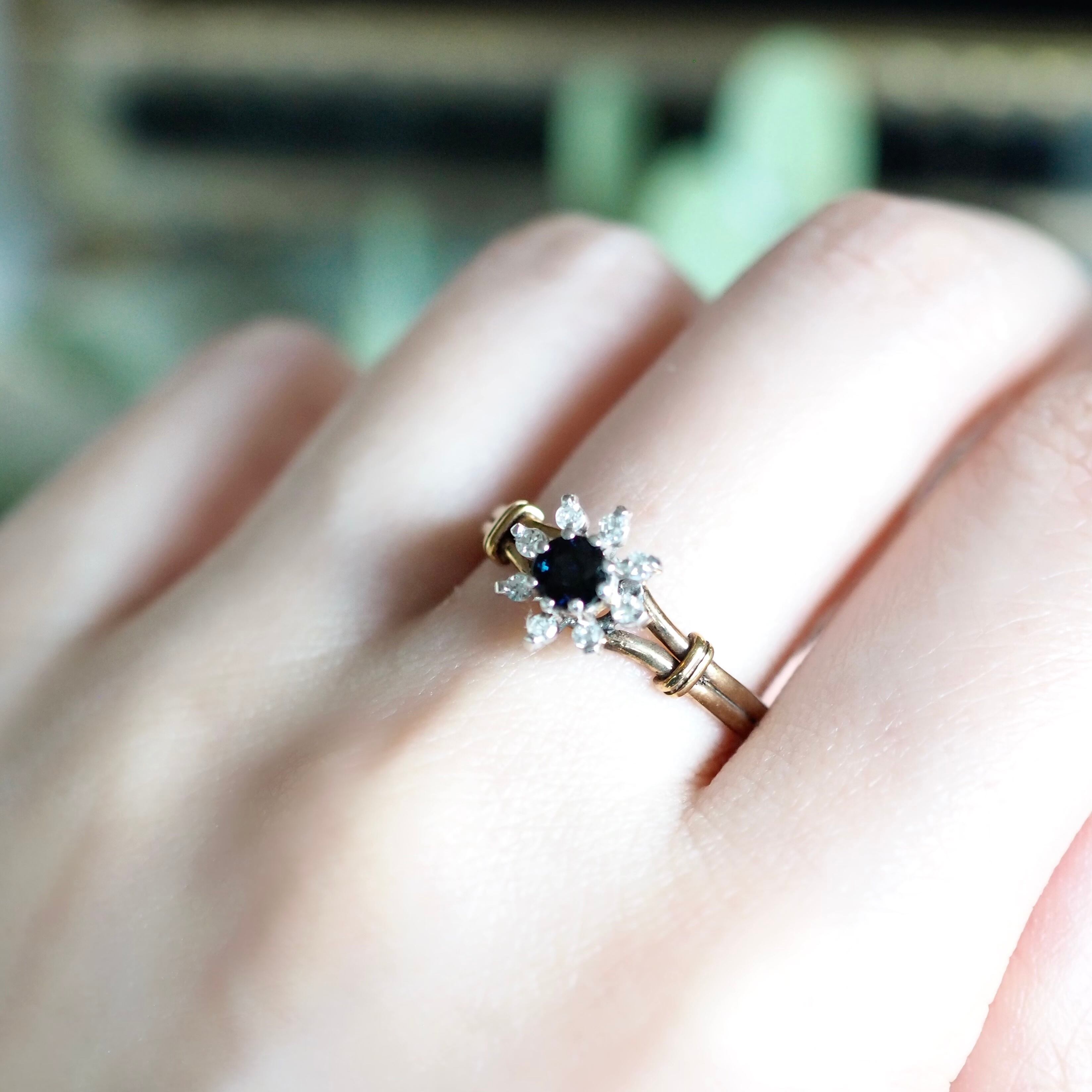 イギリス ヴィンテージ フラワーリング サファイア&ダイヤモンド 英国