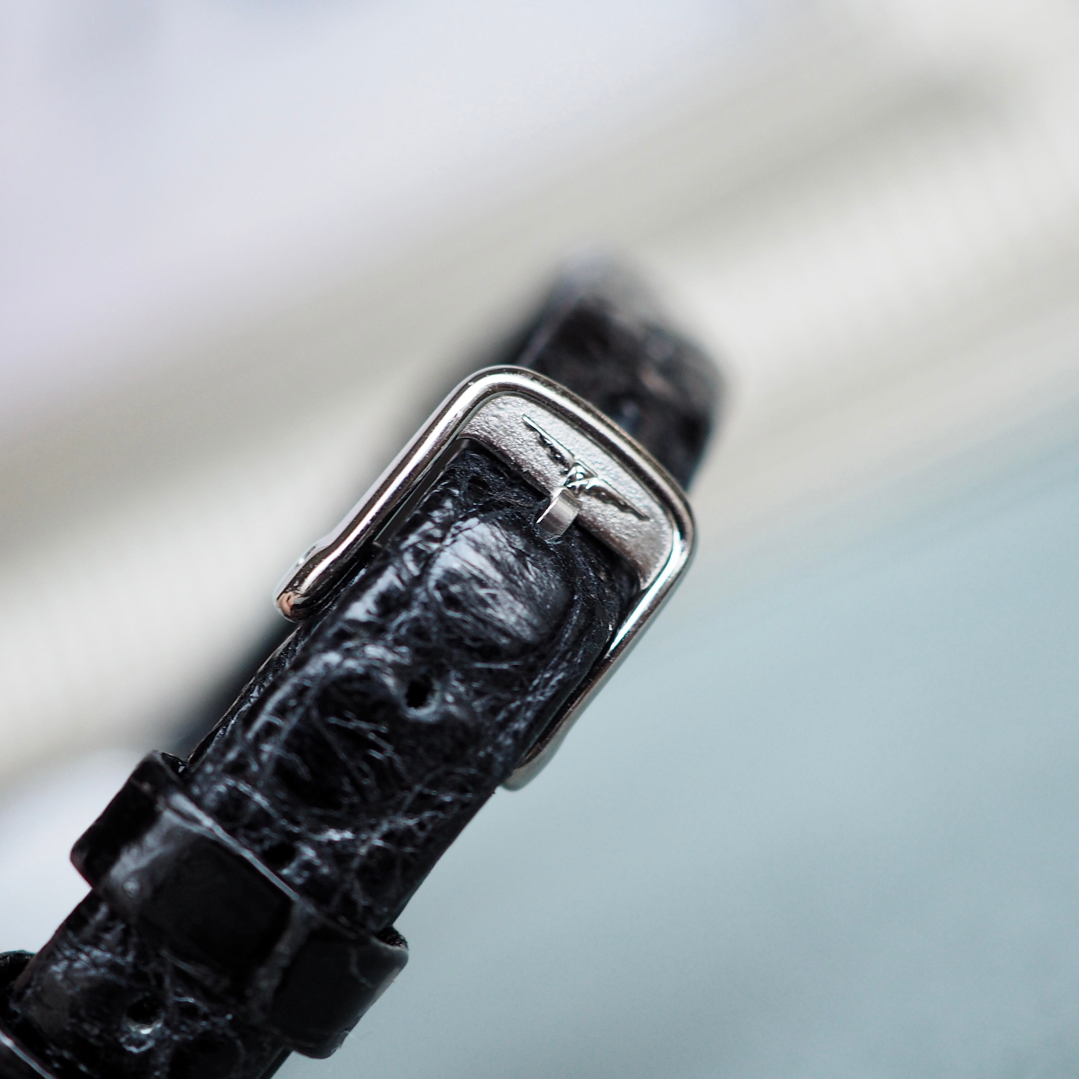 防錆を兼ねた仕上げのブルースチールのブレゲ針と艶のあるクロコベルトなど、気品のあるゴージャス感を演出しています。