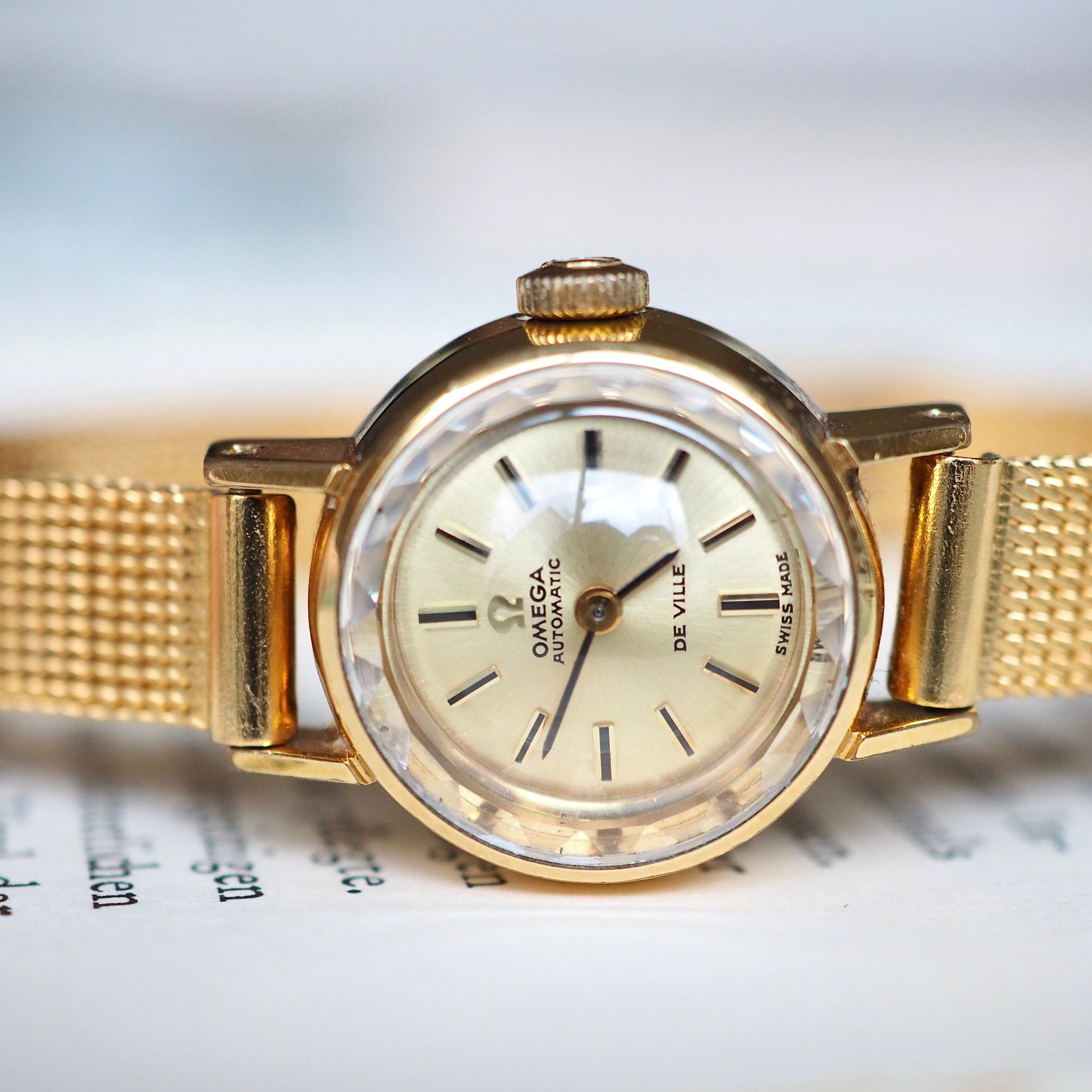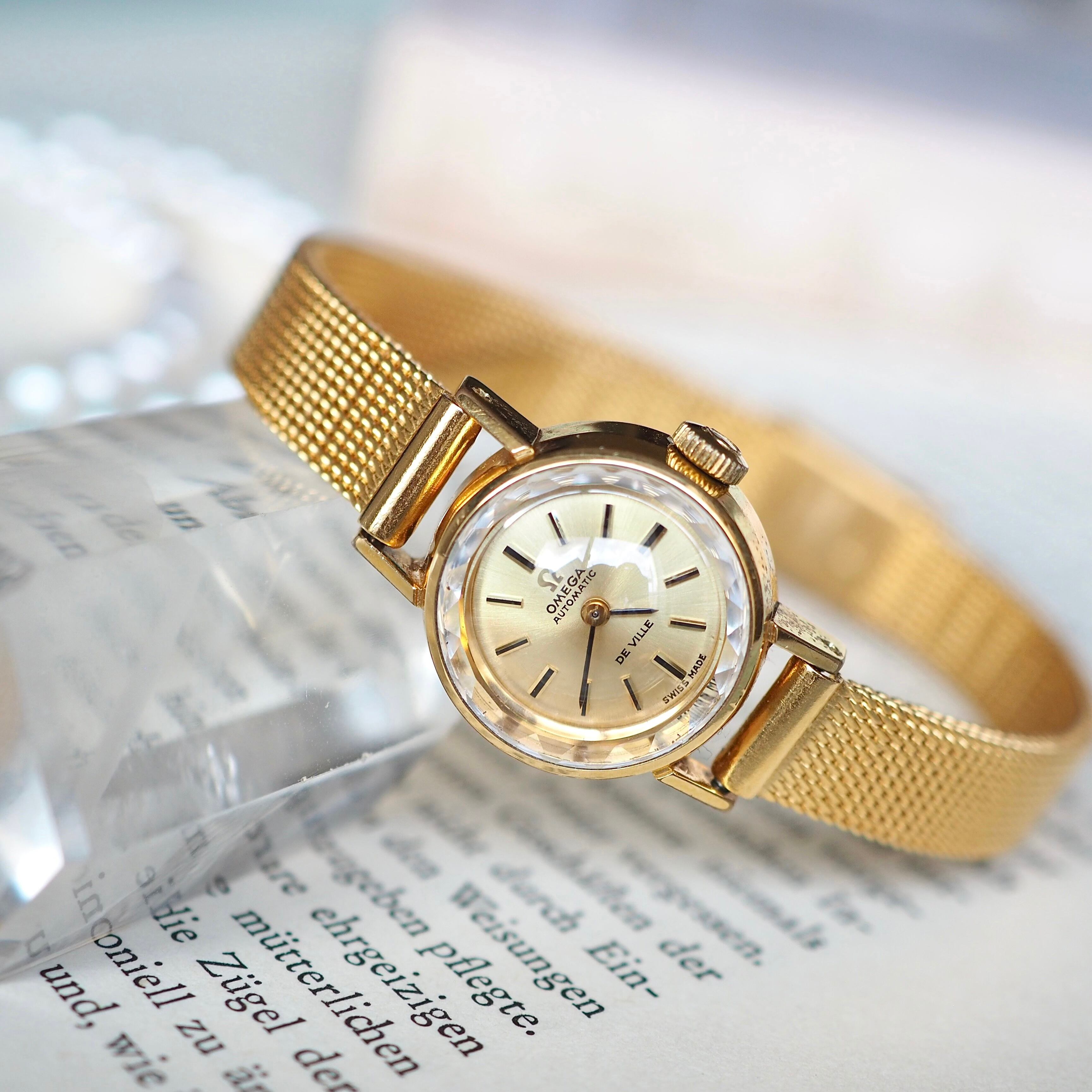 OH済 OMEGA deville 自動巻 カットガラス アンティーク時計