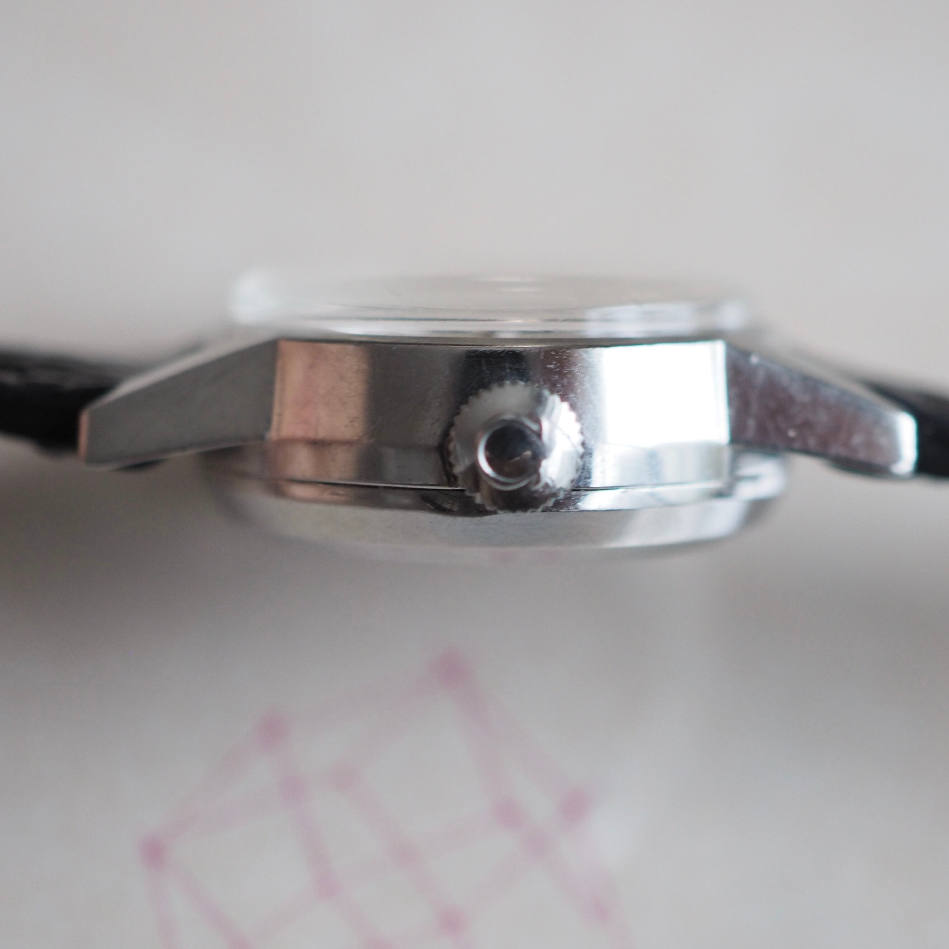 自動巻らしく厚みが8㎜ありコロンとしています。