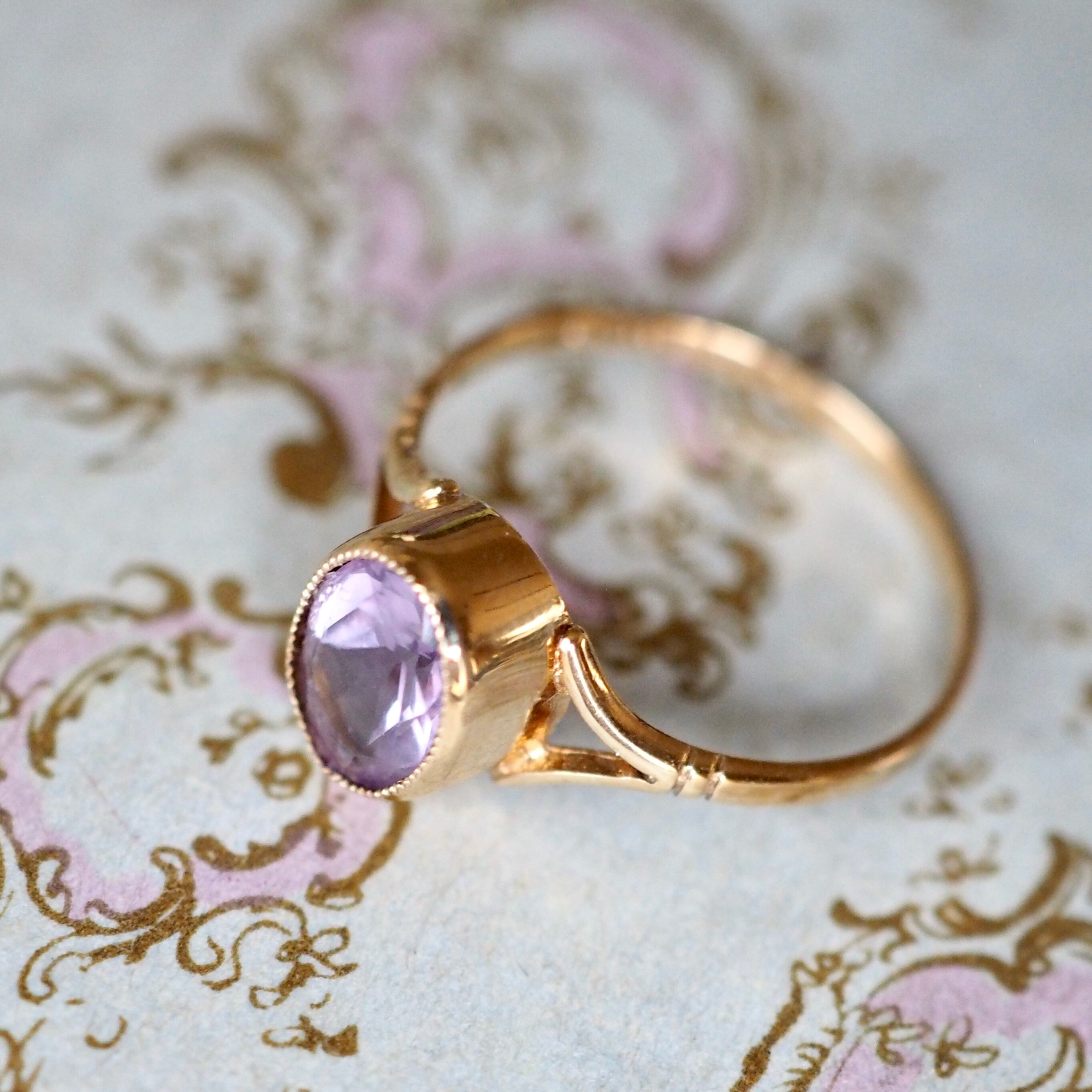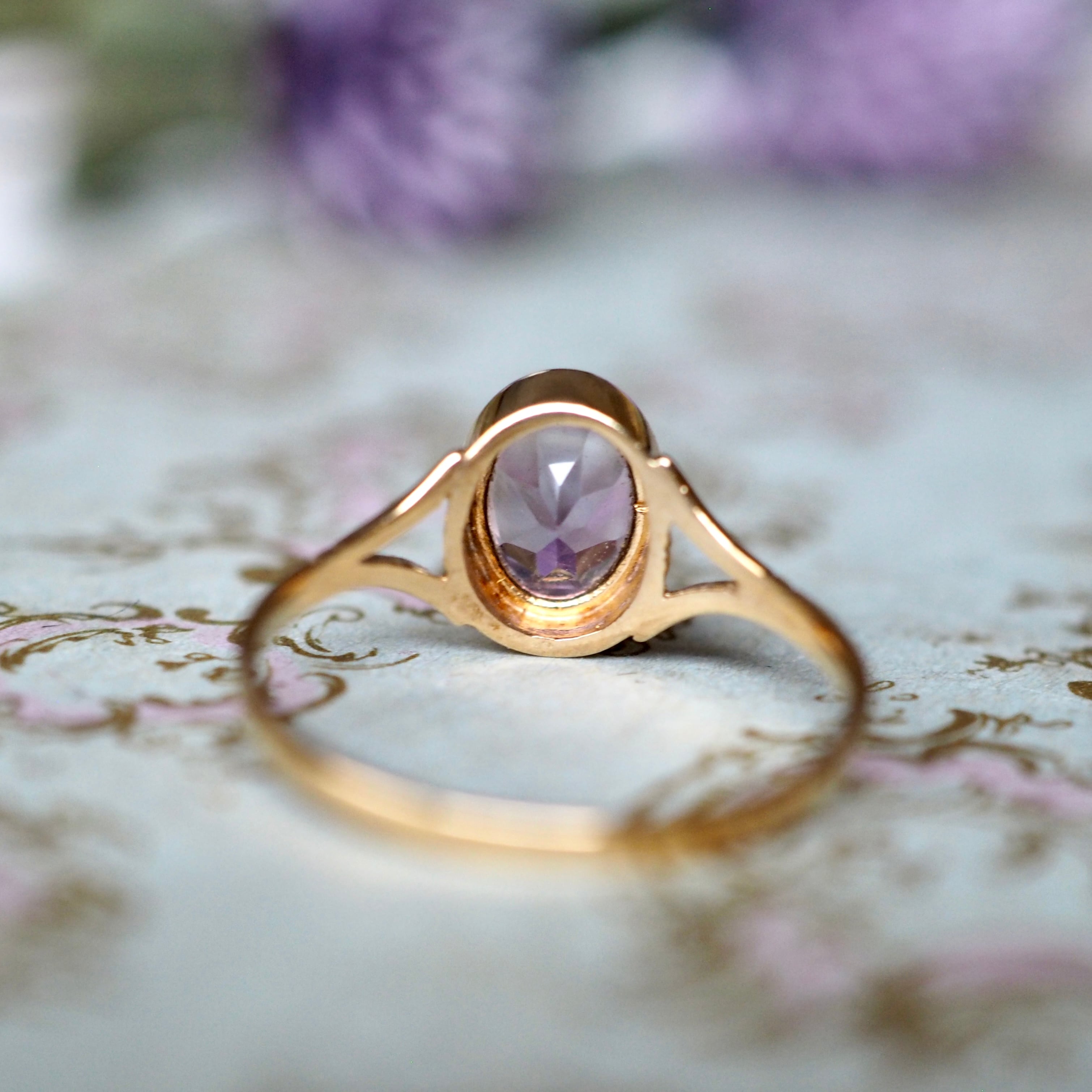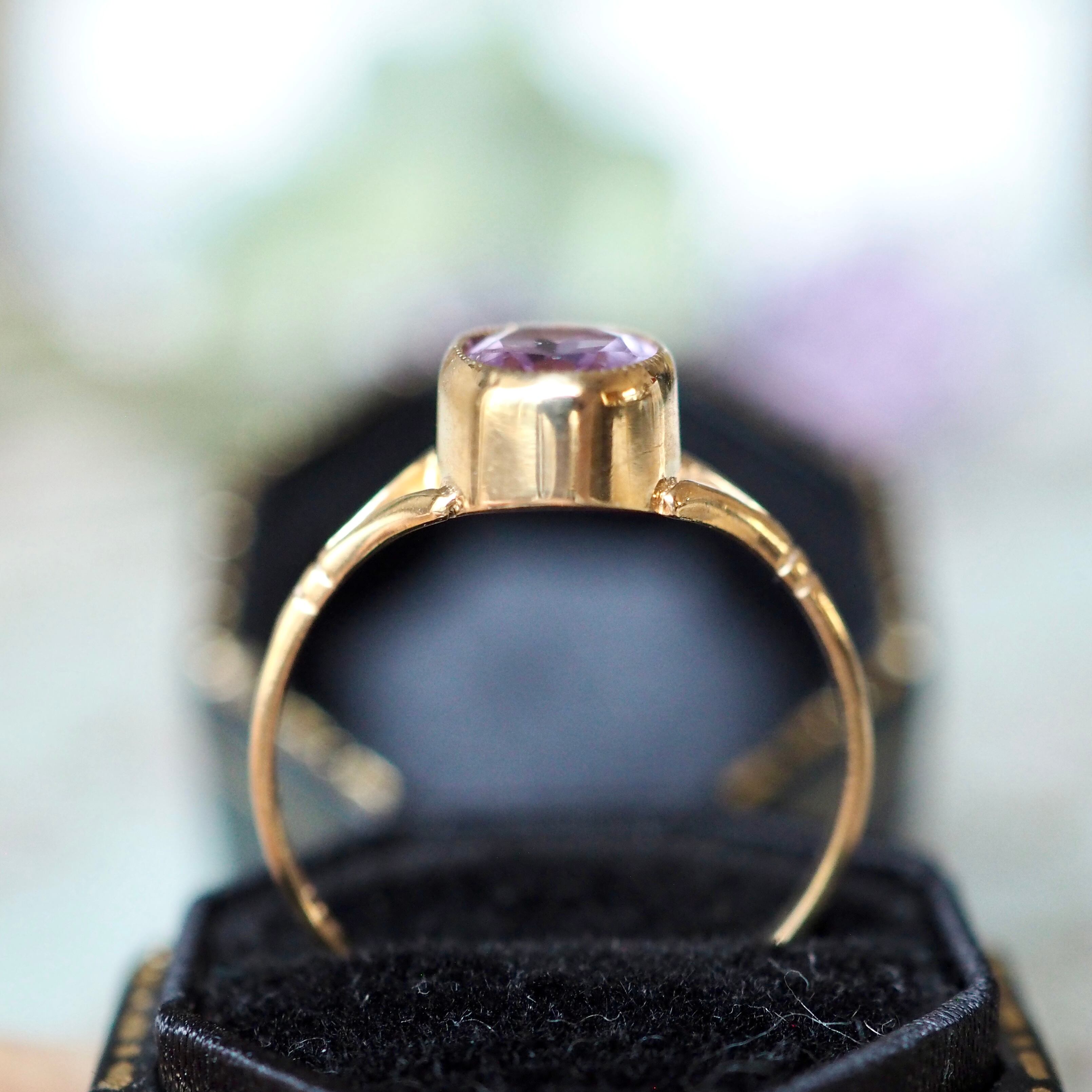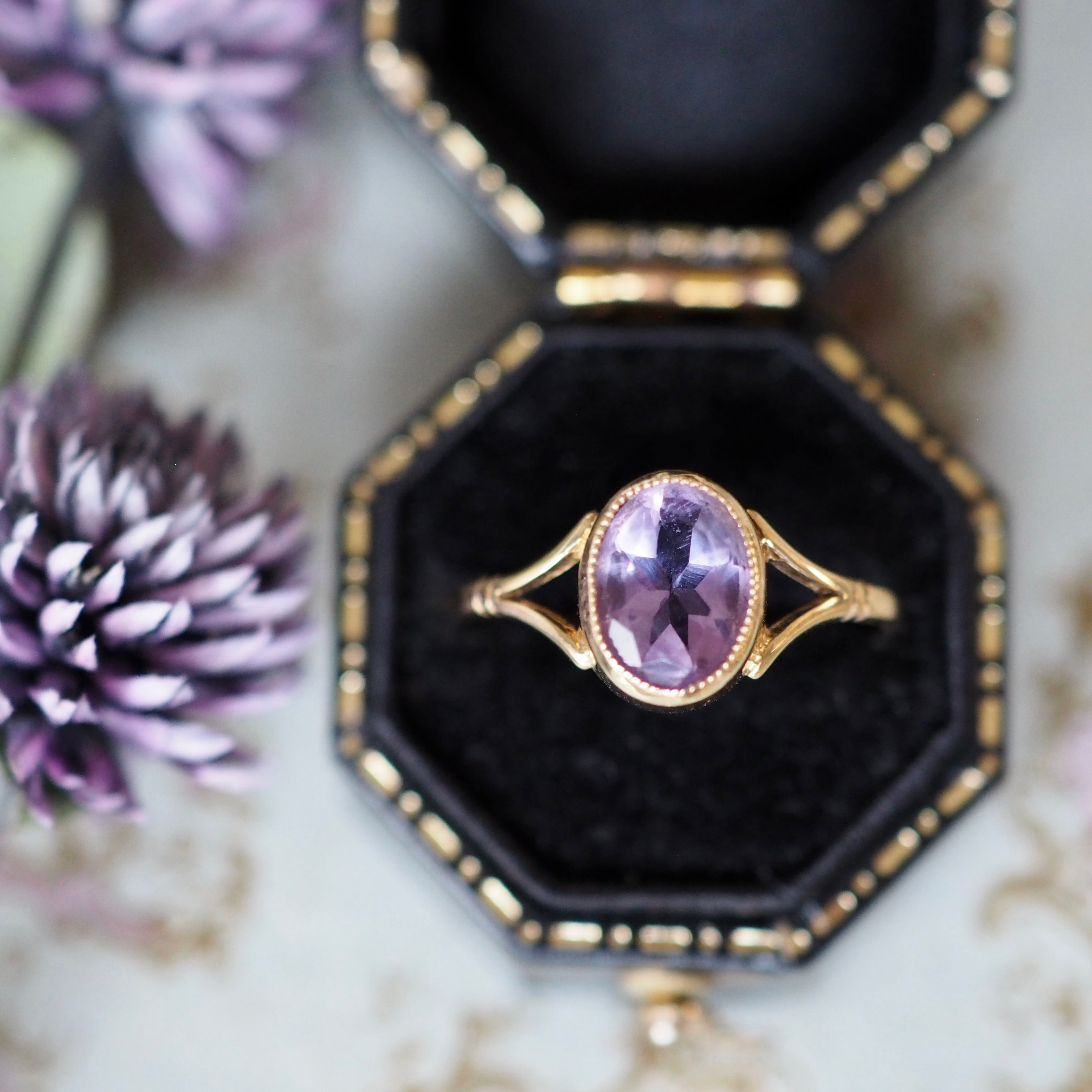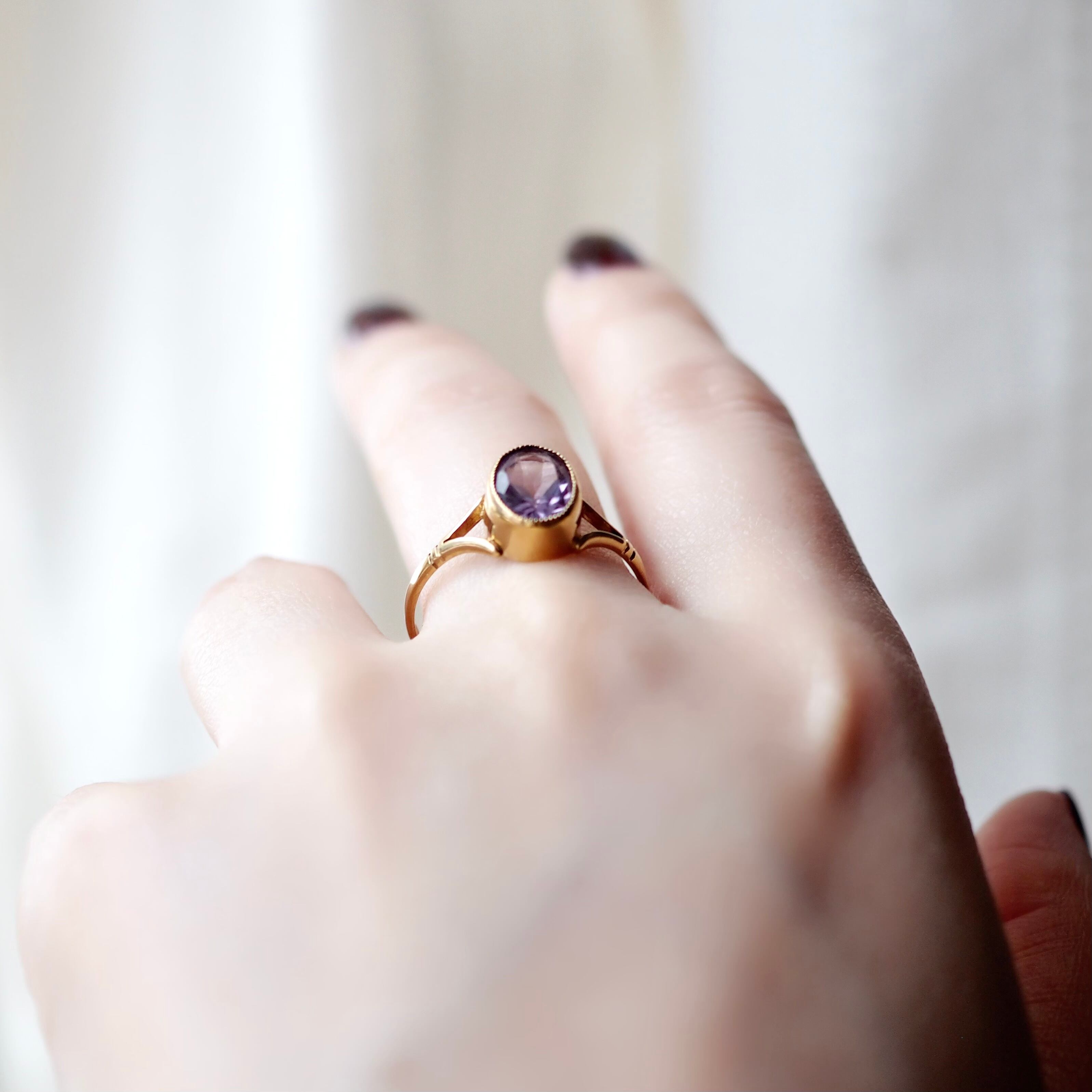 品のいい薄いすみれ色のアメジストが可憐で優しい雰囲気のヴィンテージリングです。