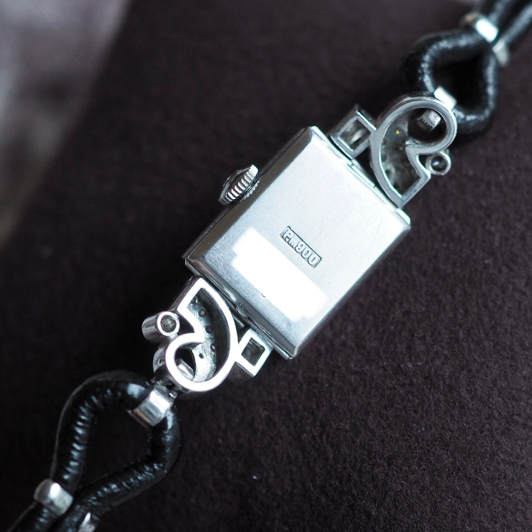プラチナ(Pm刻印は昔のプラチナの意味です)ケースとラグに贅沢にふんだんにダイヤがあしらわれています。