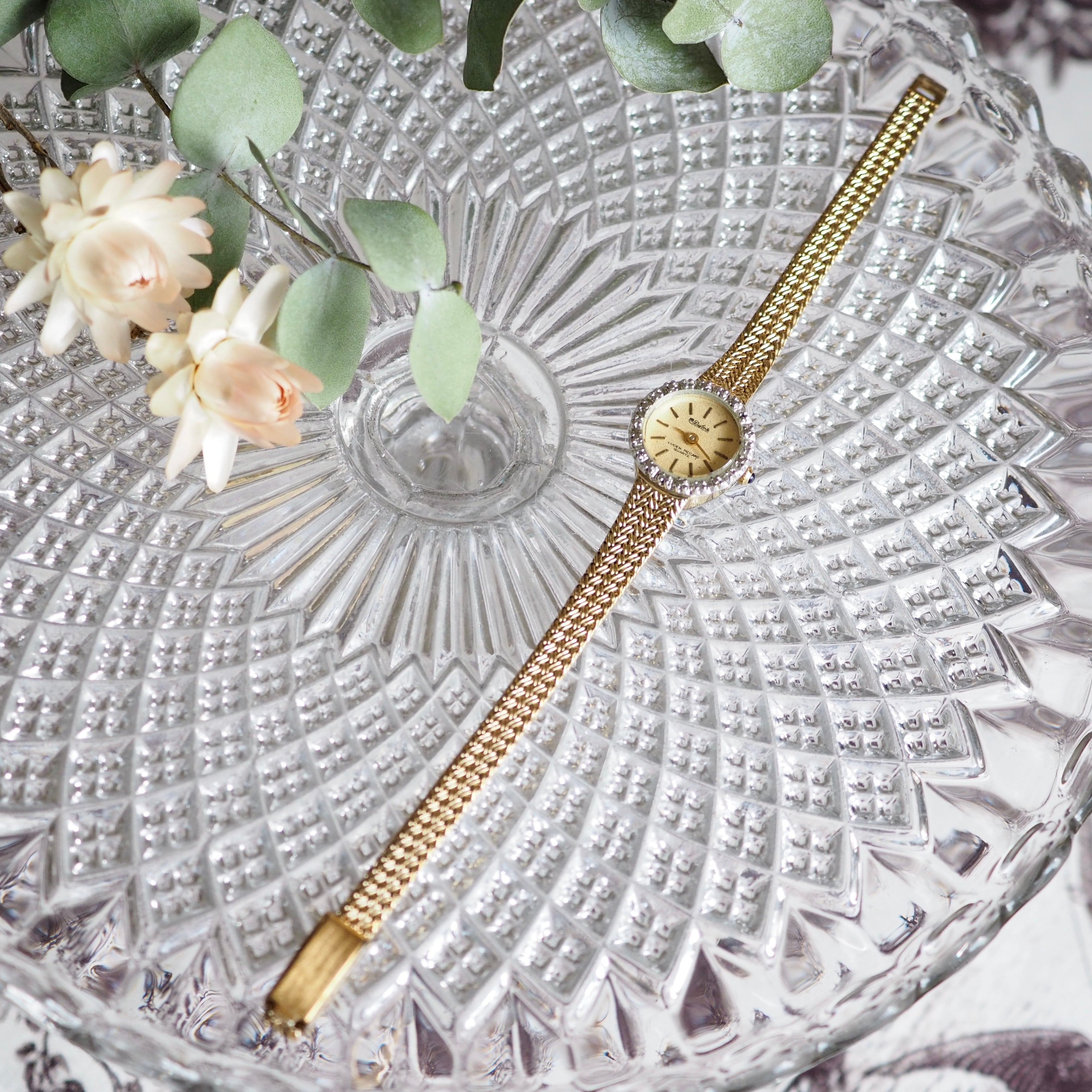 人気のヴィンテージ ・ルシアンピカールのドレスウォッチです。ラウンド型ケースにダイヤモンド付ベゼル 。