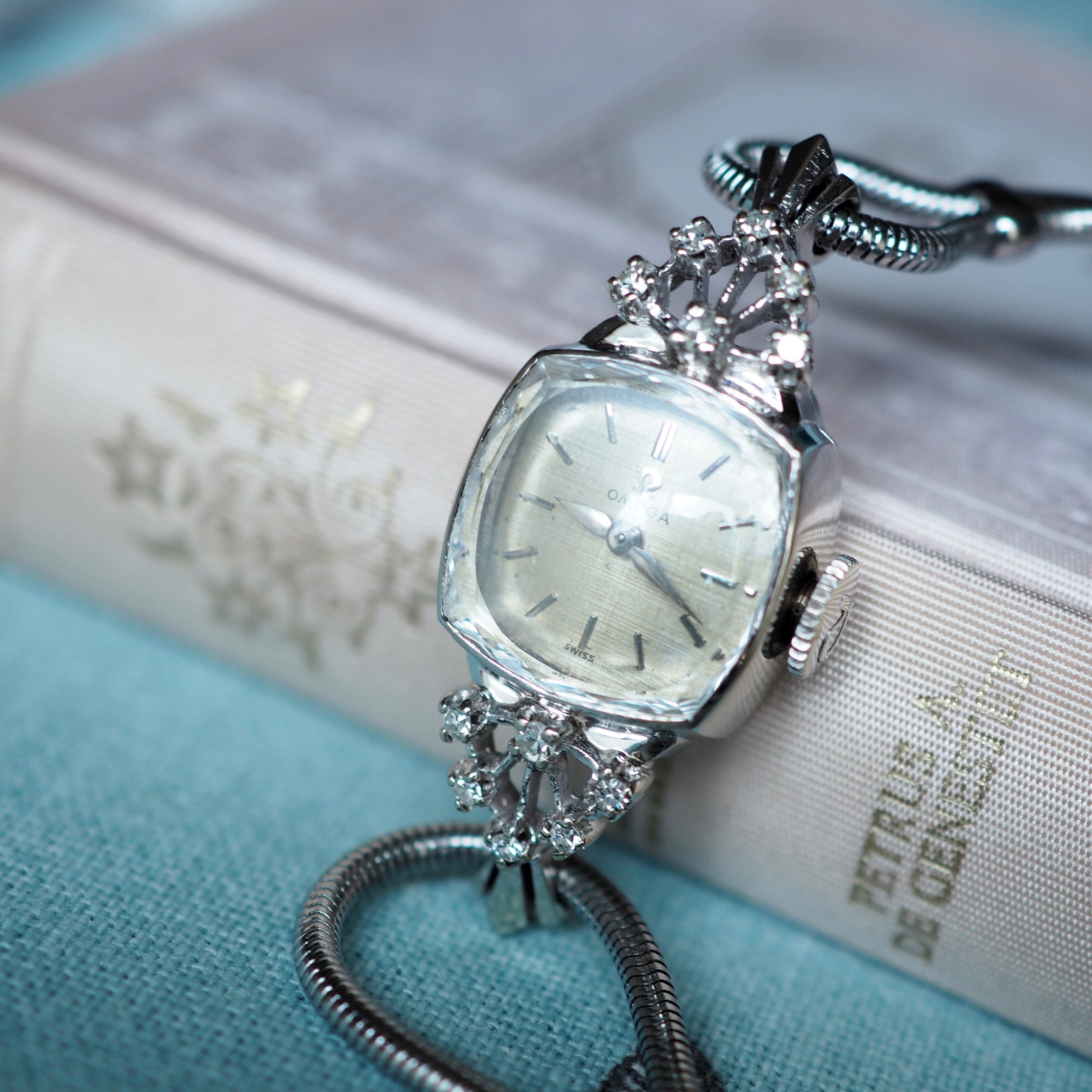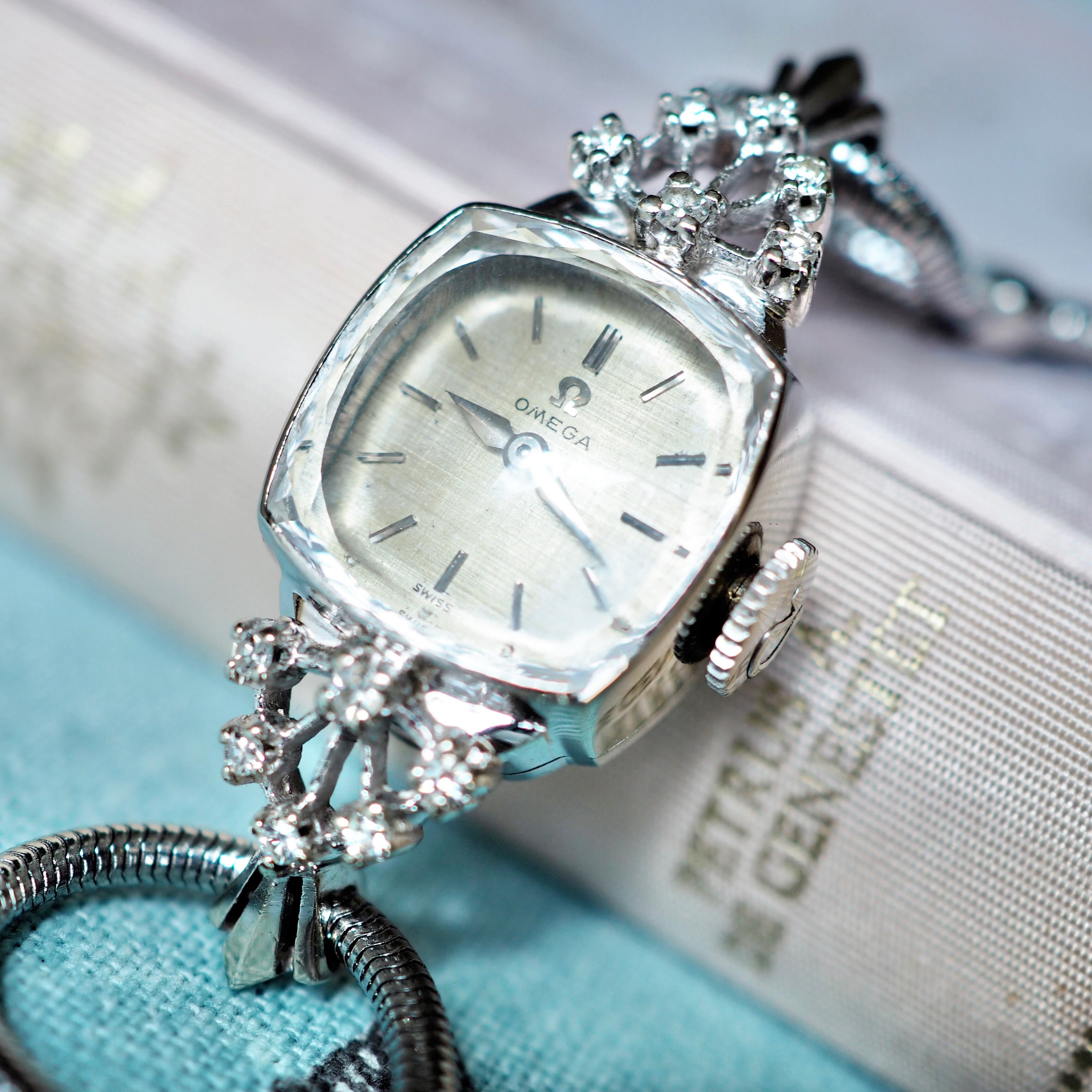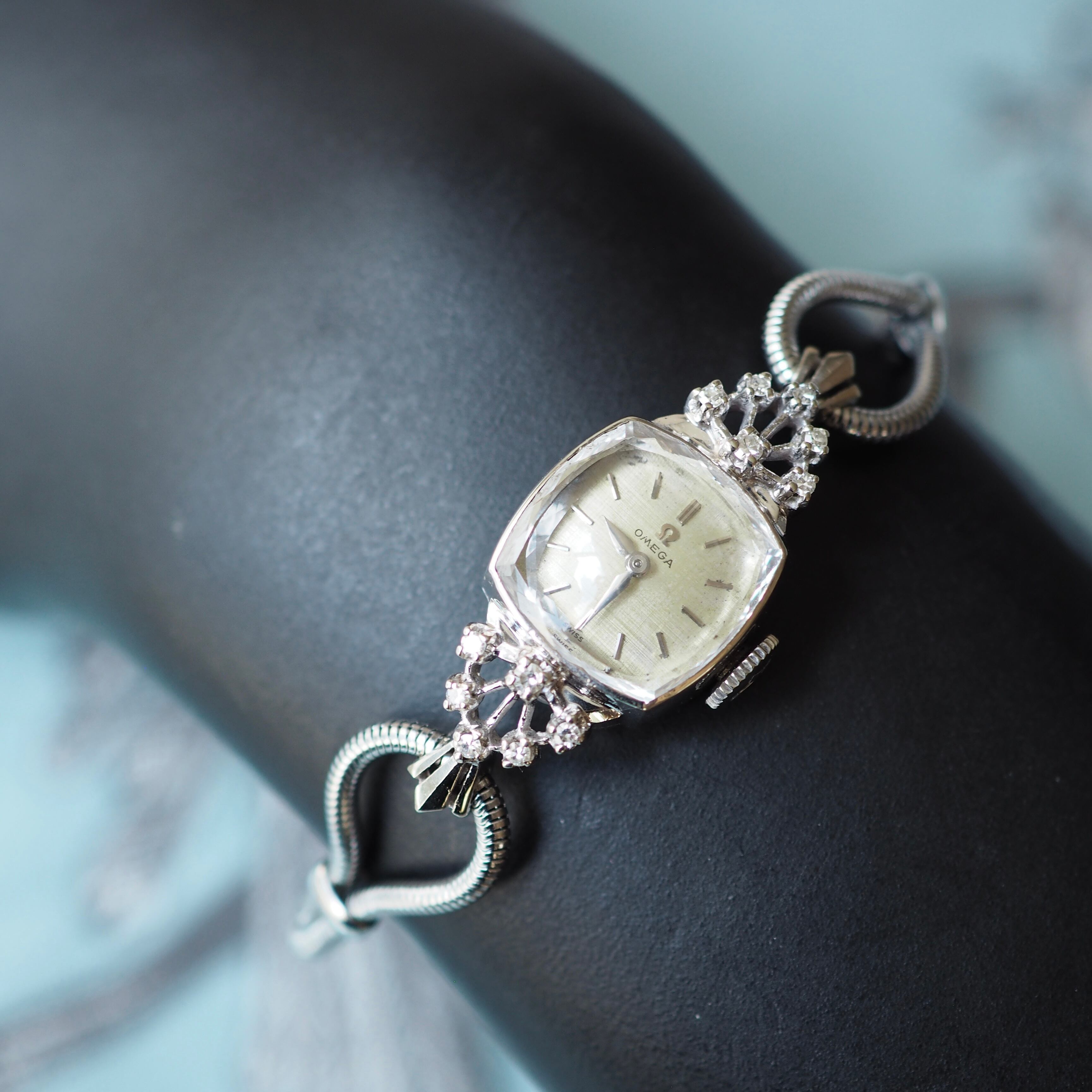 50年代のアンティーク・オメガのジュエリーウォッチです。細かい部分までの丁寧な作り込みに目を奪われる高級感のある逸品です。