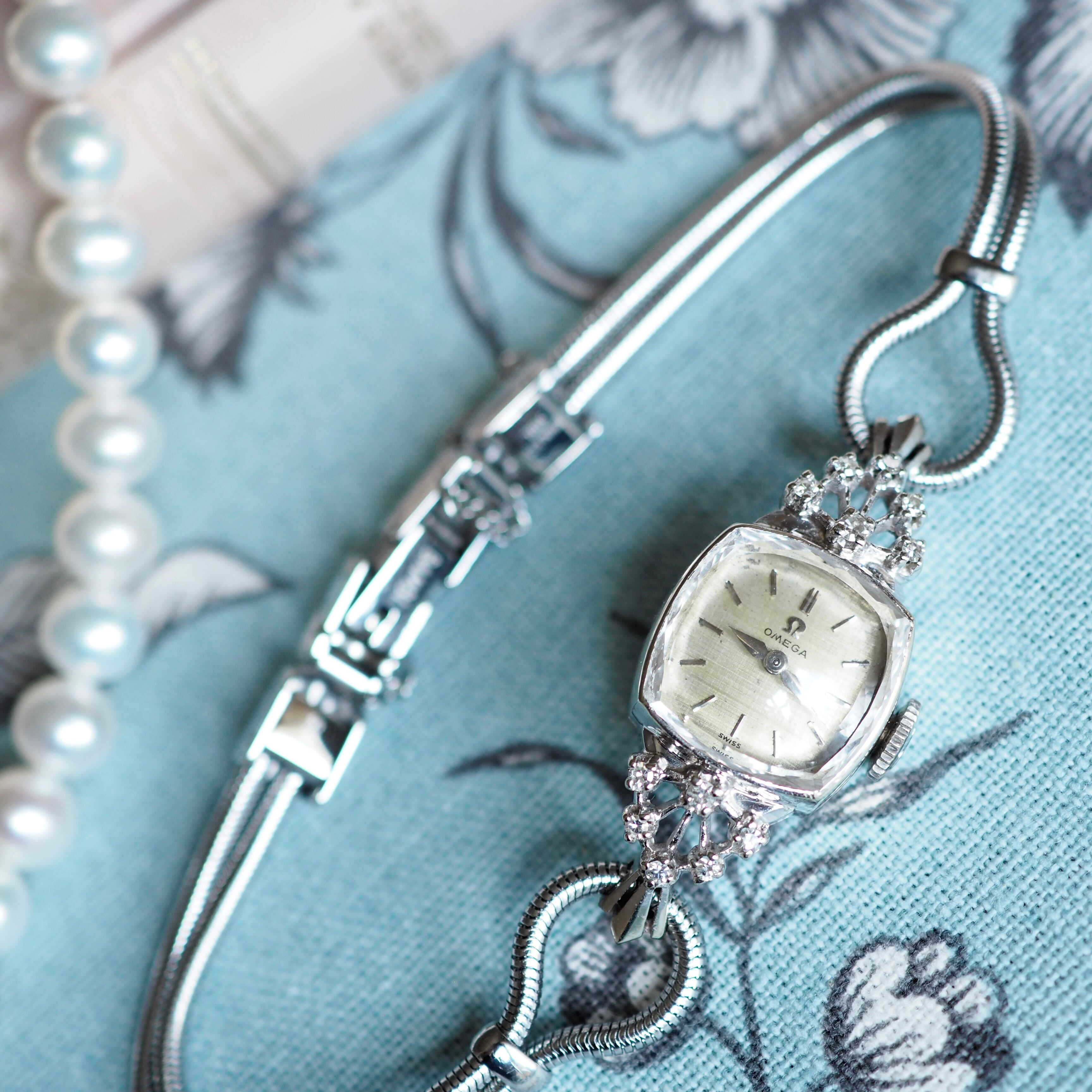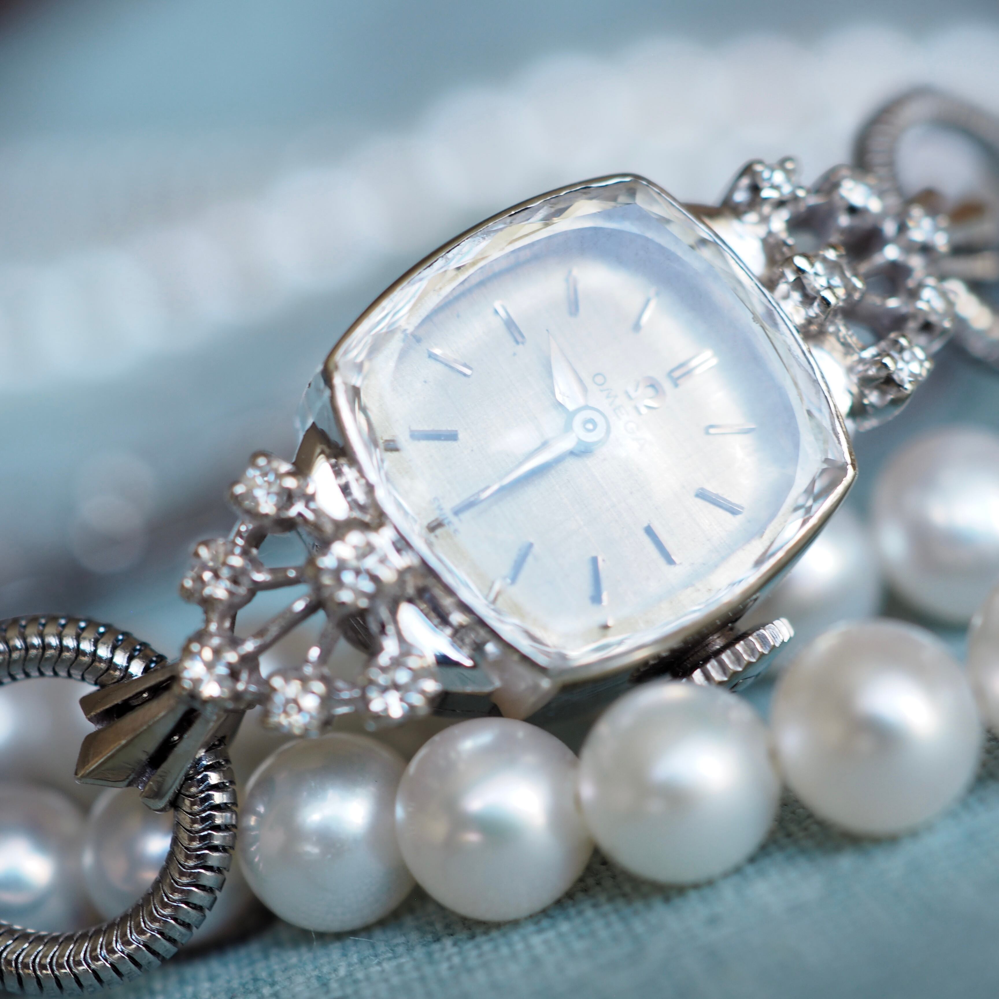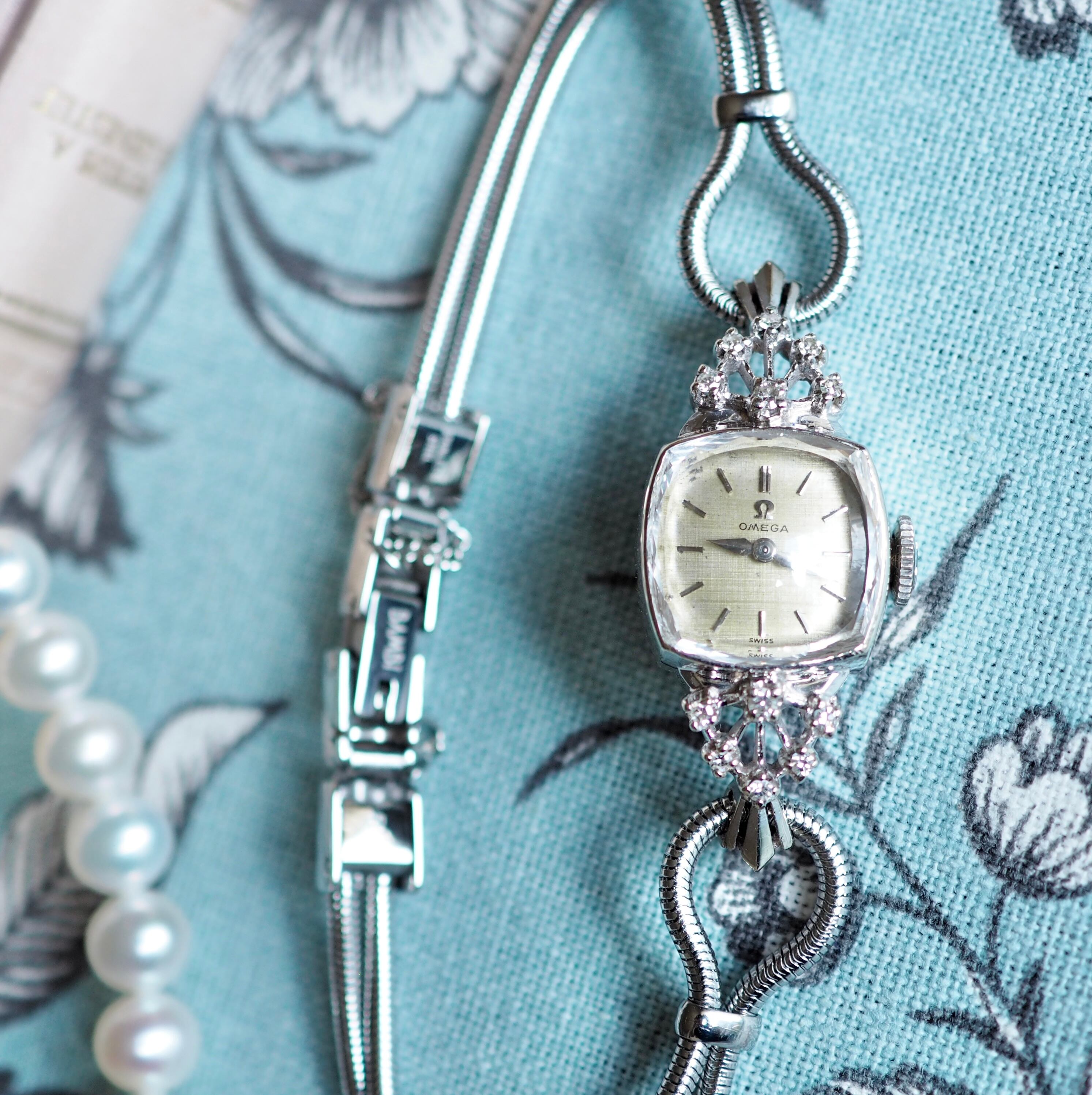 50年代のアンティーク・オメガのジュエリーウォッチです。細かい部分までの丁寧な作り込みに目を奪われる高級感のある逸品です。