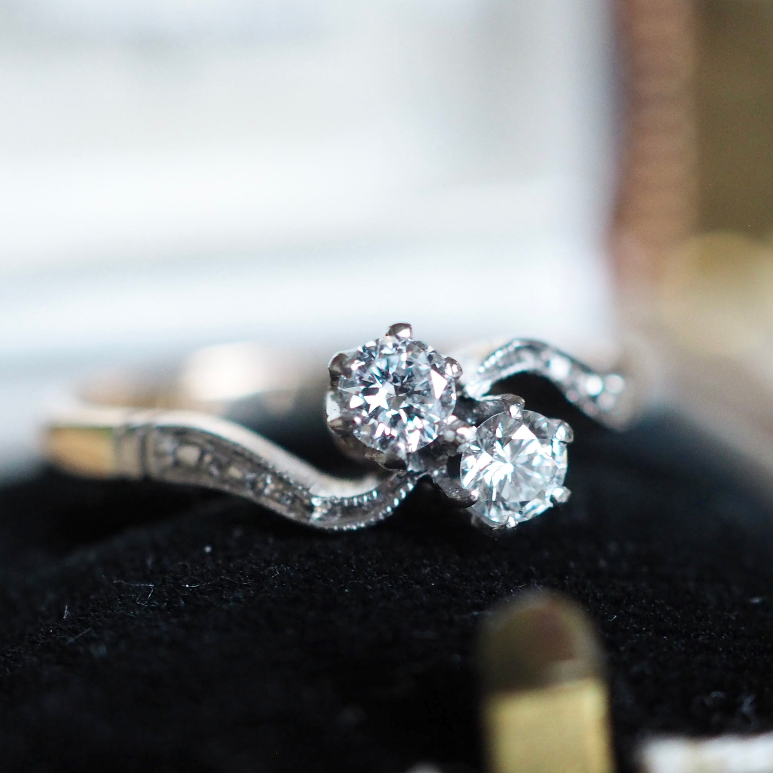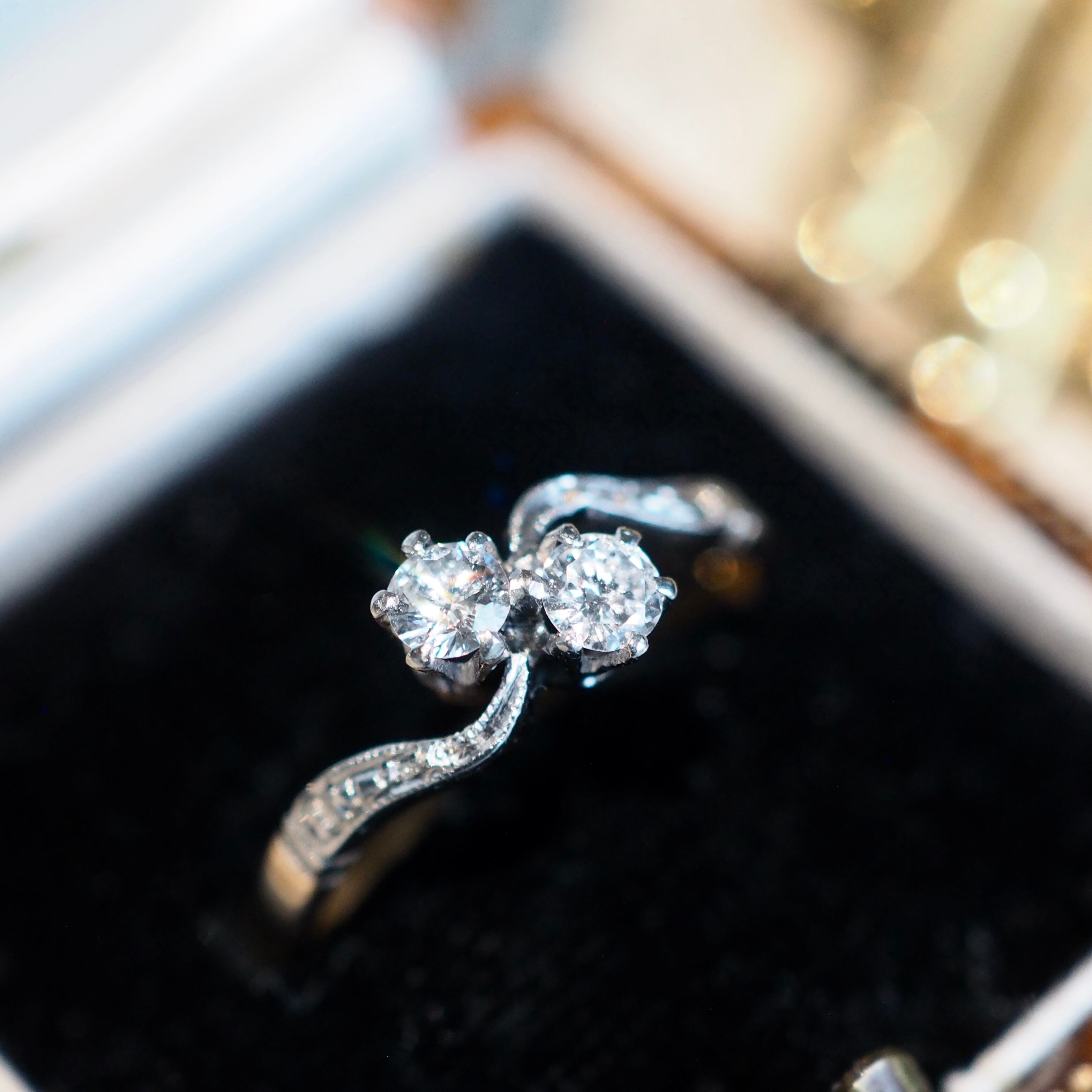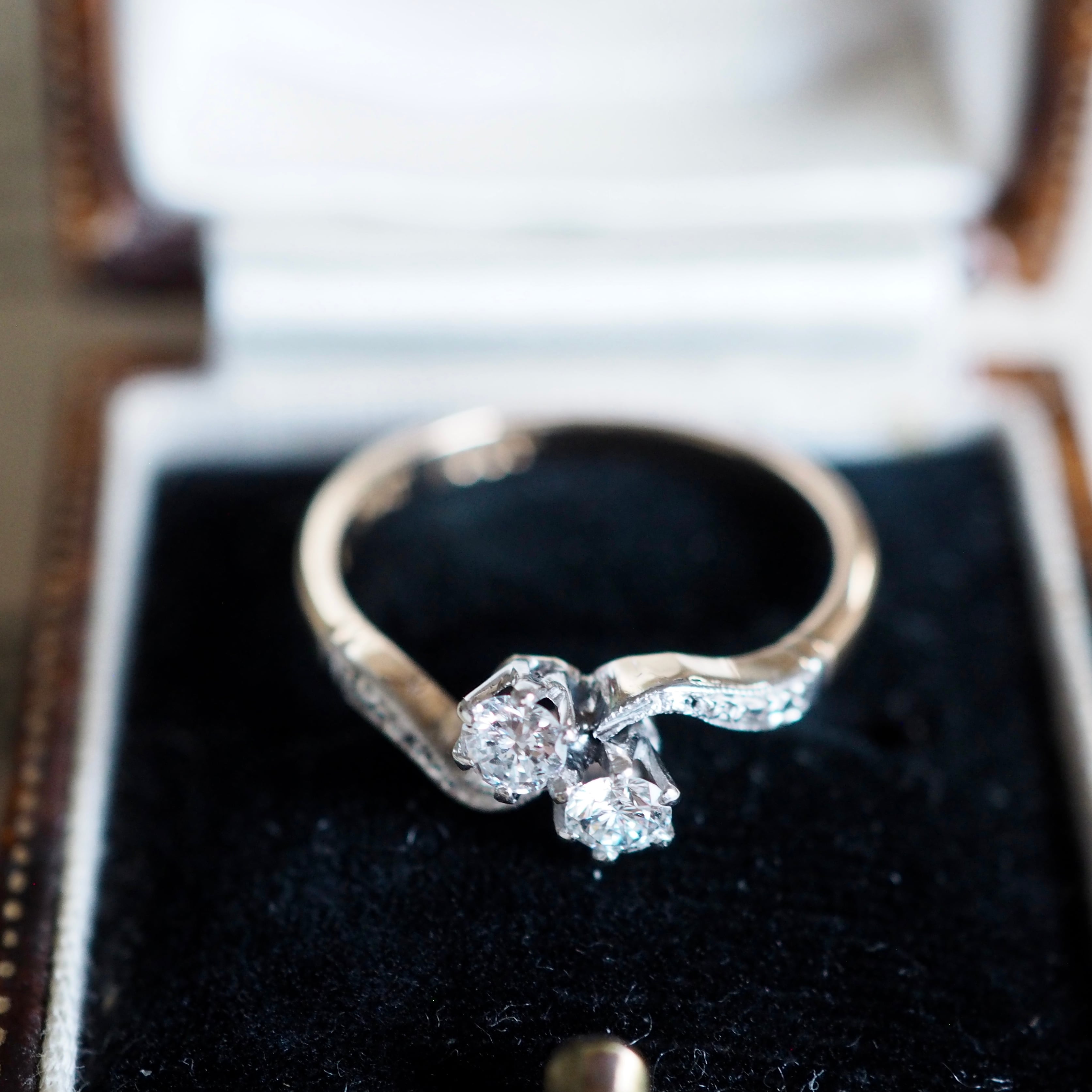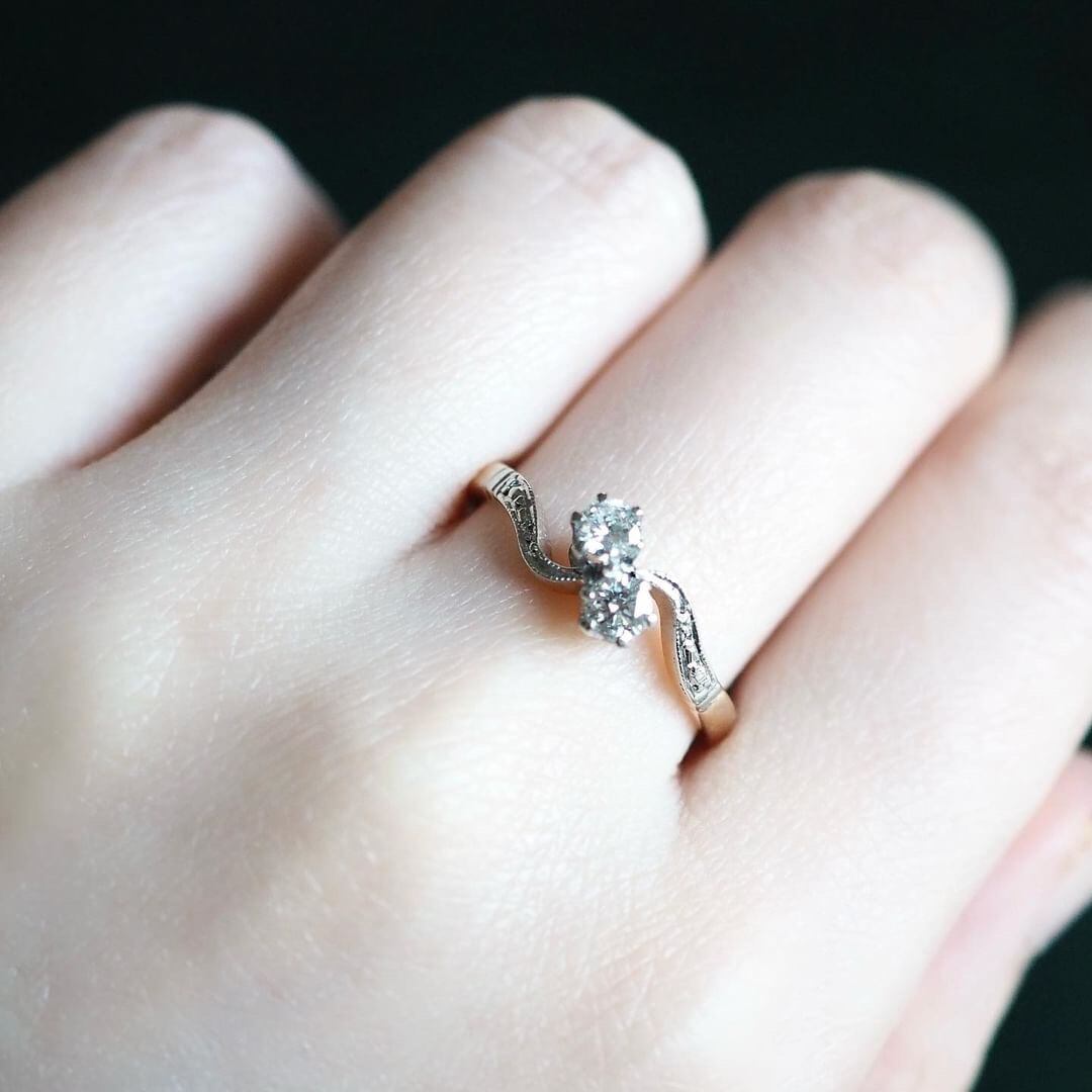フランス語でtoi et moi「あなたと私」を意味する2つの宝石が隣り合った配置のリング。
