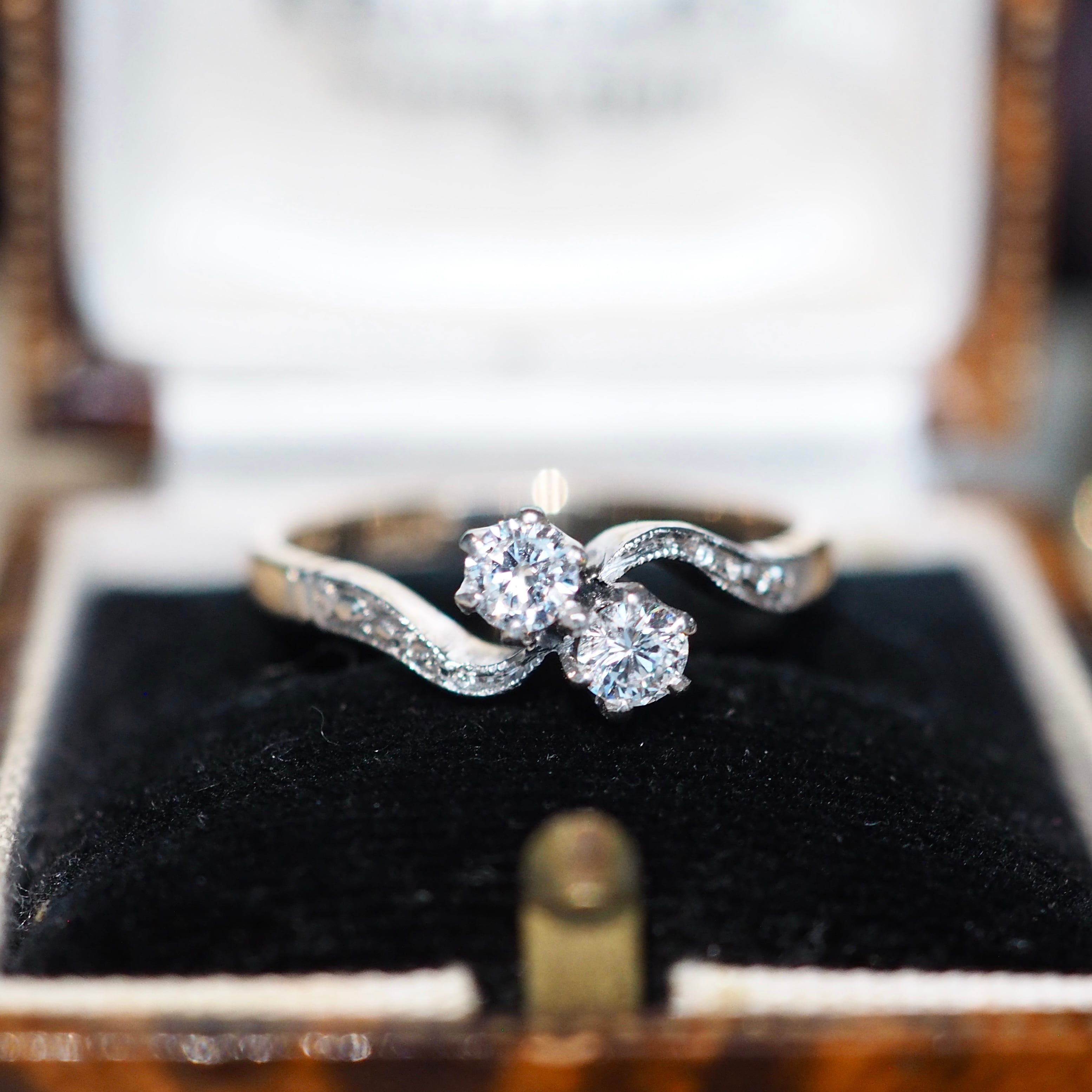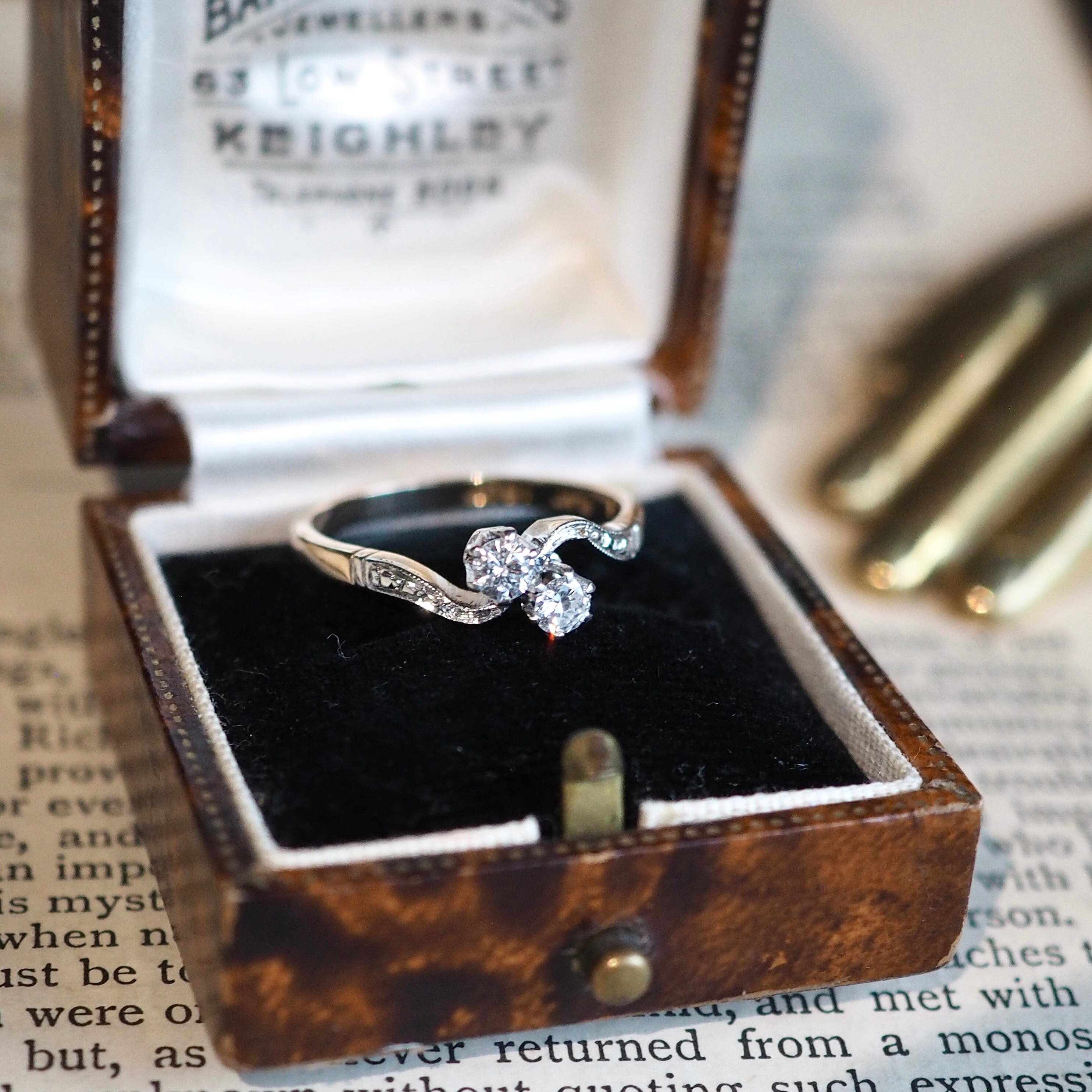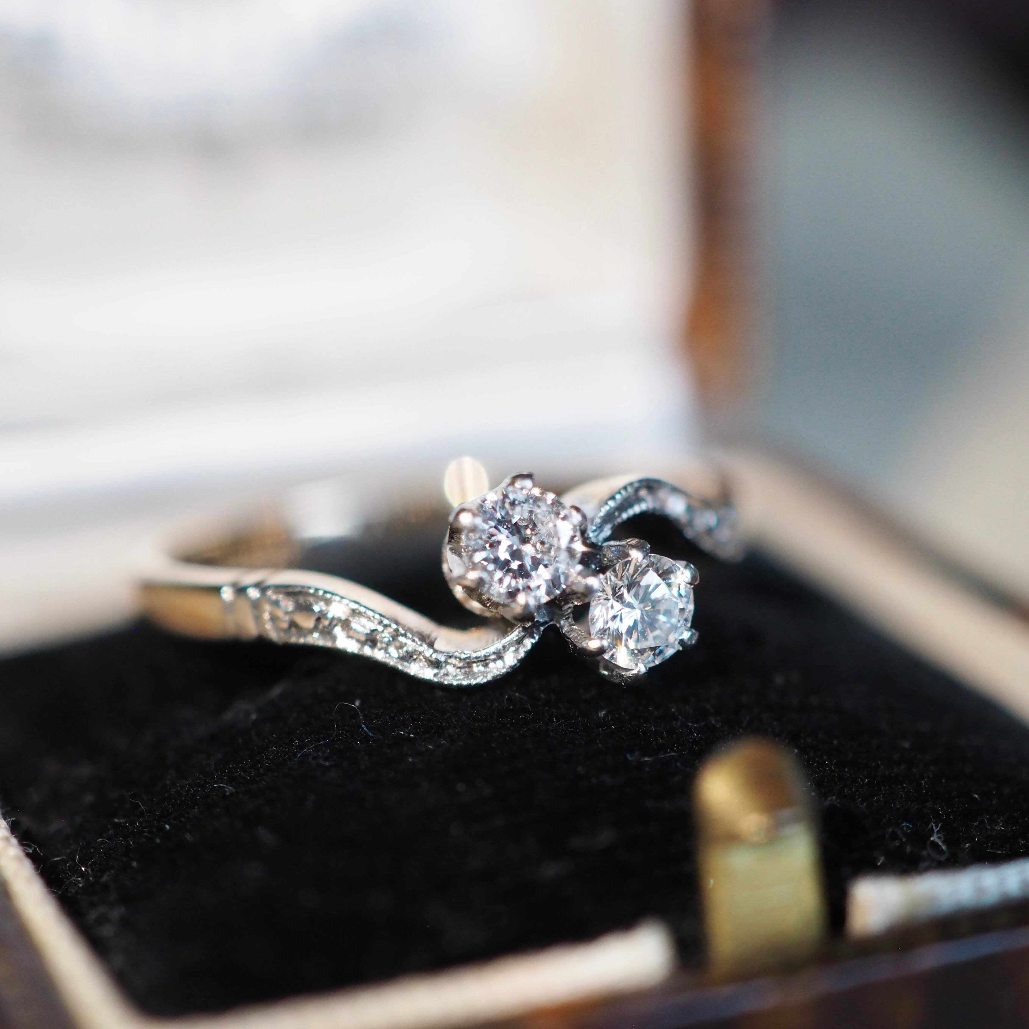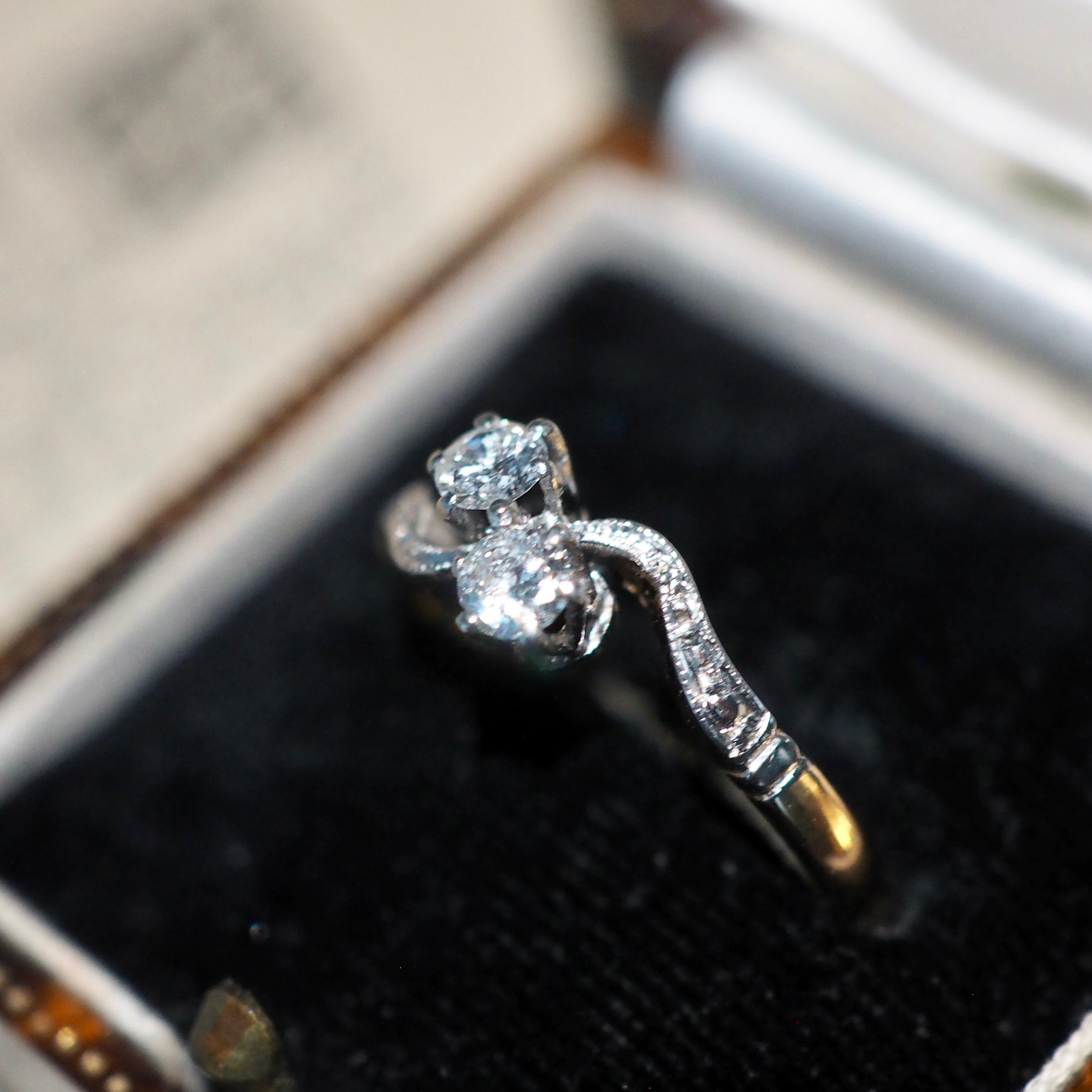 フランス語でtoi et moi「あなたと私」を意味する2つの宝石が隣り合った配置のリング。