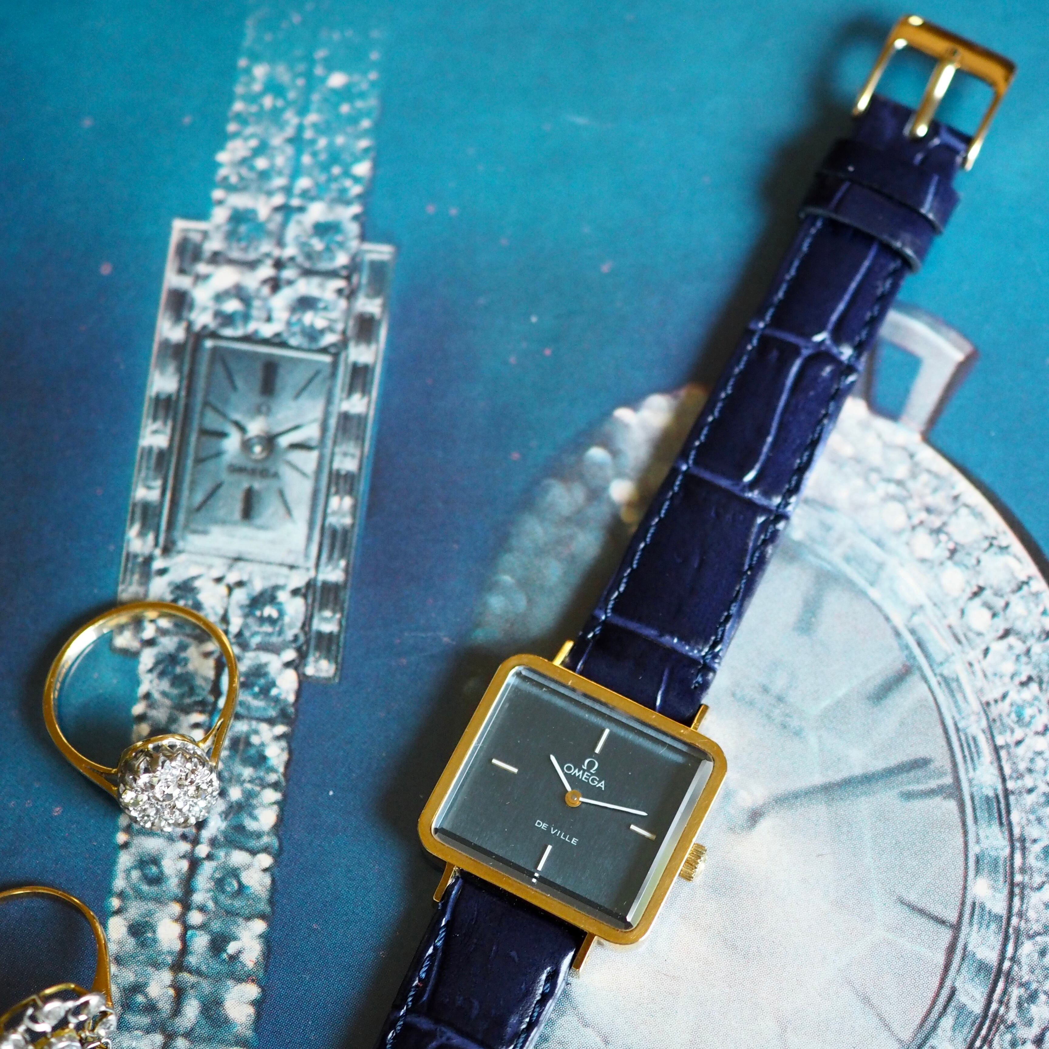 OMEGA オメガ グリマデザイン サファイアカットガラス アンティーク時計