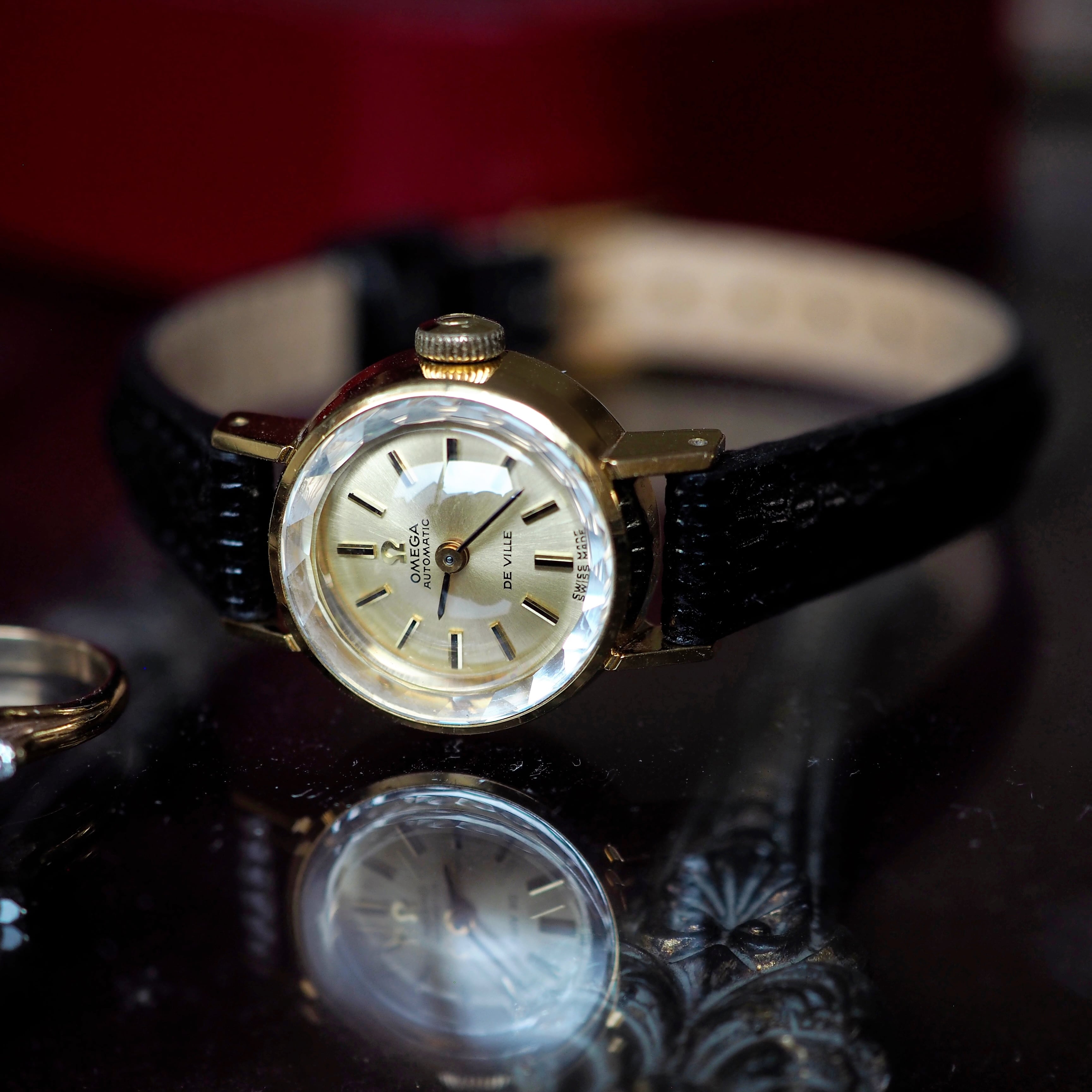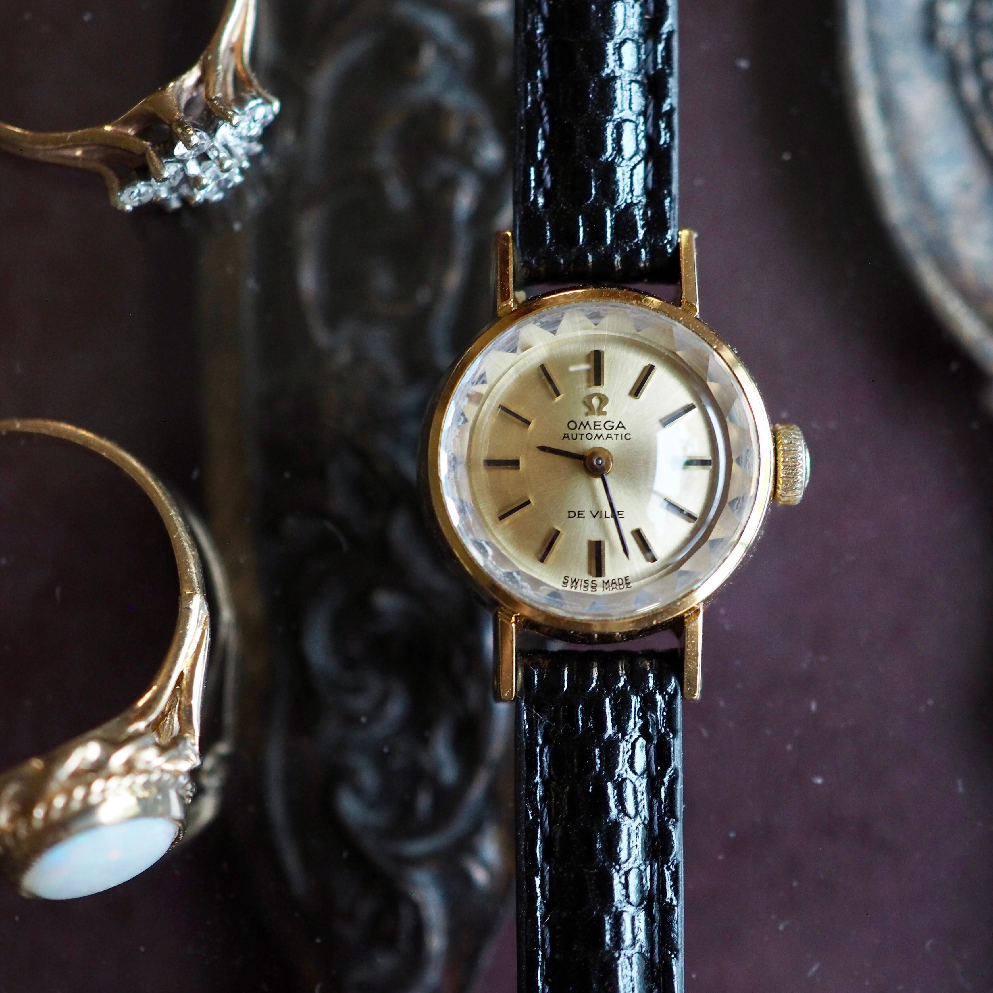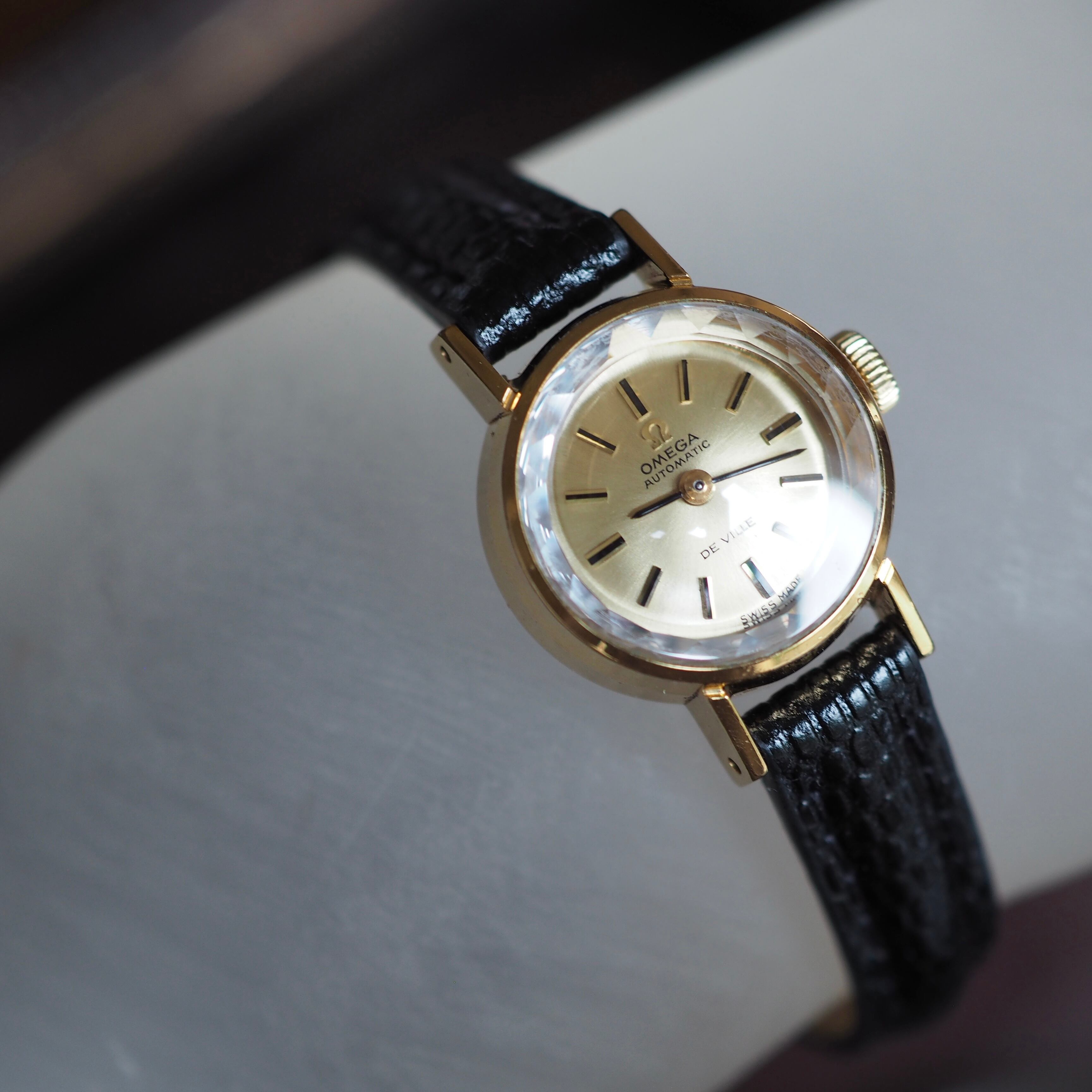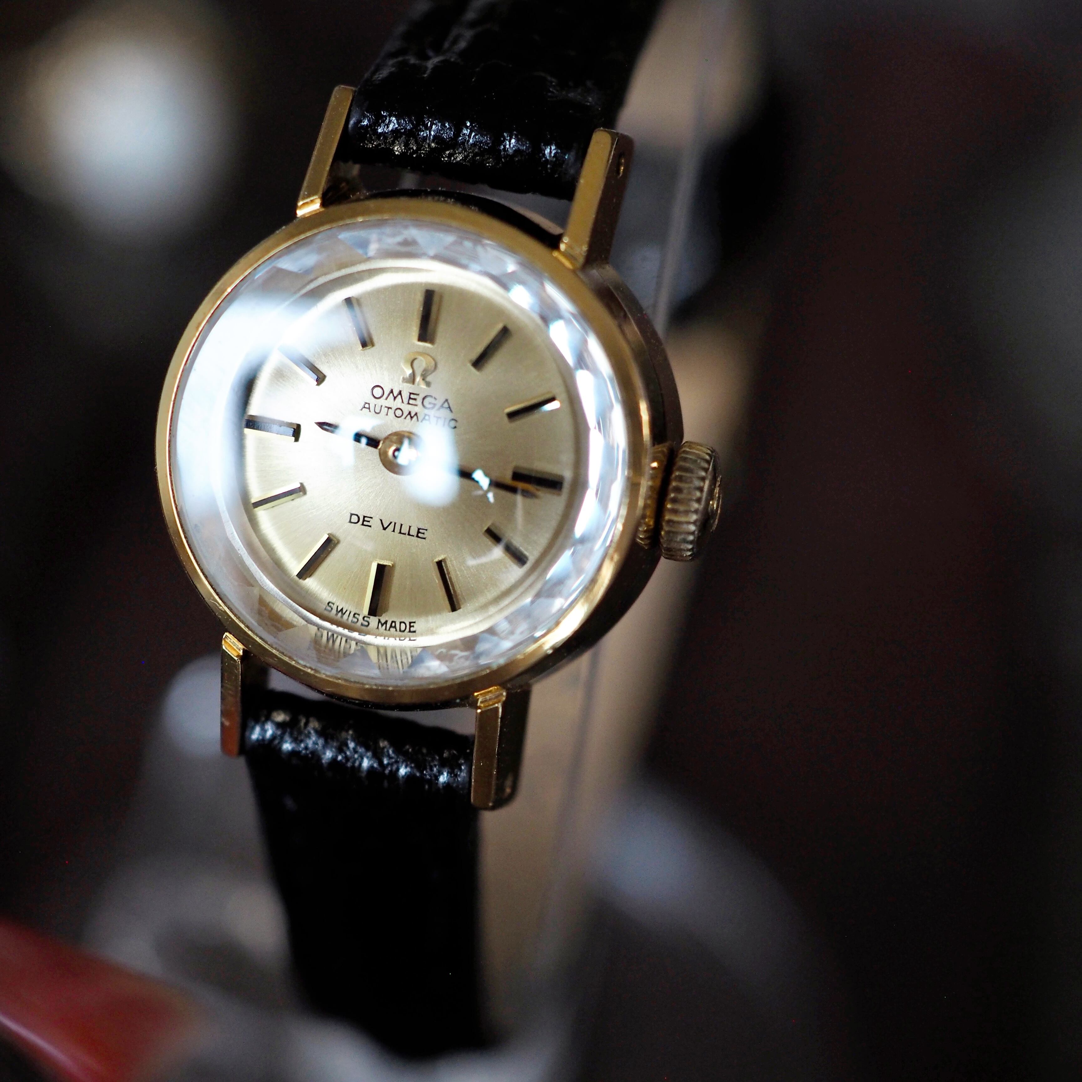 OH済 OMEGA オメガ deville 自動巻 ゴールドカットガラス アンティーク時計