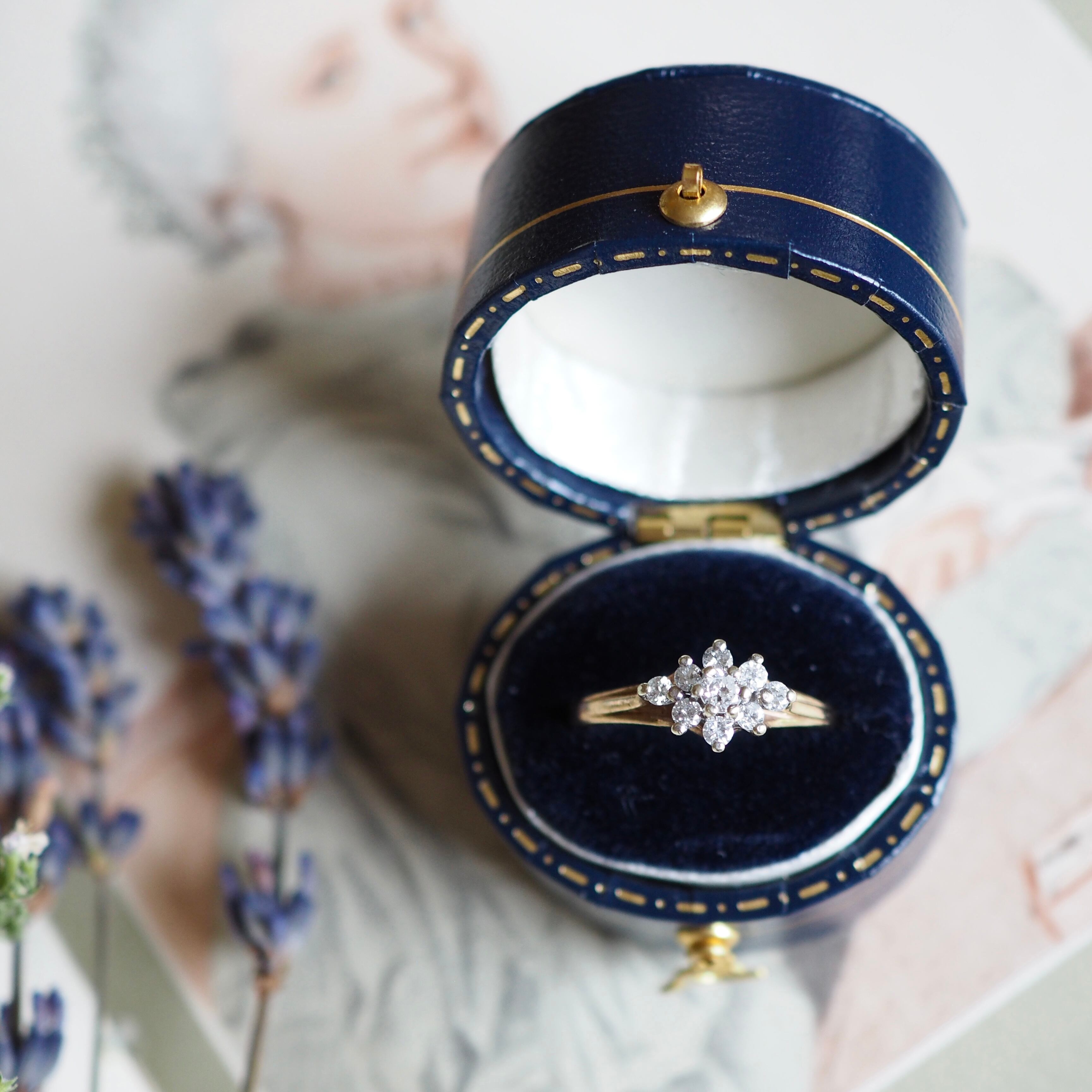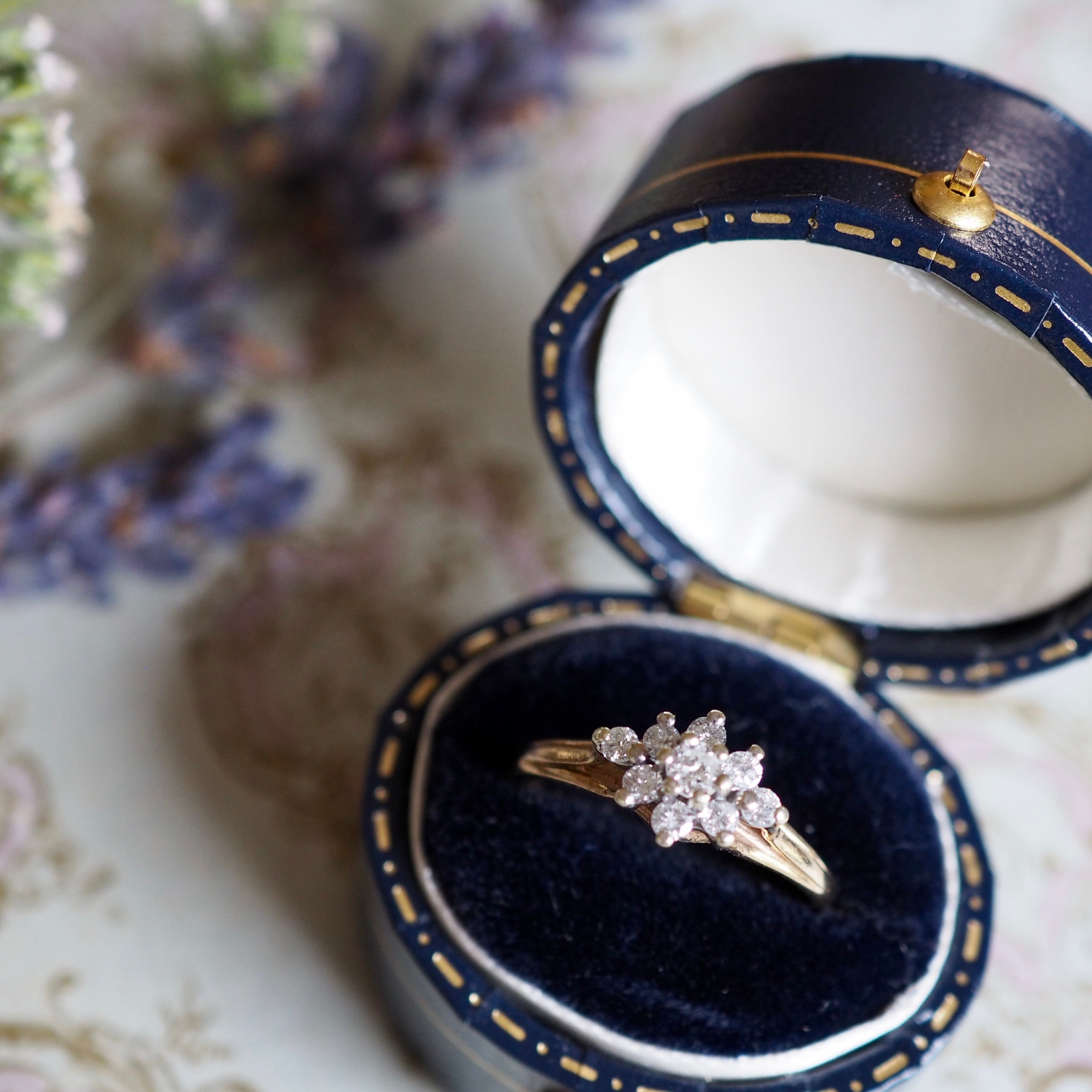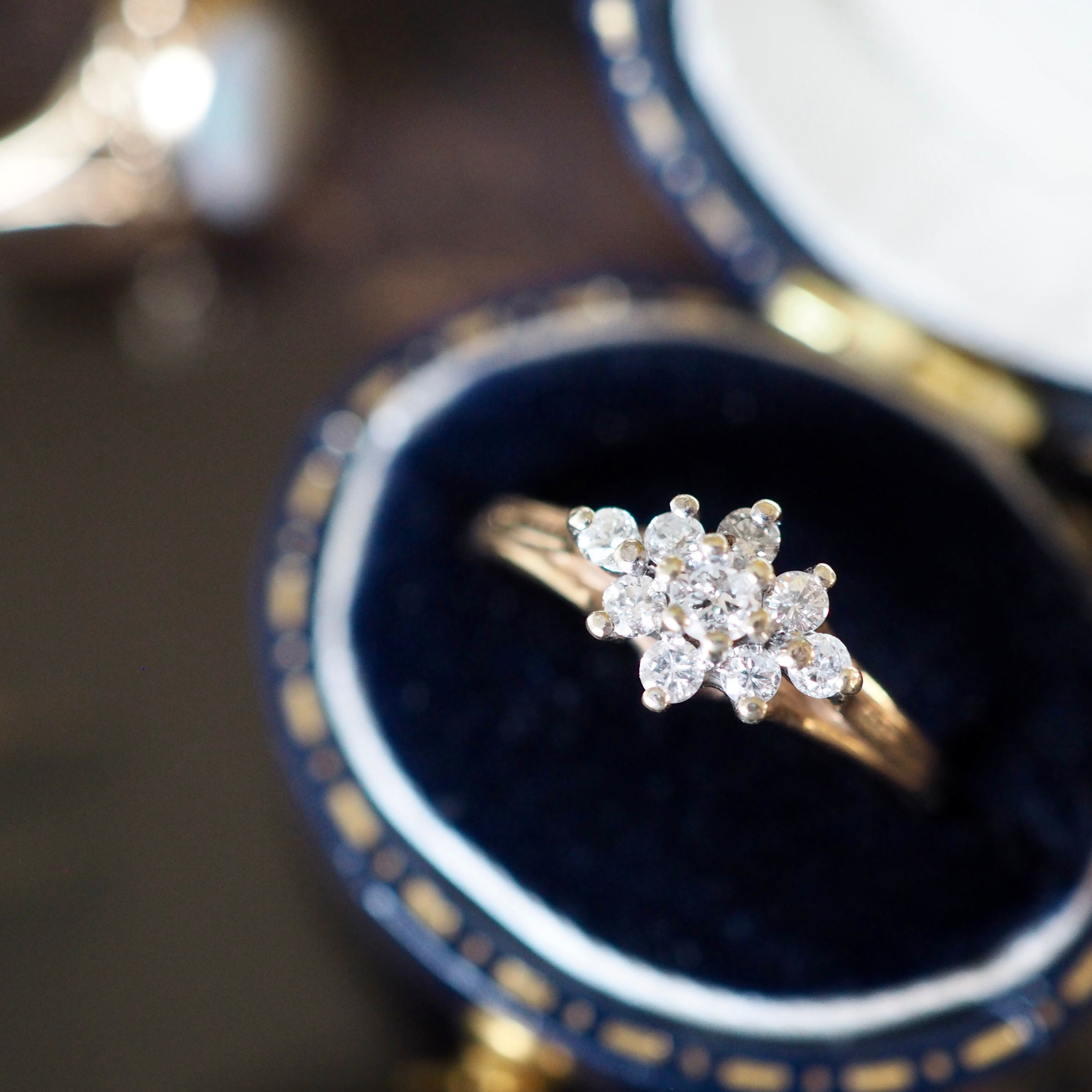 イギリス ヴィンテージ ダイヤモンド クラスターリング 英国 指輪