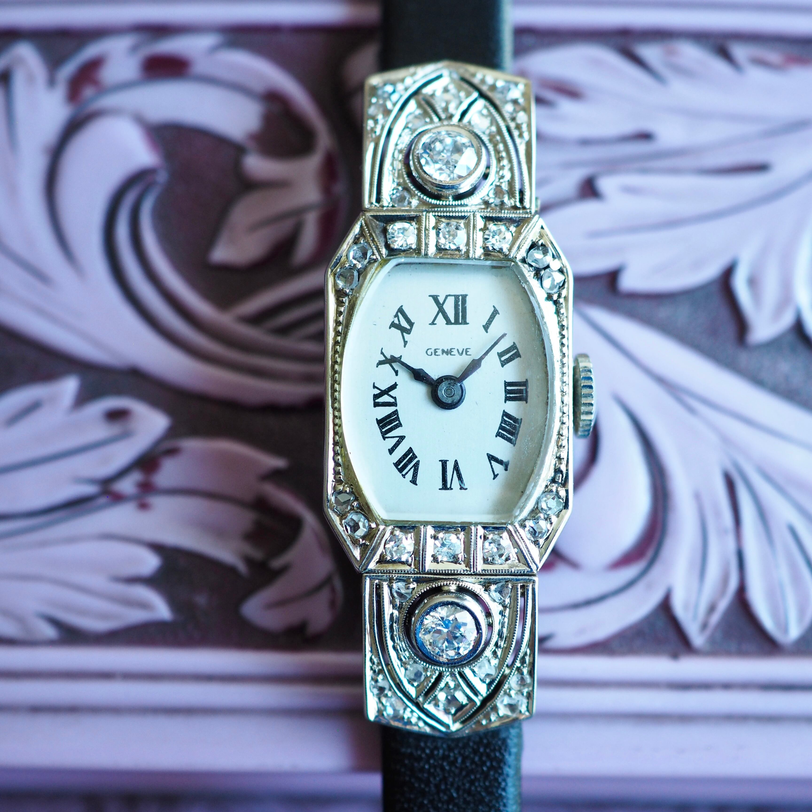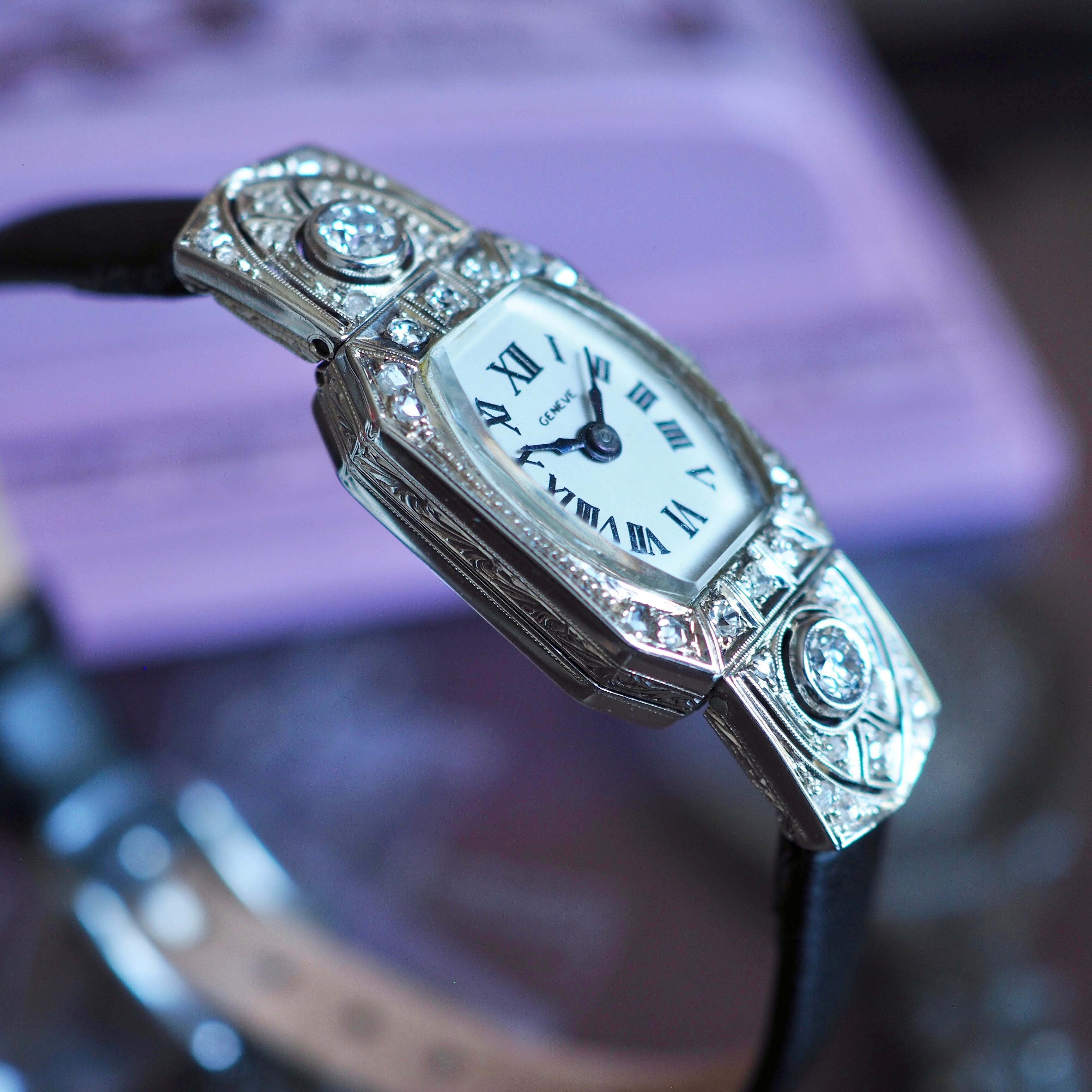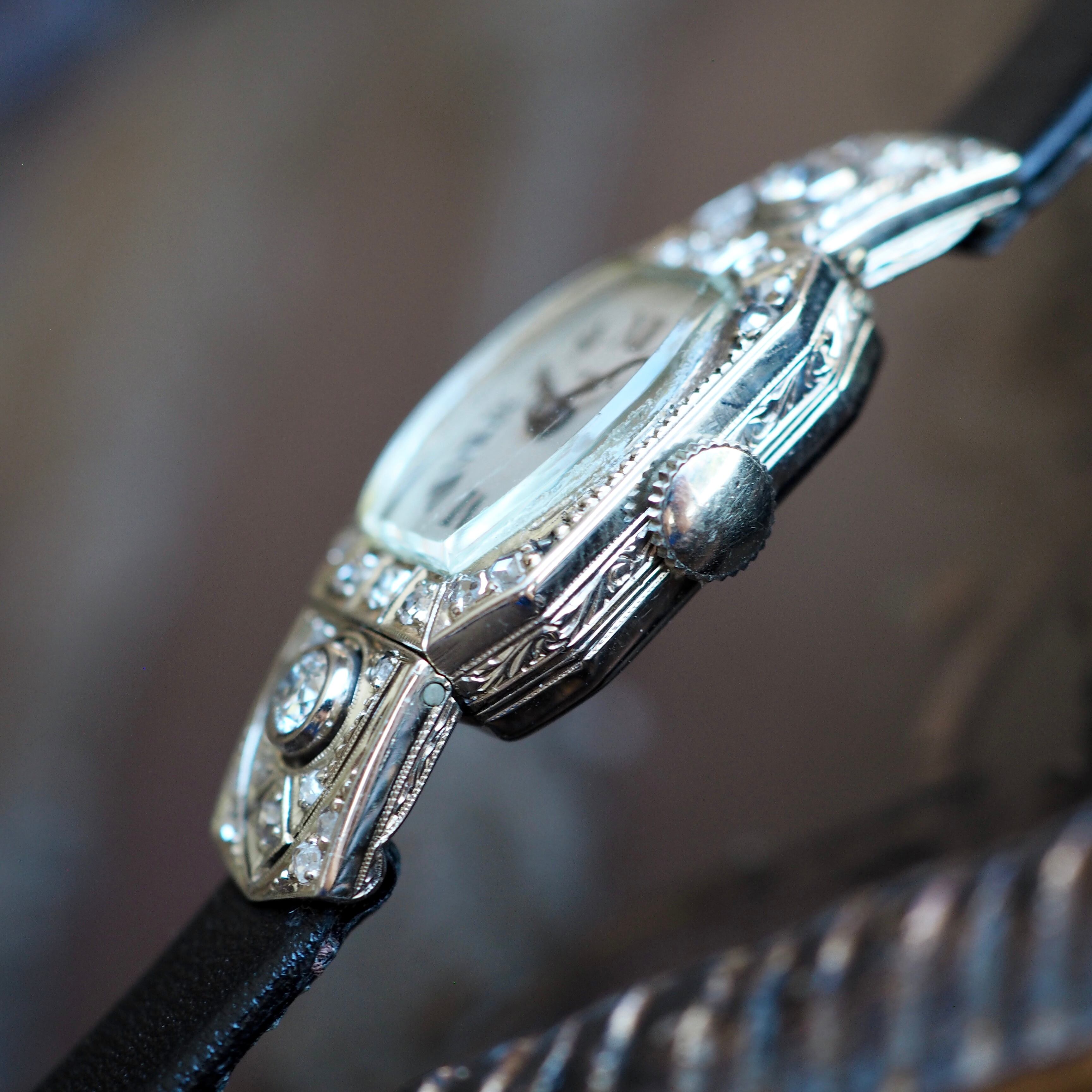 美しい模様のエングレービングがほどこされたケースなどアールデコ期にしかない凝りに凝ったデザインは目を見張るものがあり当時の職人技が光ります。