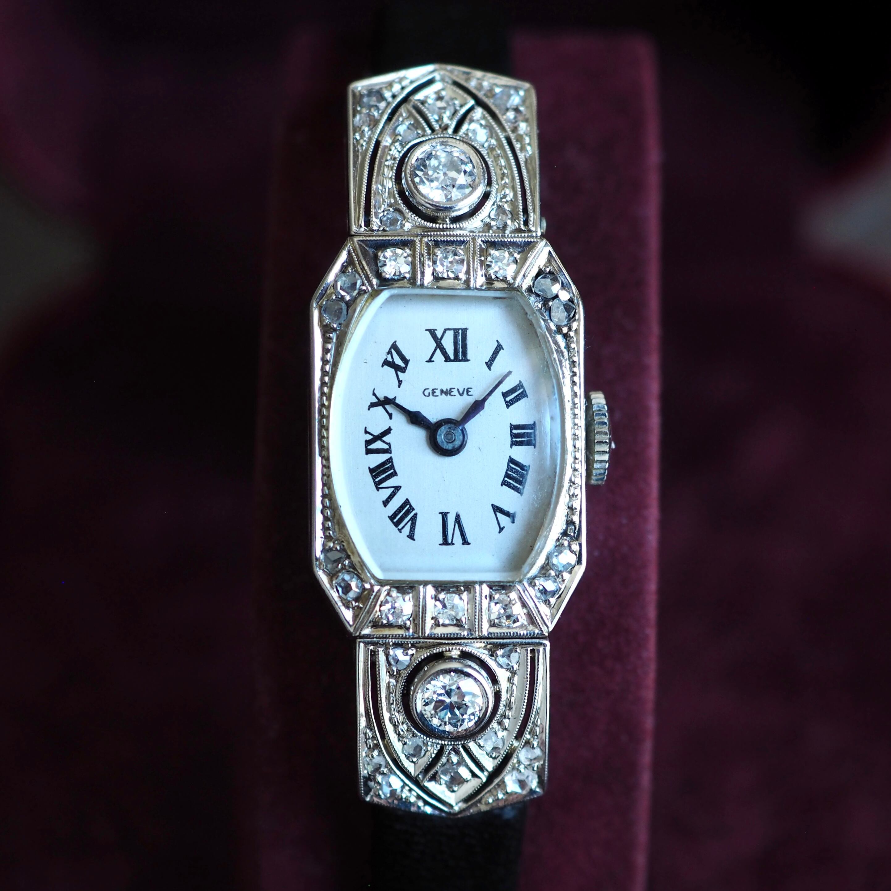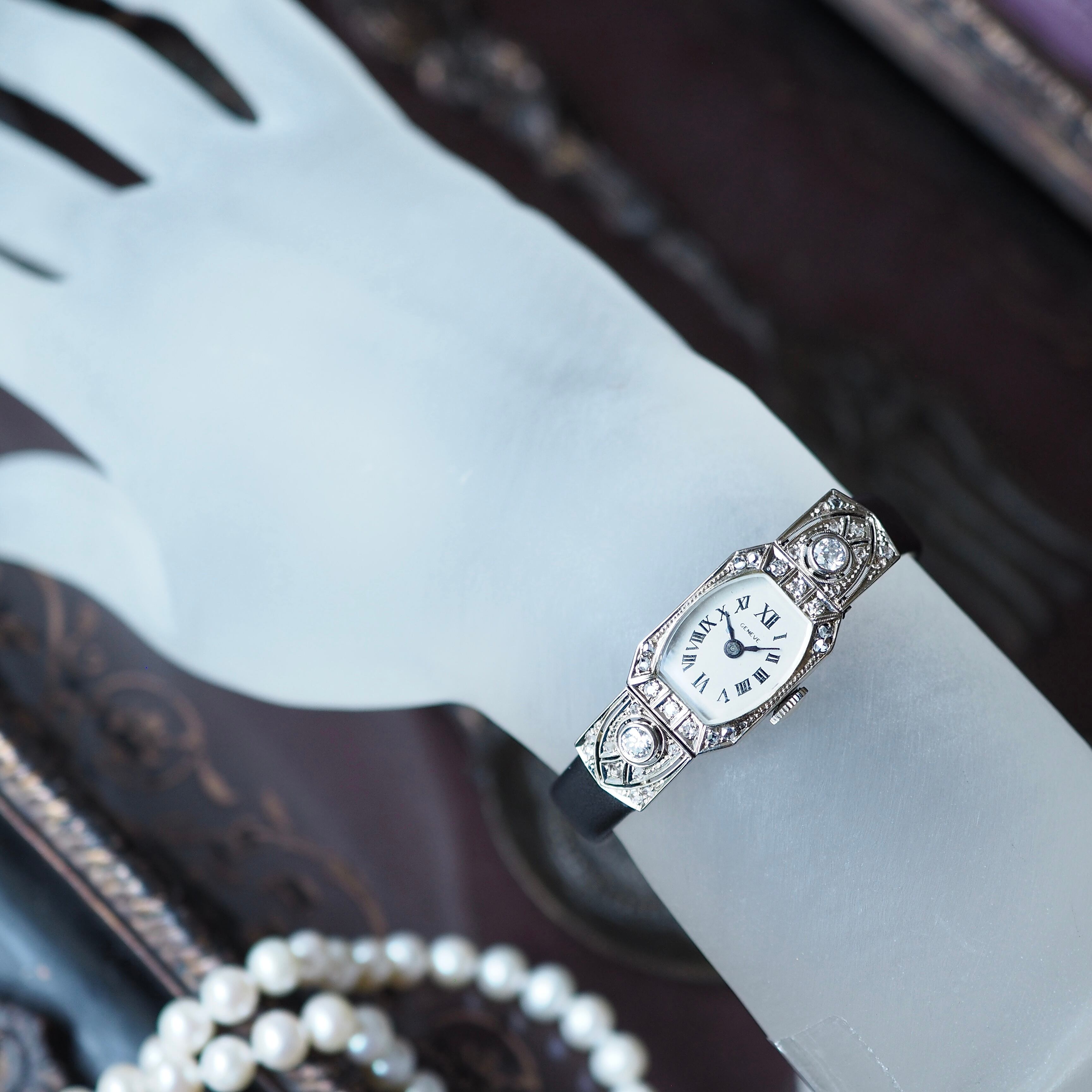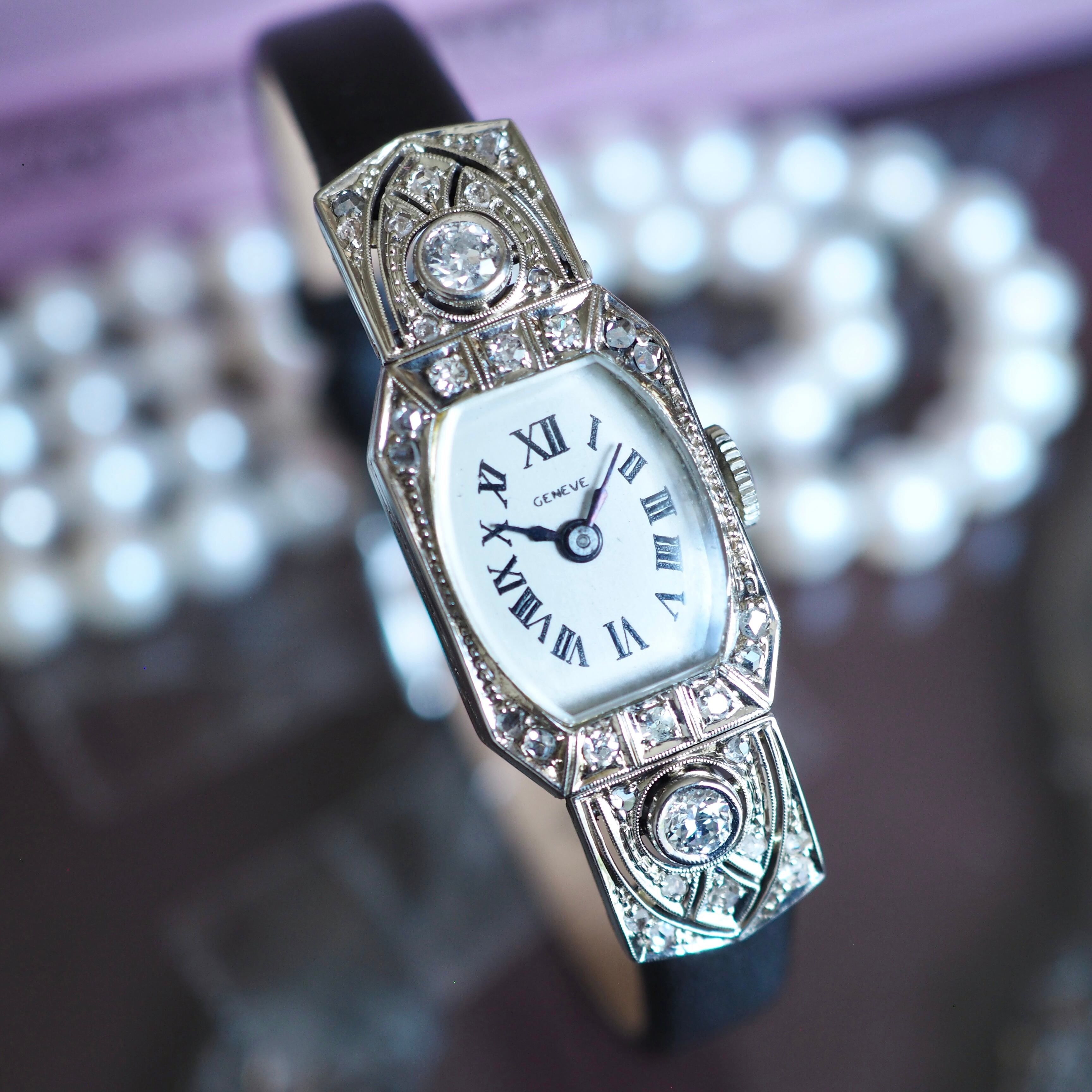 美しい模様のエングレービングがほどこされたケースなどアールデコ期にしかない凝りに凝ったデザインは目を見張るものがあり当時の職人技が光ります。