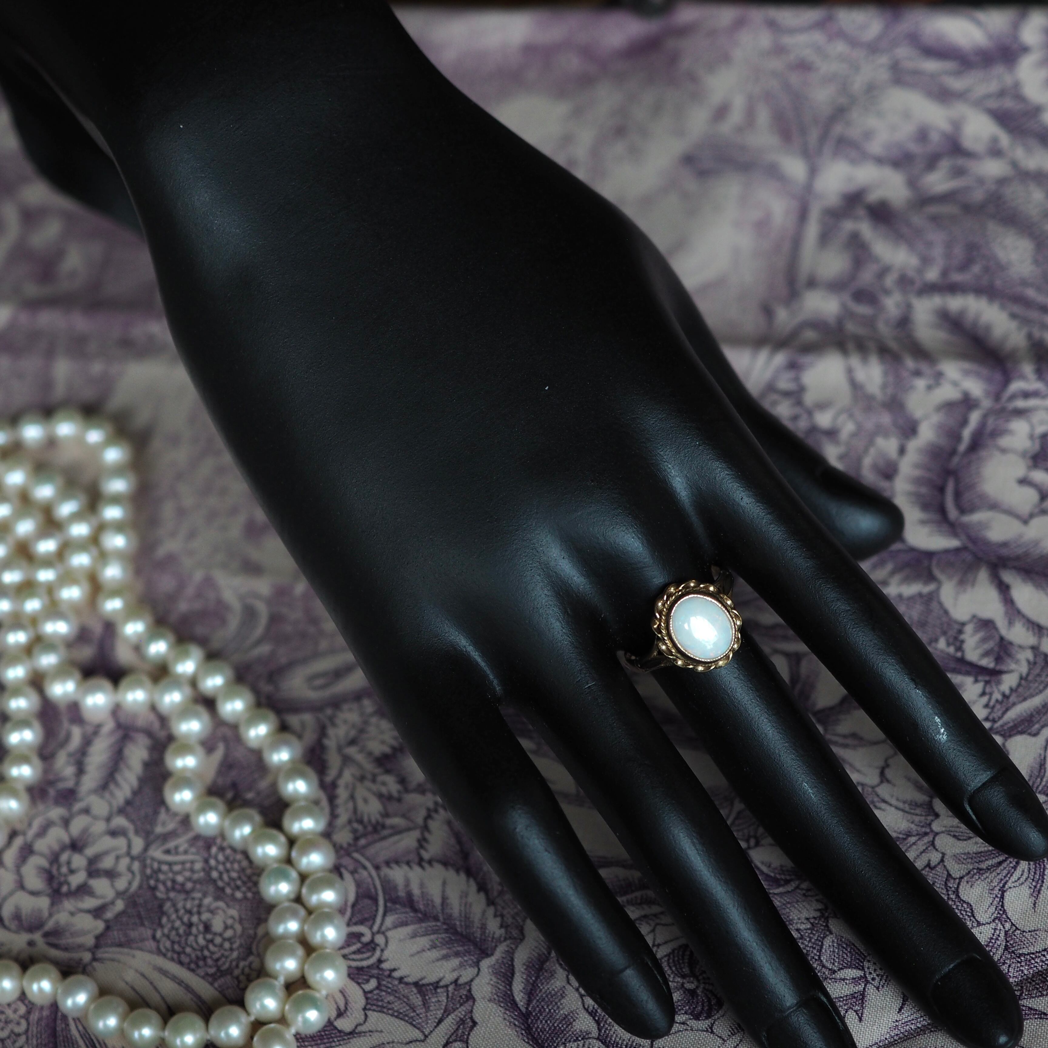 石を覆っているベゼルは二重にツイストされ、クラシカルで可愛らしい雰囲気のヴィンテージリングです。