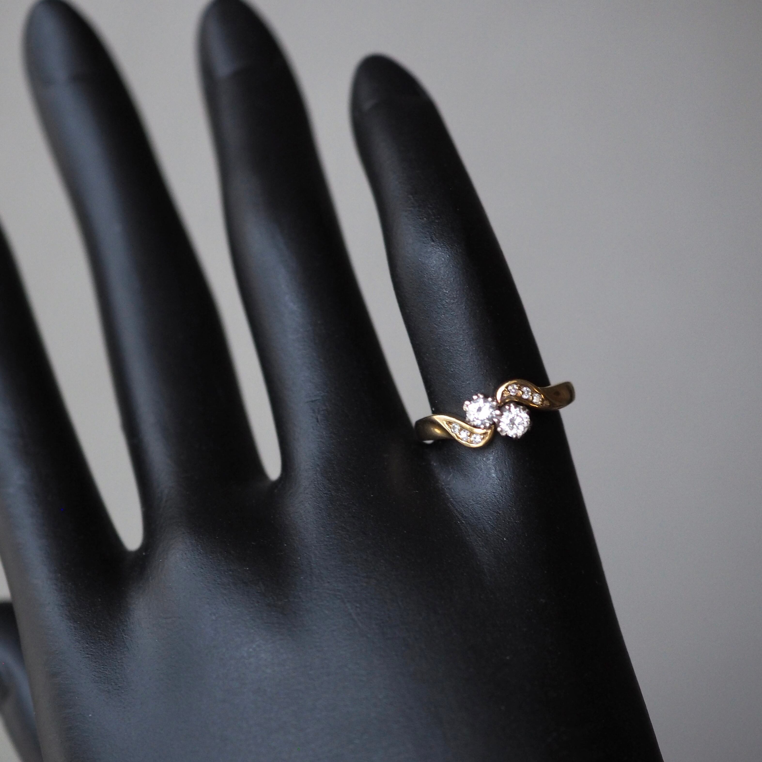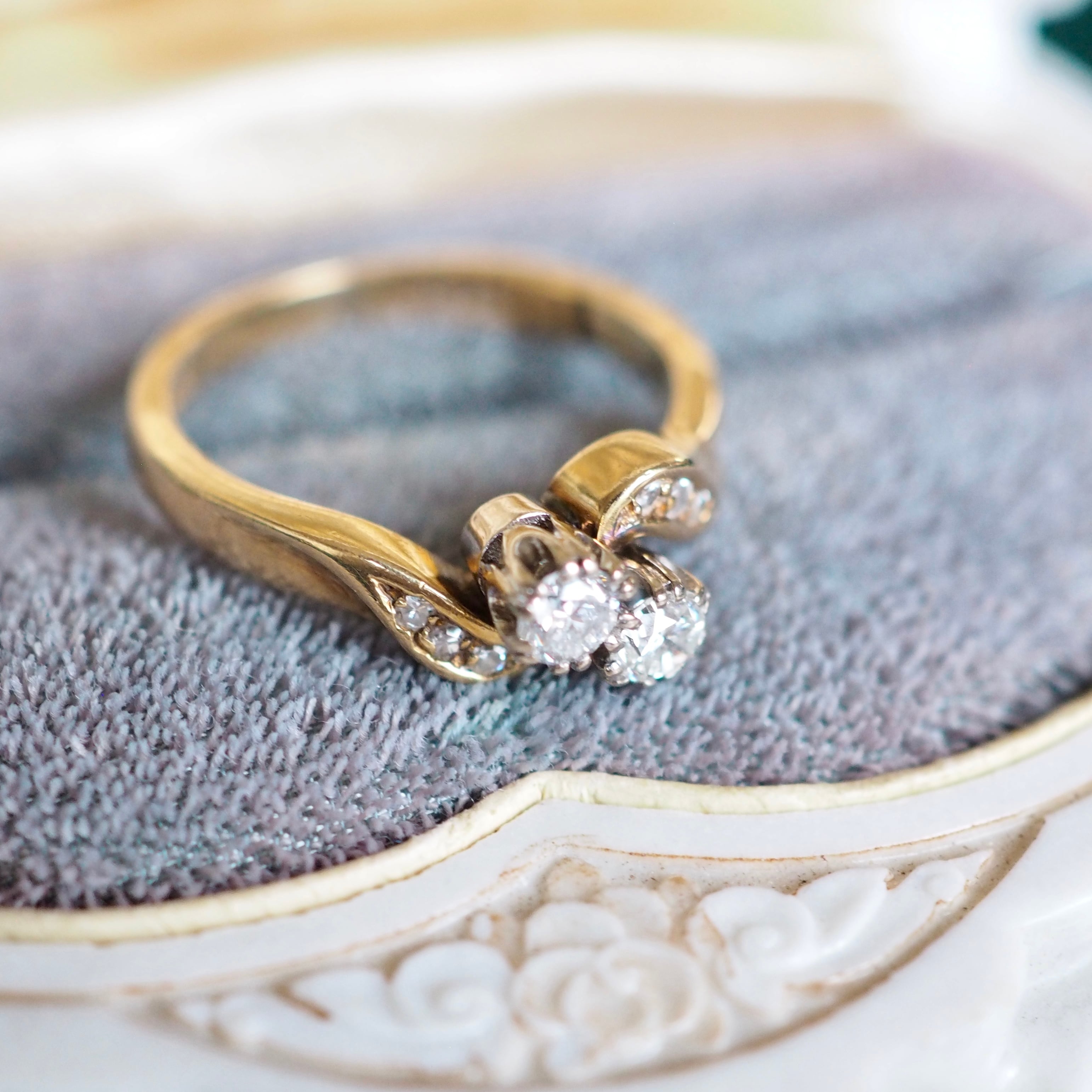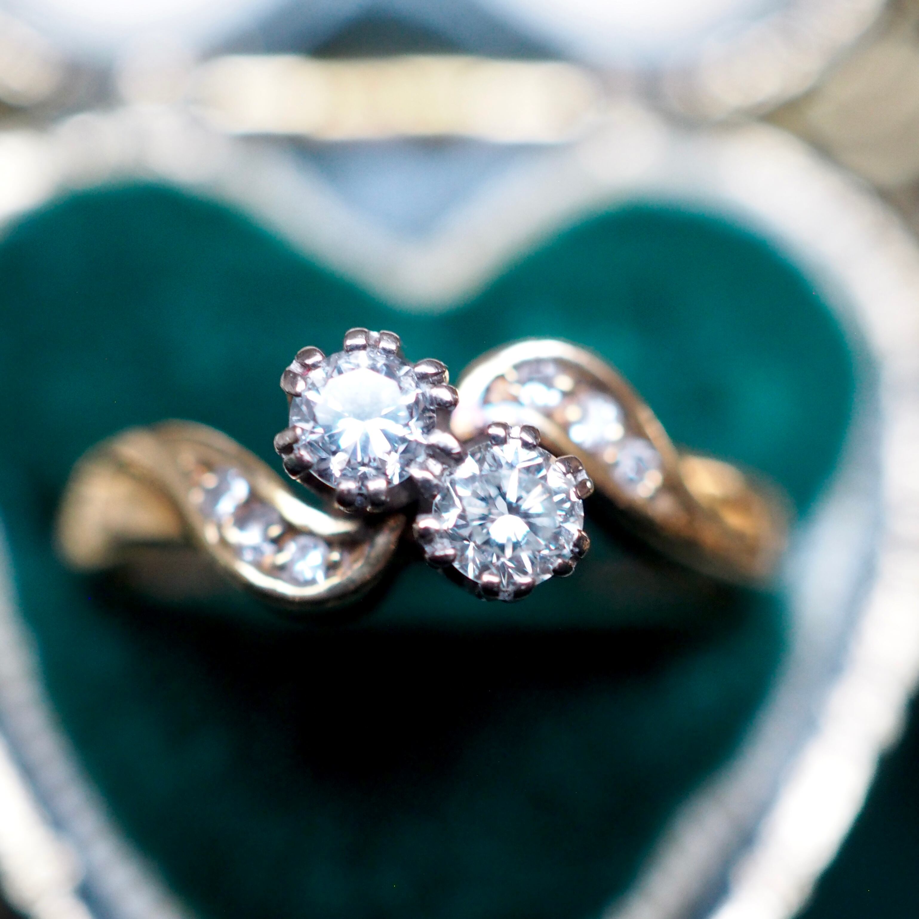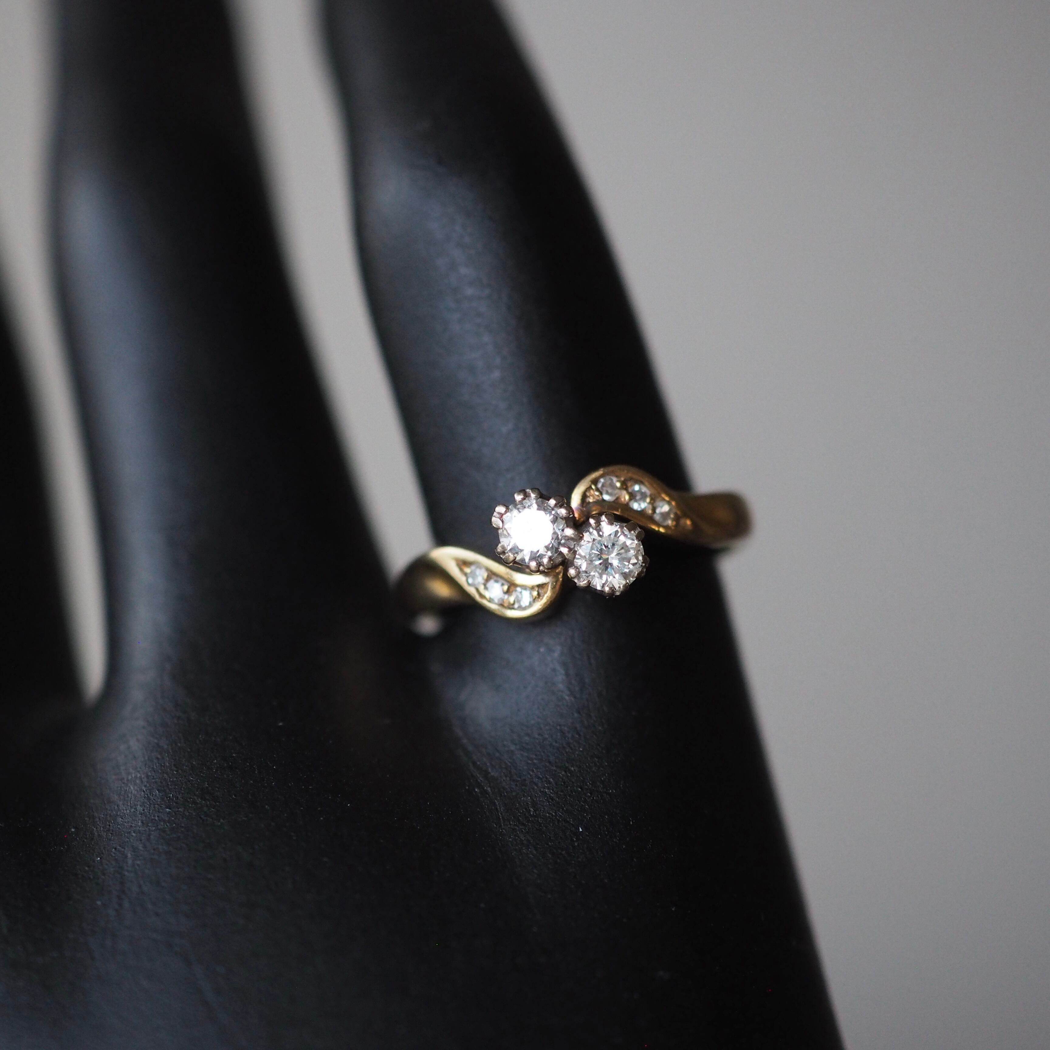 フランス語でtoi et moi「あなたと私」を意味する2つの宝石が隣り合った配置のリング。