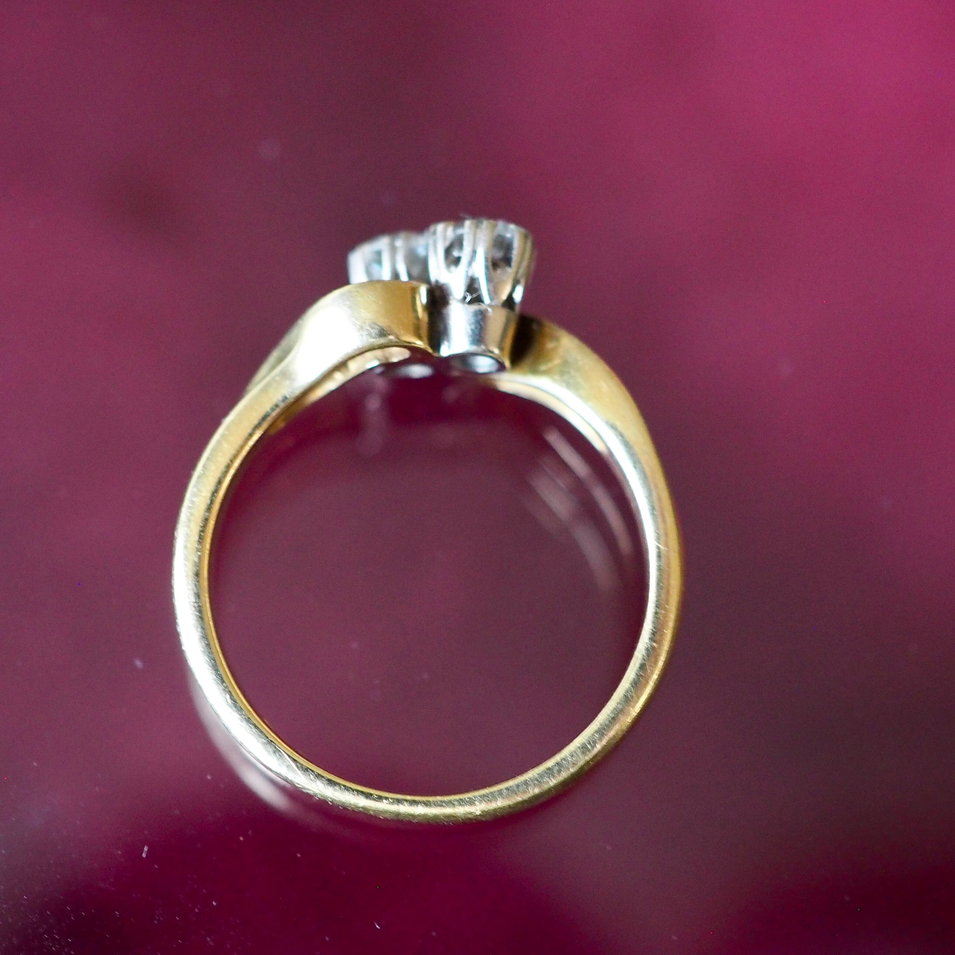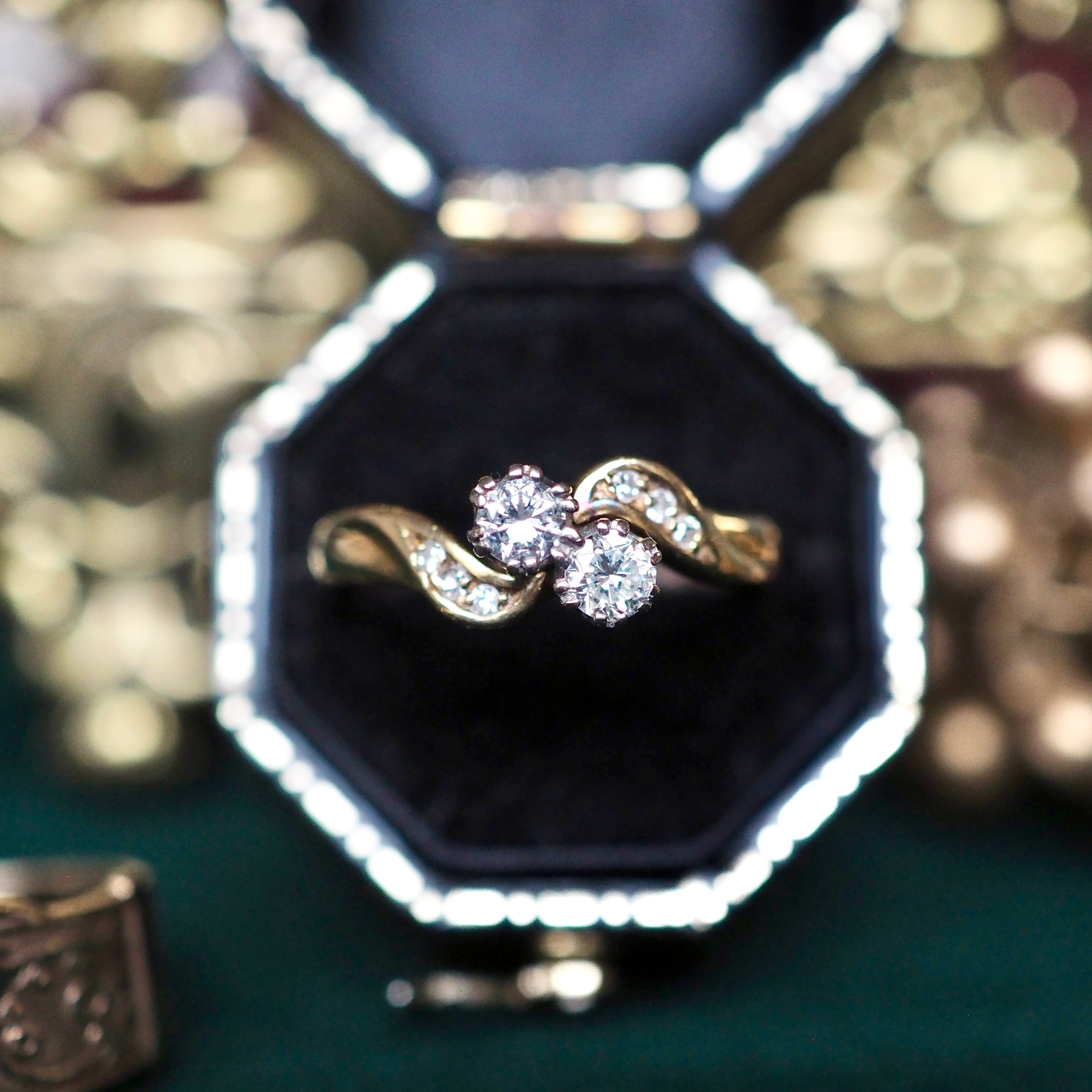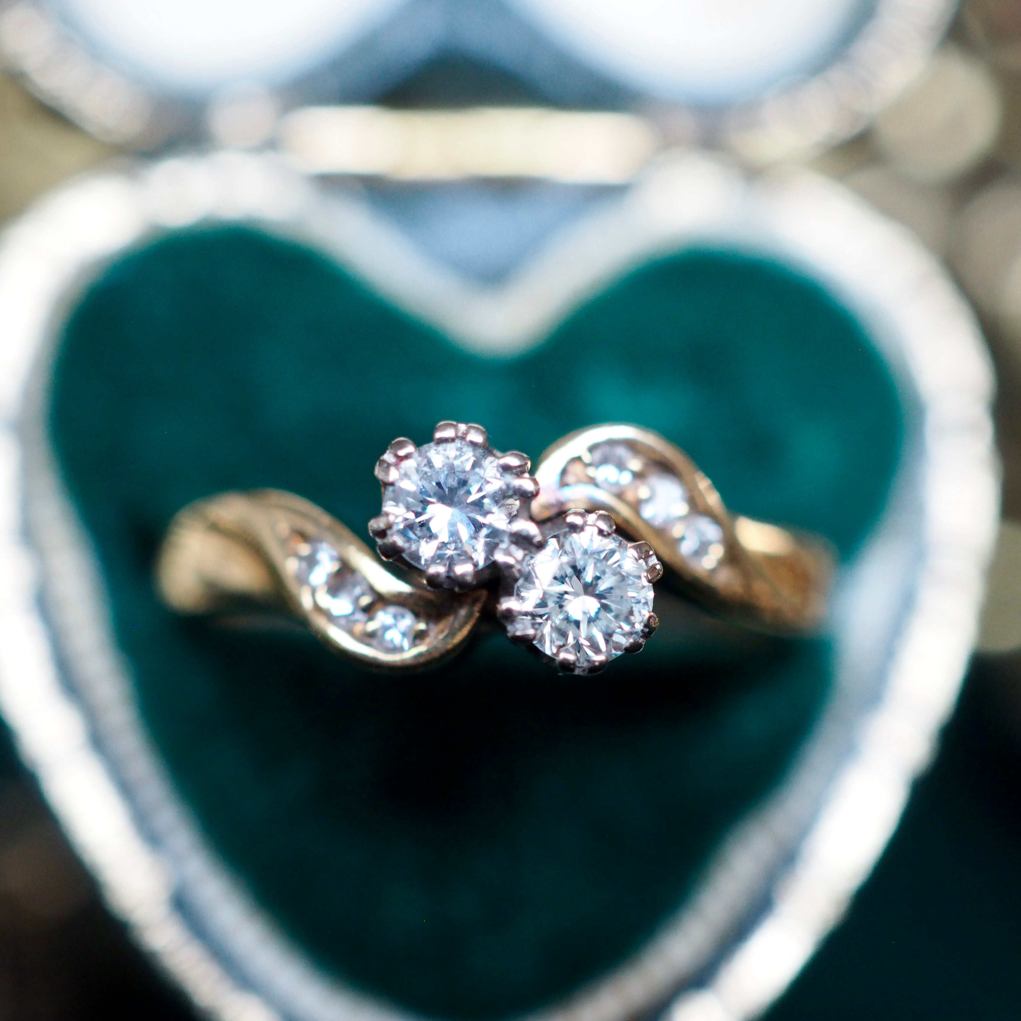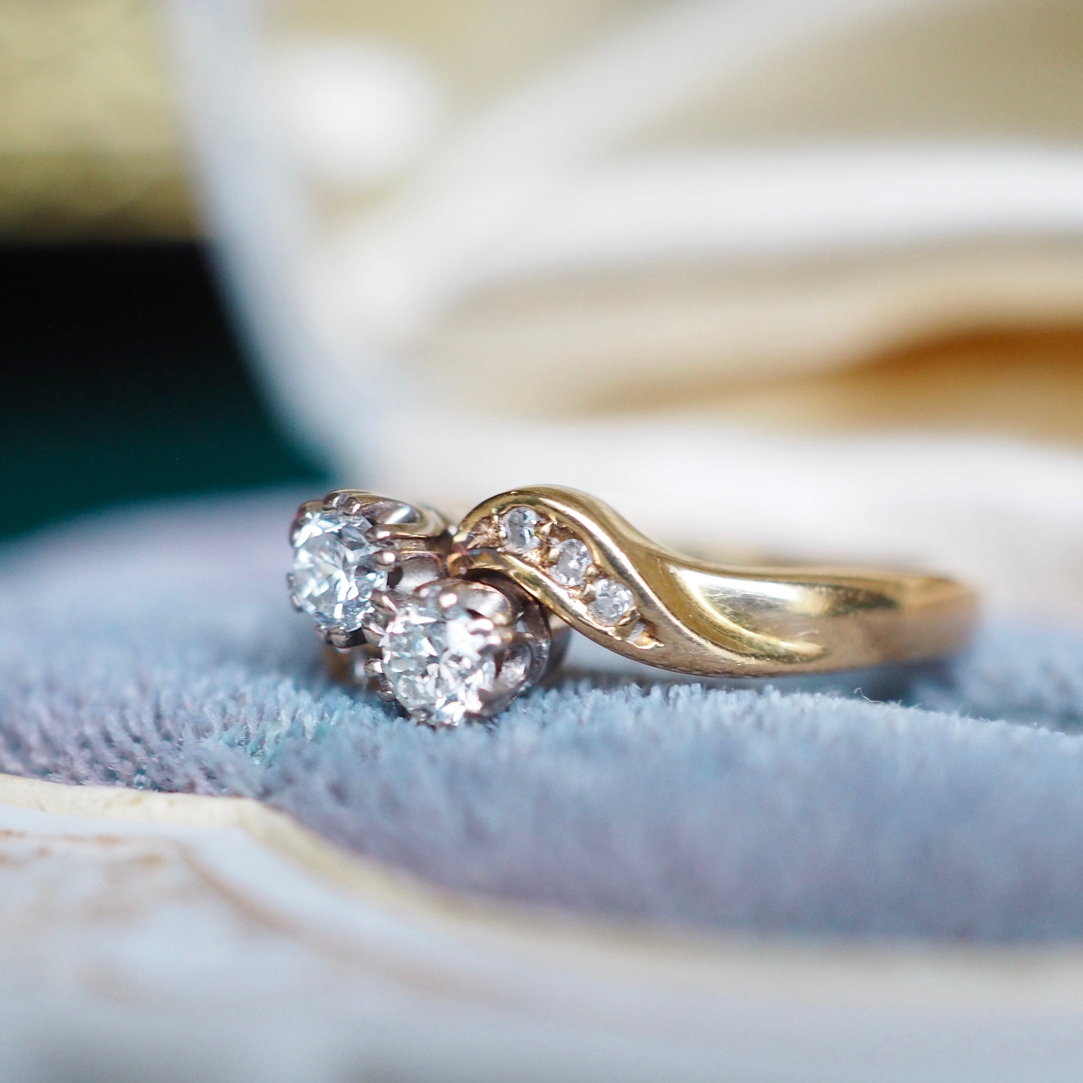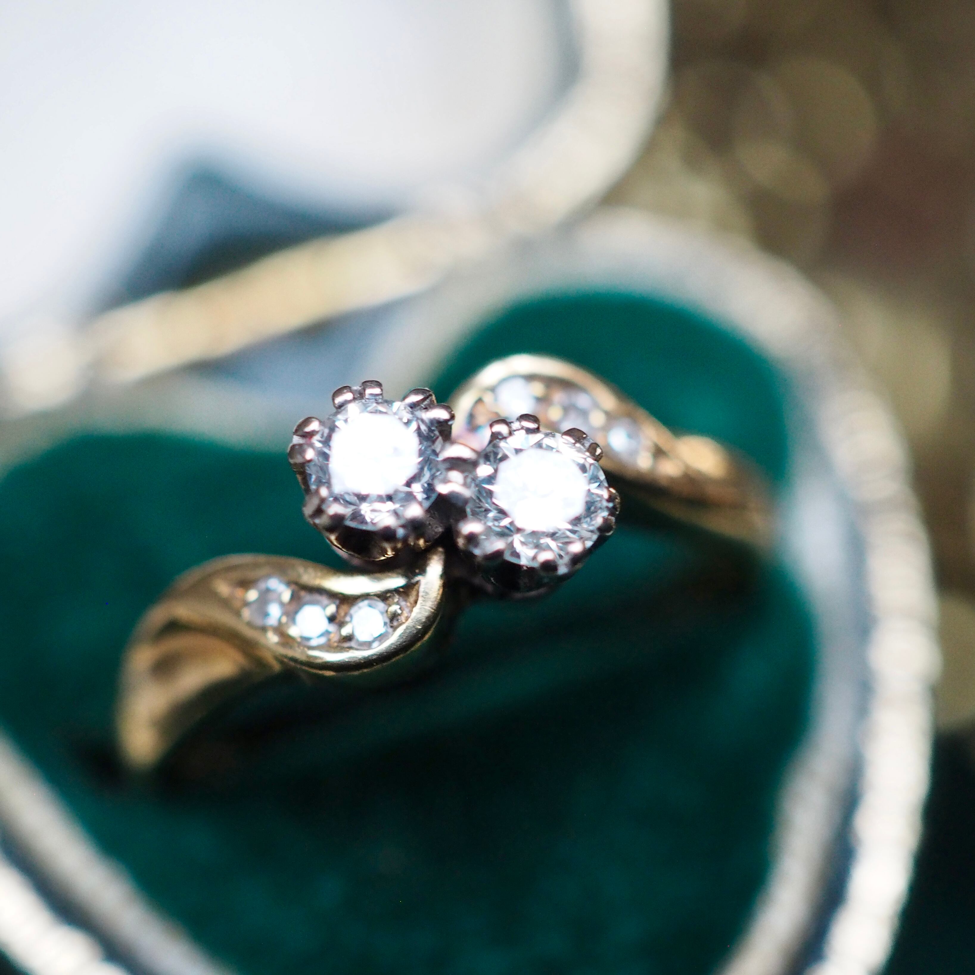 フランス語でtoi et moi「あなたと私」を意味する2つの宝石が隣り合った配置のリング。