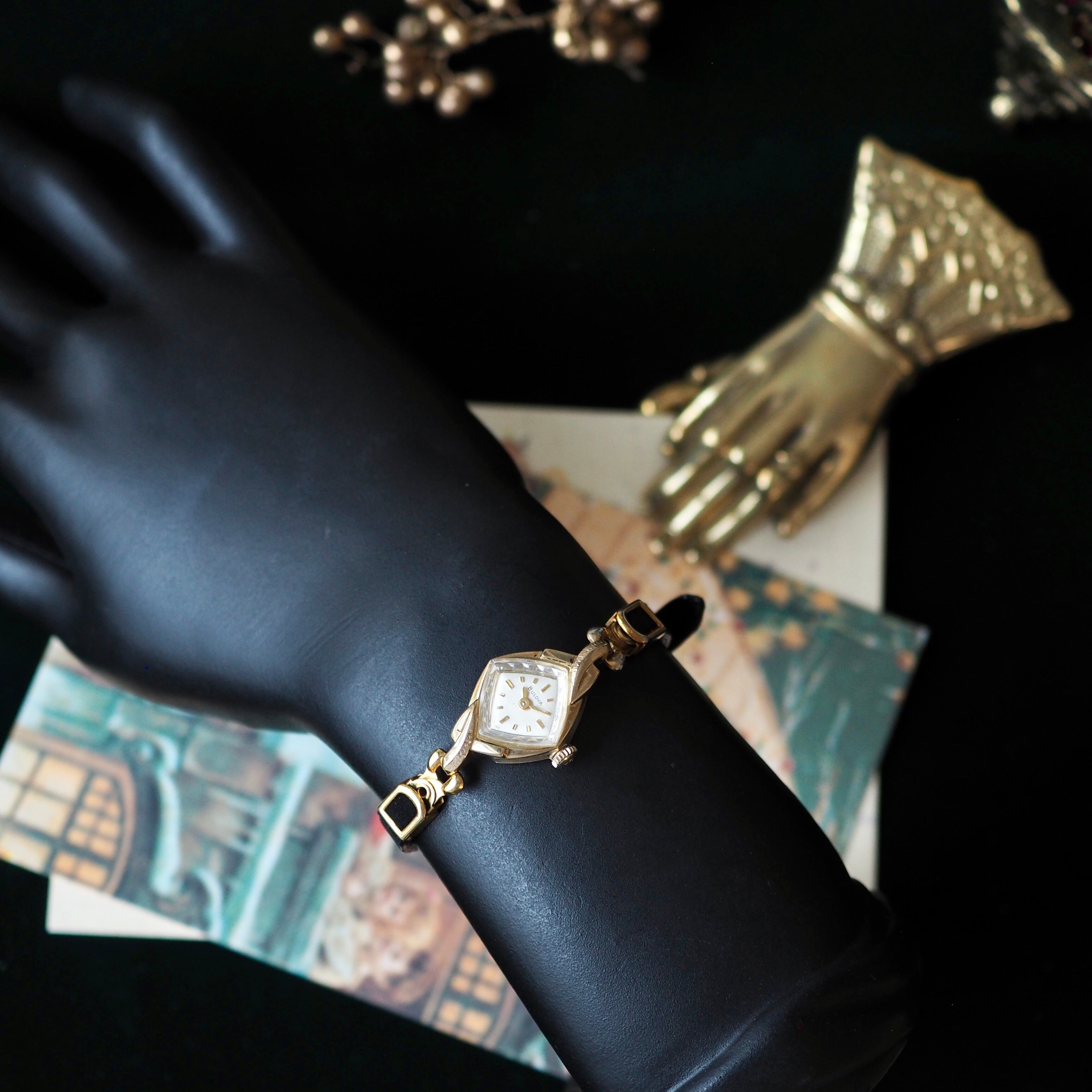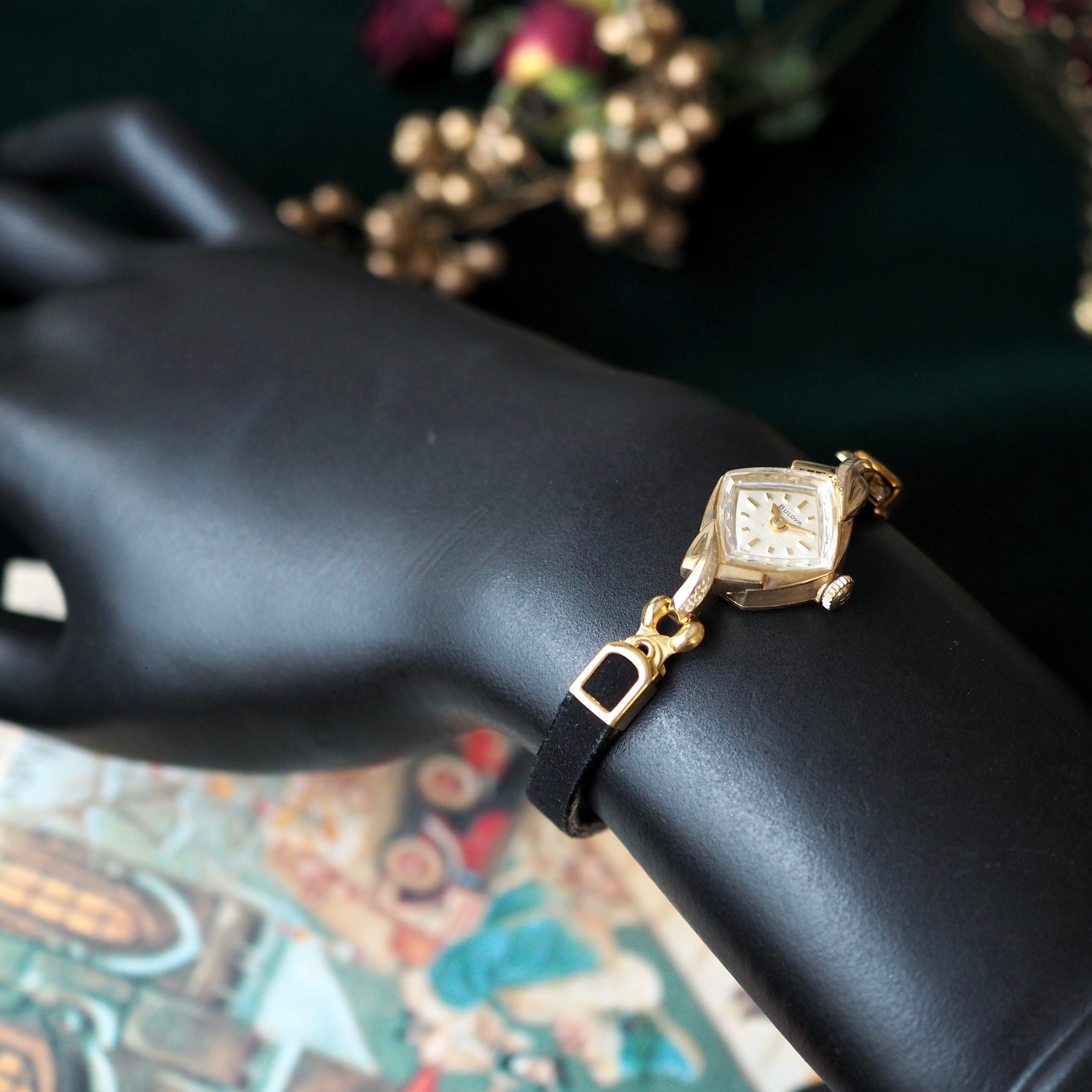 人目を引く金無垢の菱形ケースにボタニカルラグが可愛い60年代アンティーク・ブローバ。