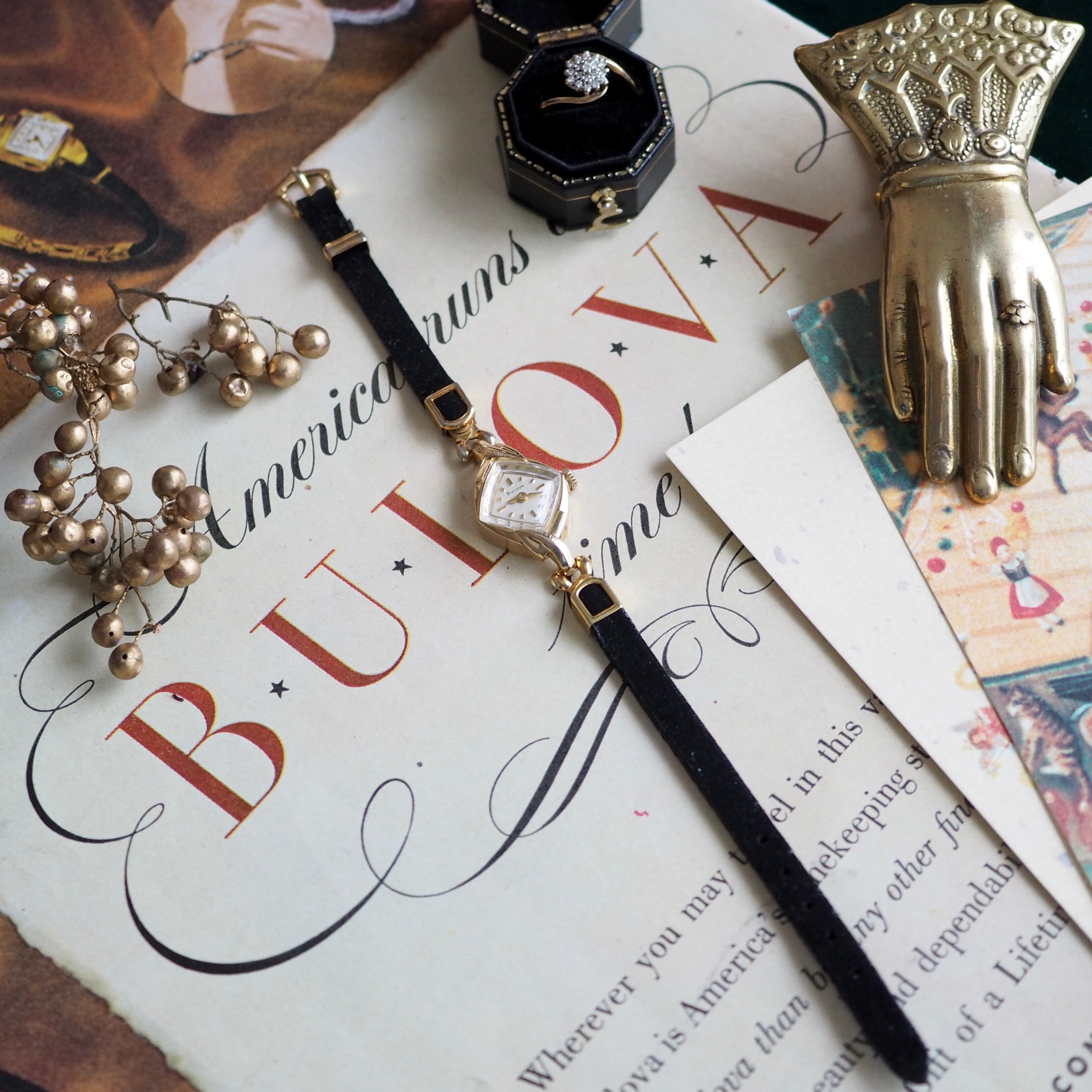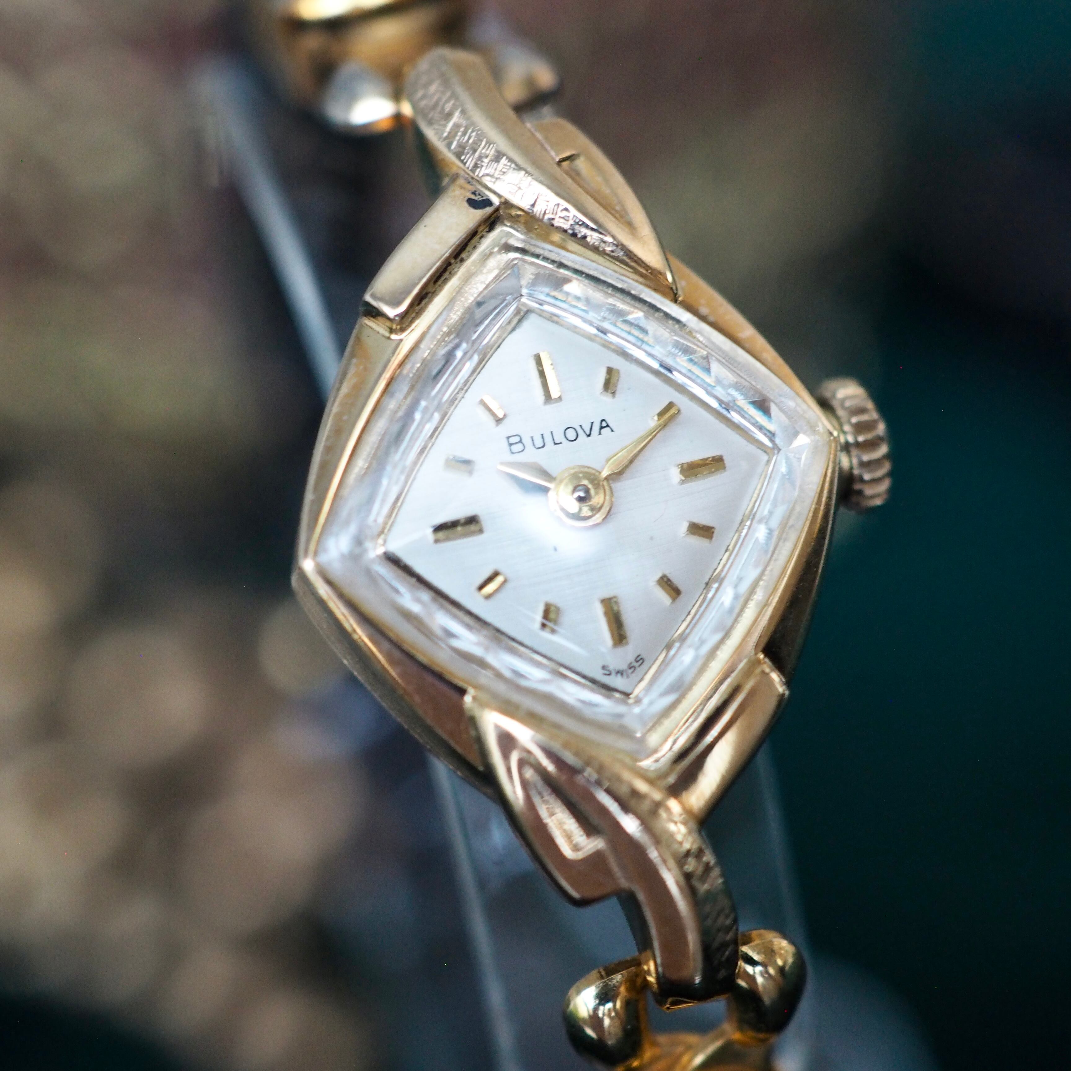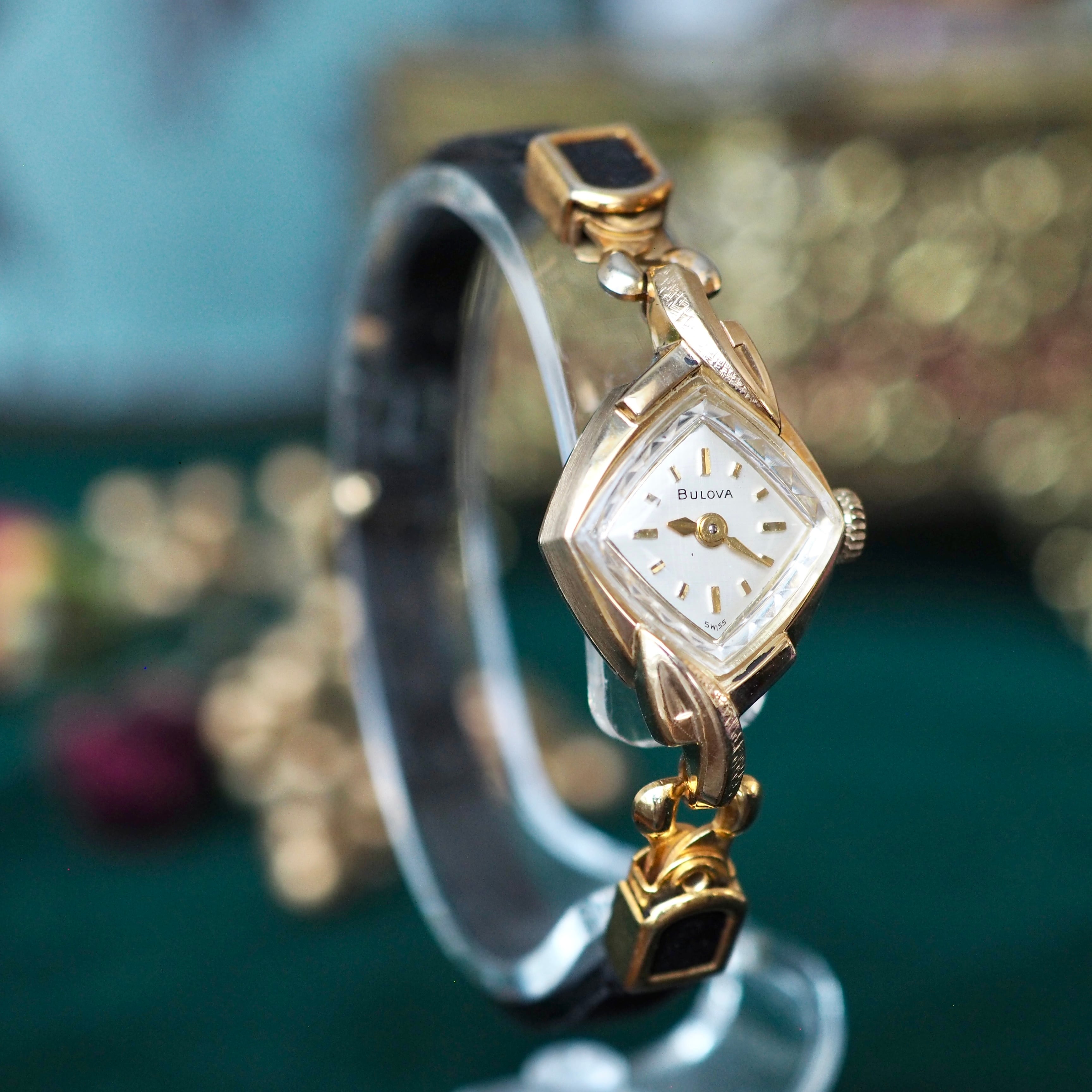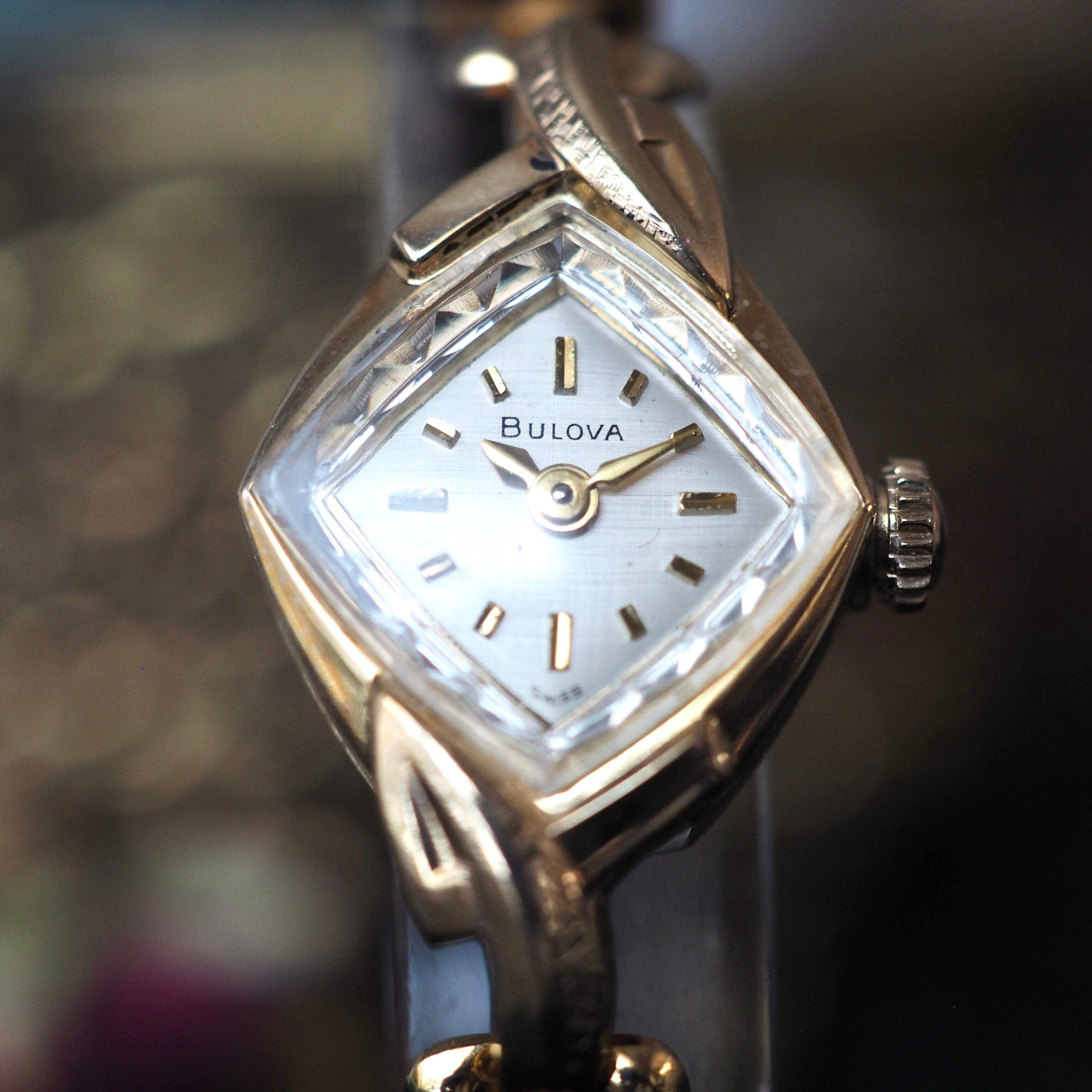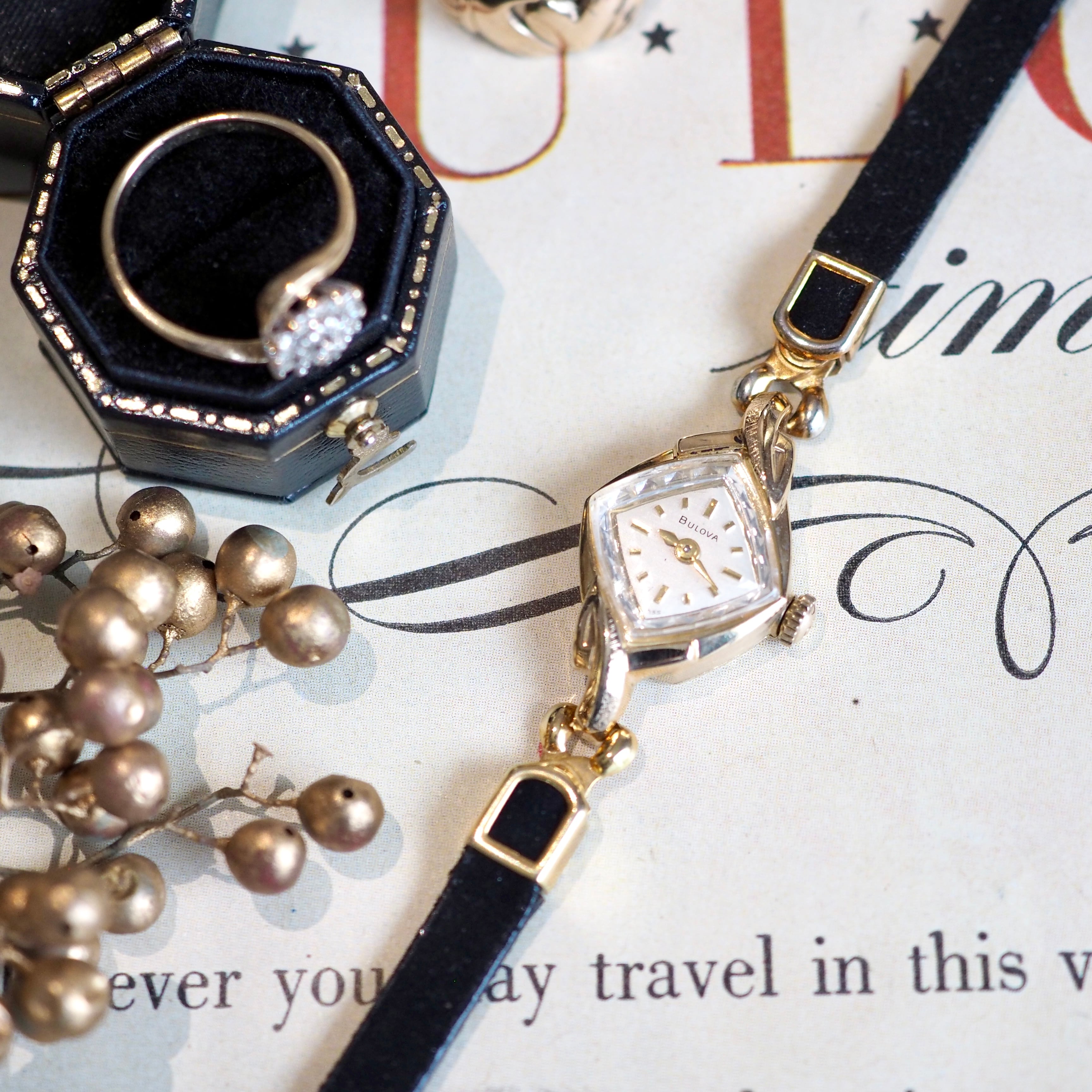 OH済 BULOVA ブローバ 金無垢 カクテルウォッチ アンティーク時計