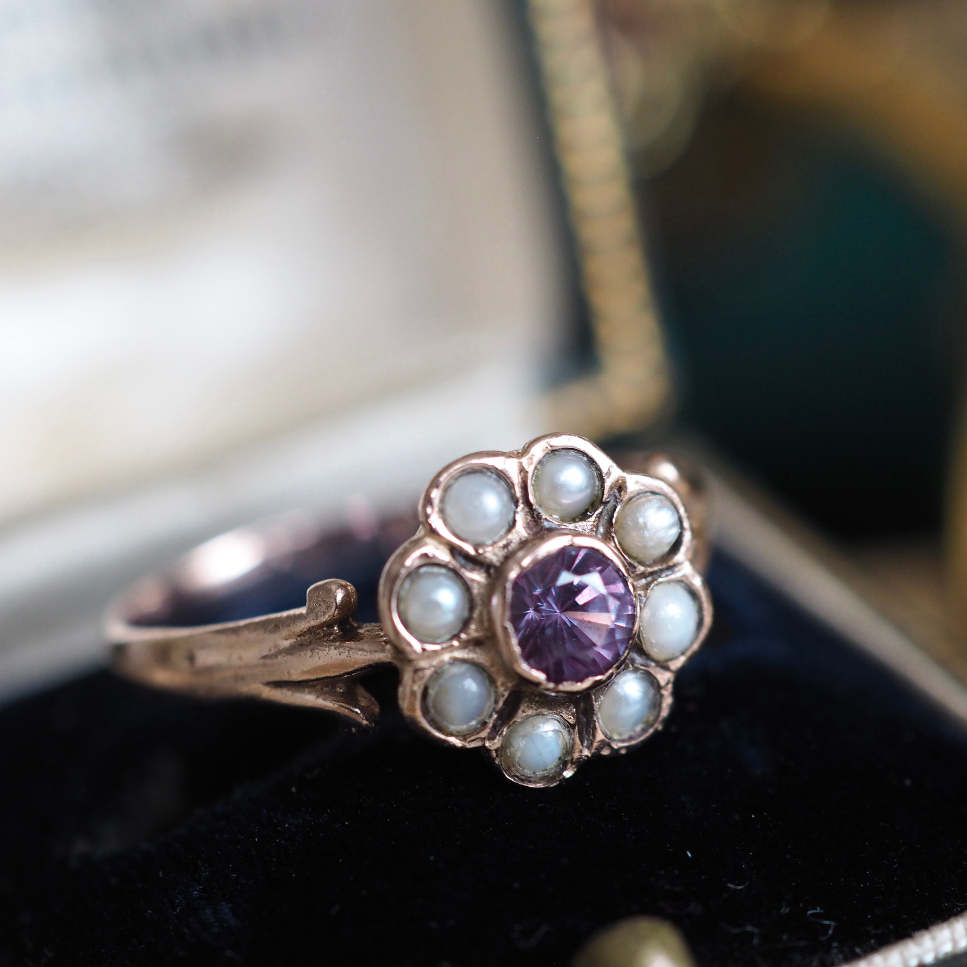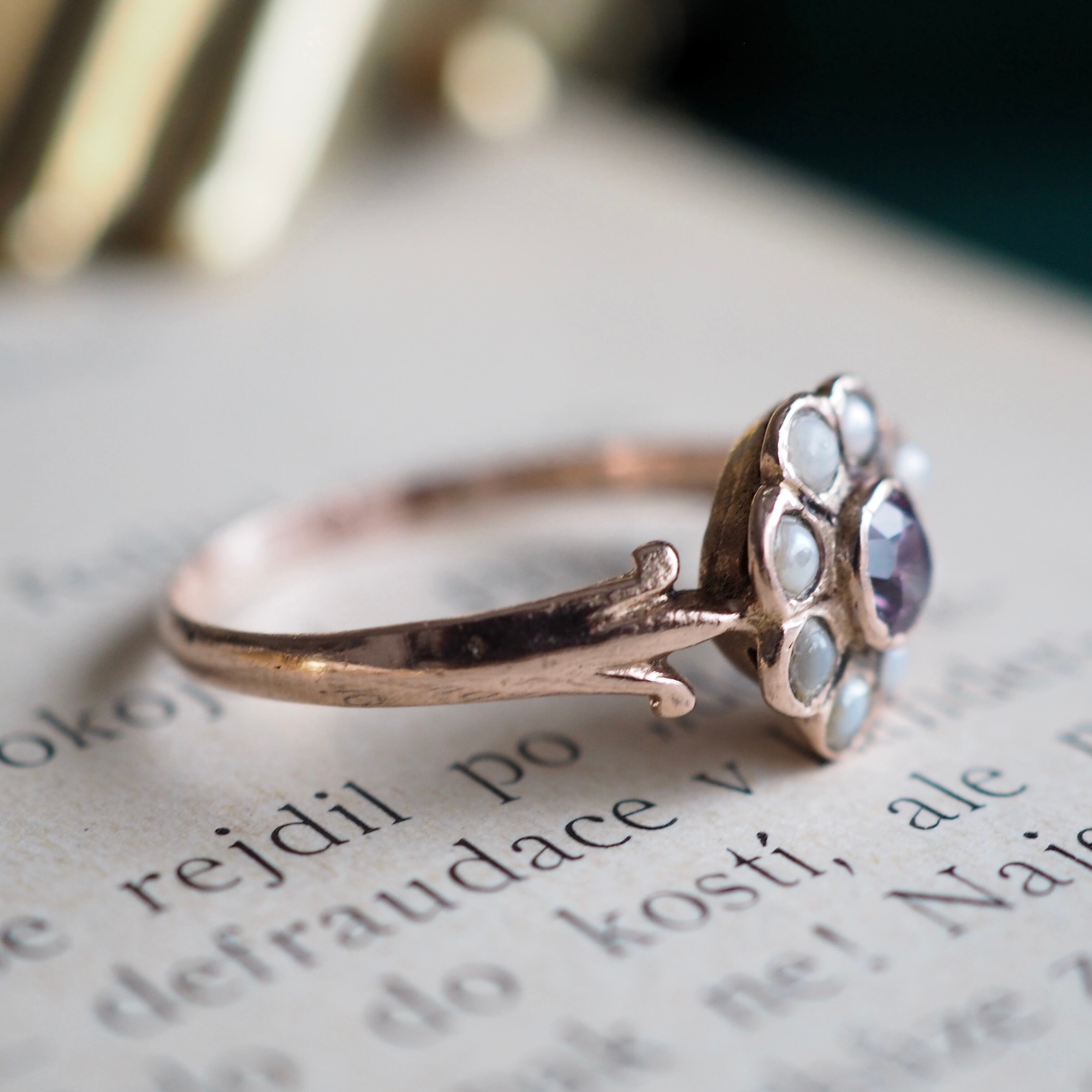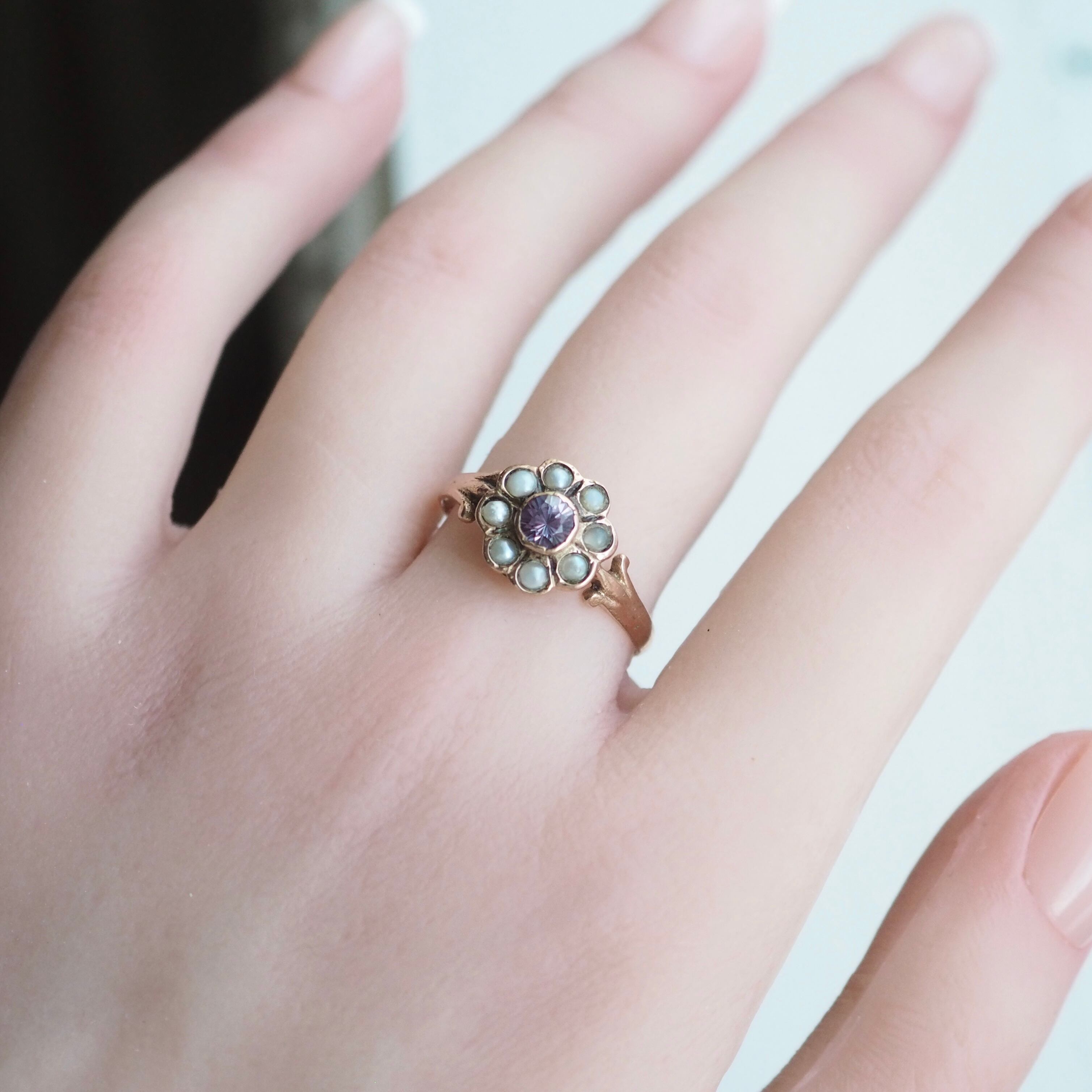 ❁ Antique Victorian amethyst and seed pearl daisy ring ❁