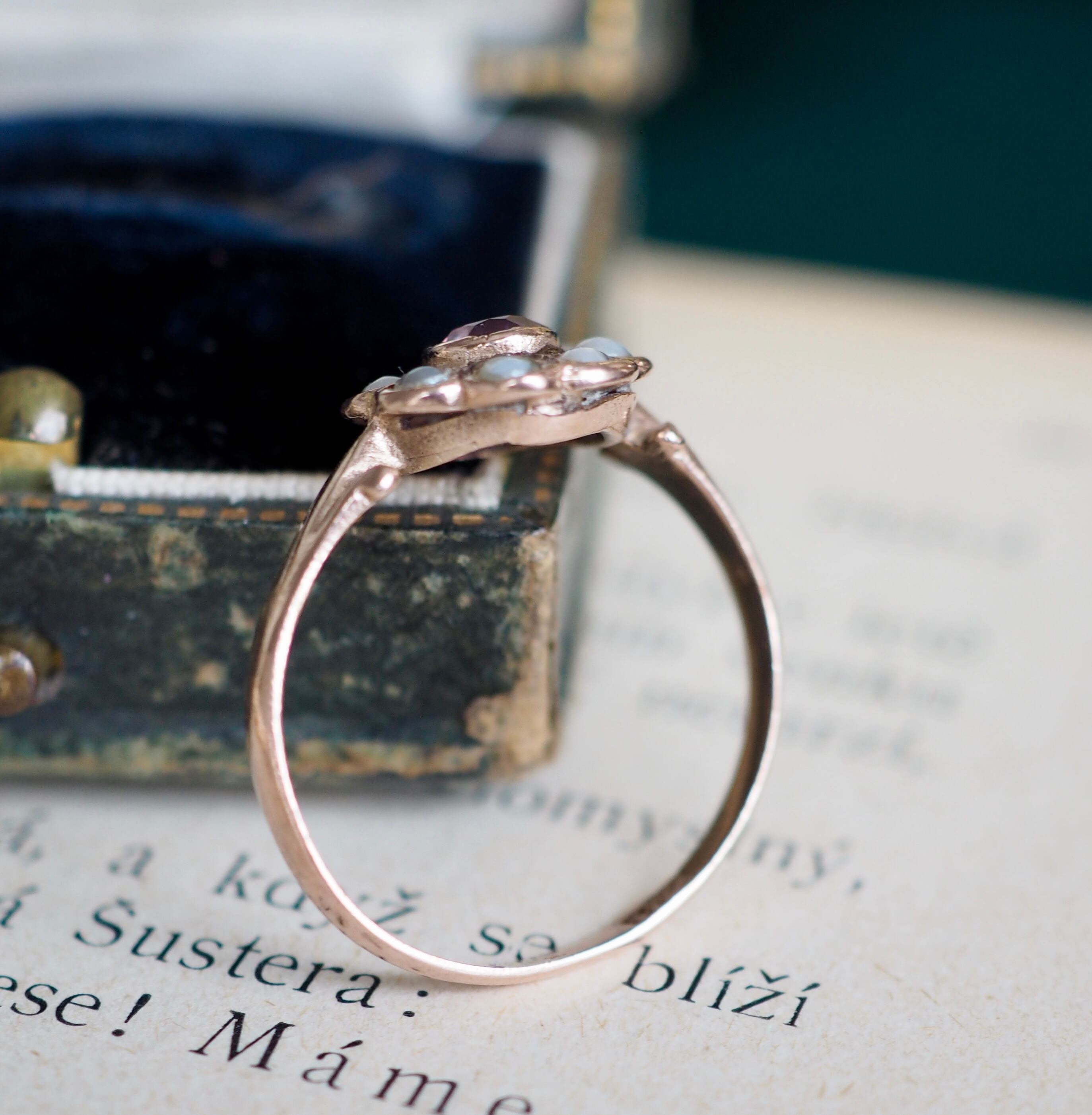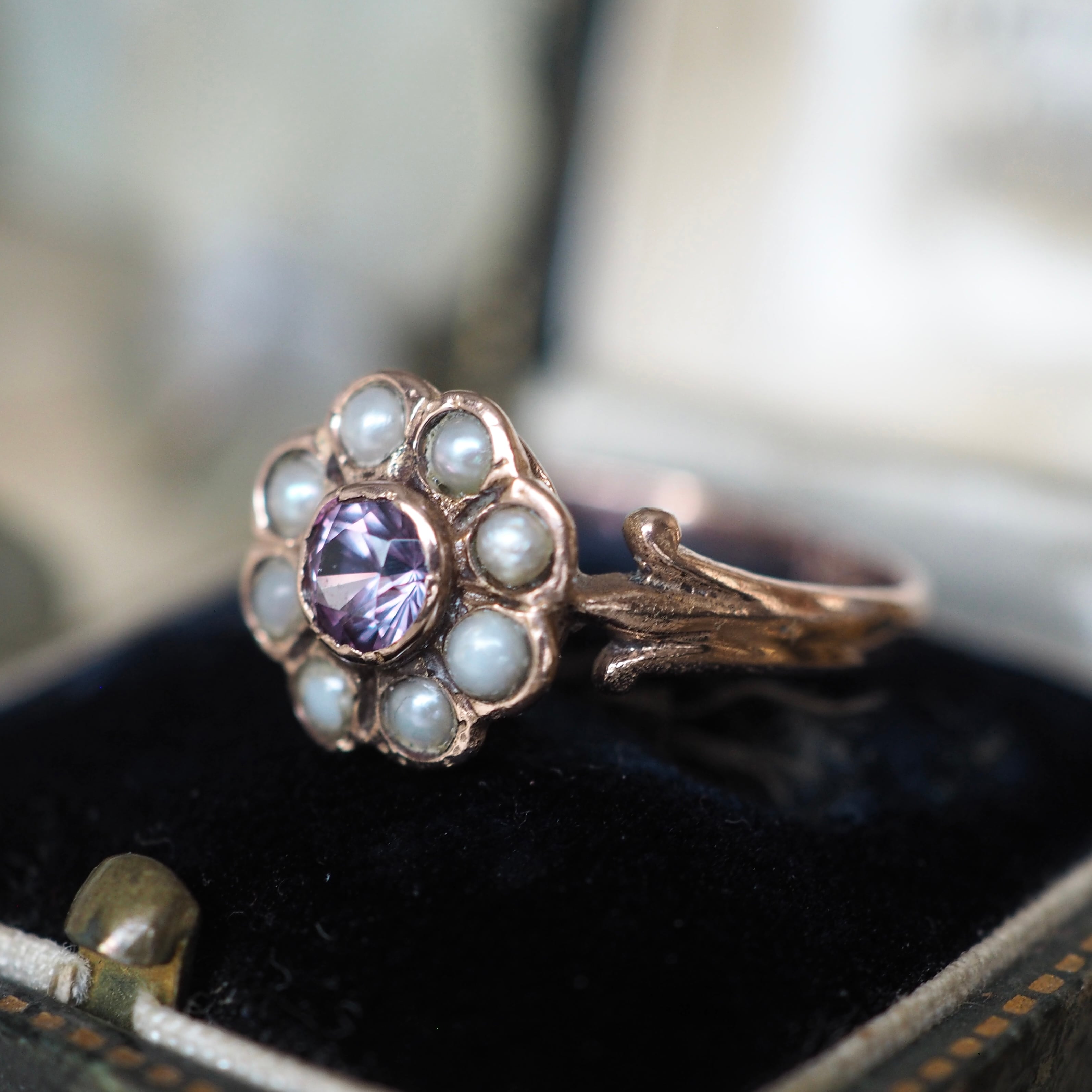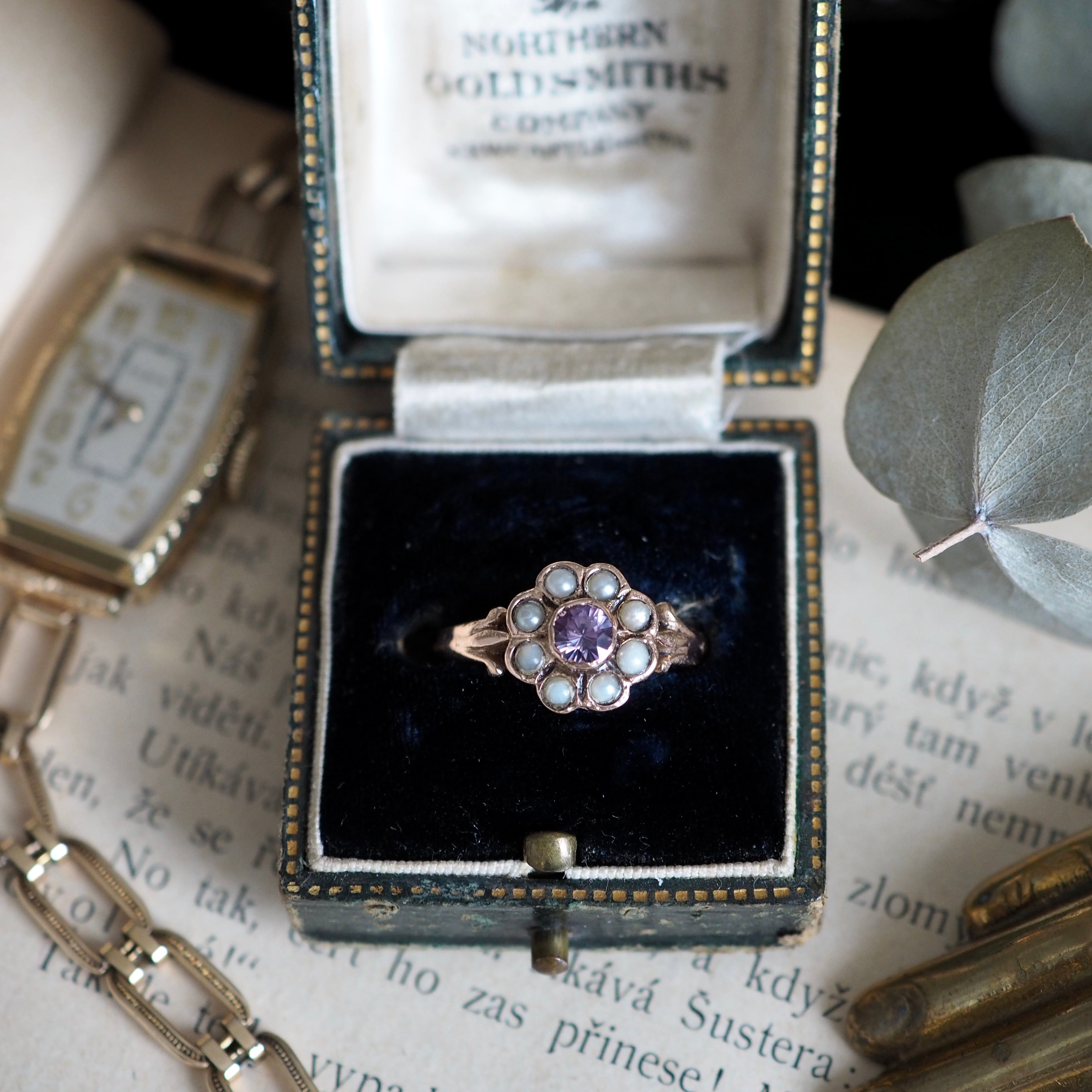 ❁ Antique Victorian amethyst and seed pearl daisy ring ❁