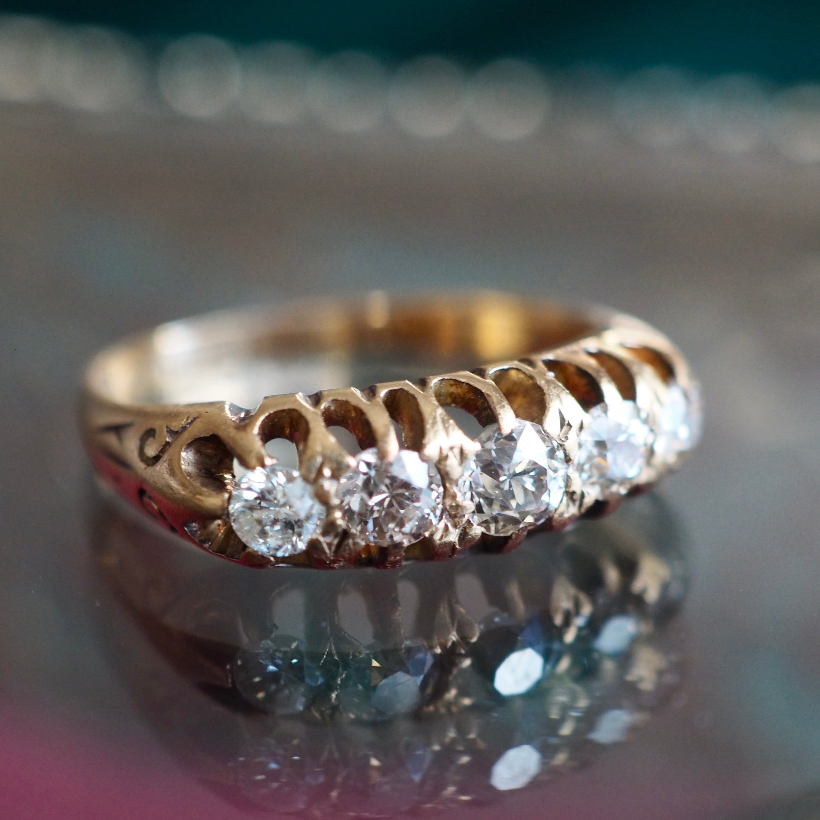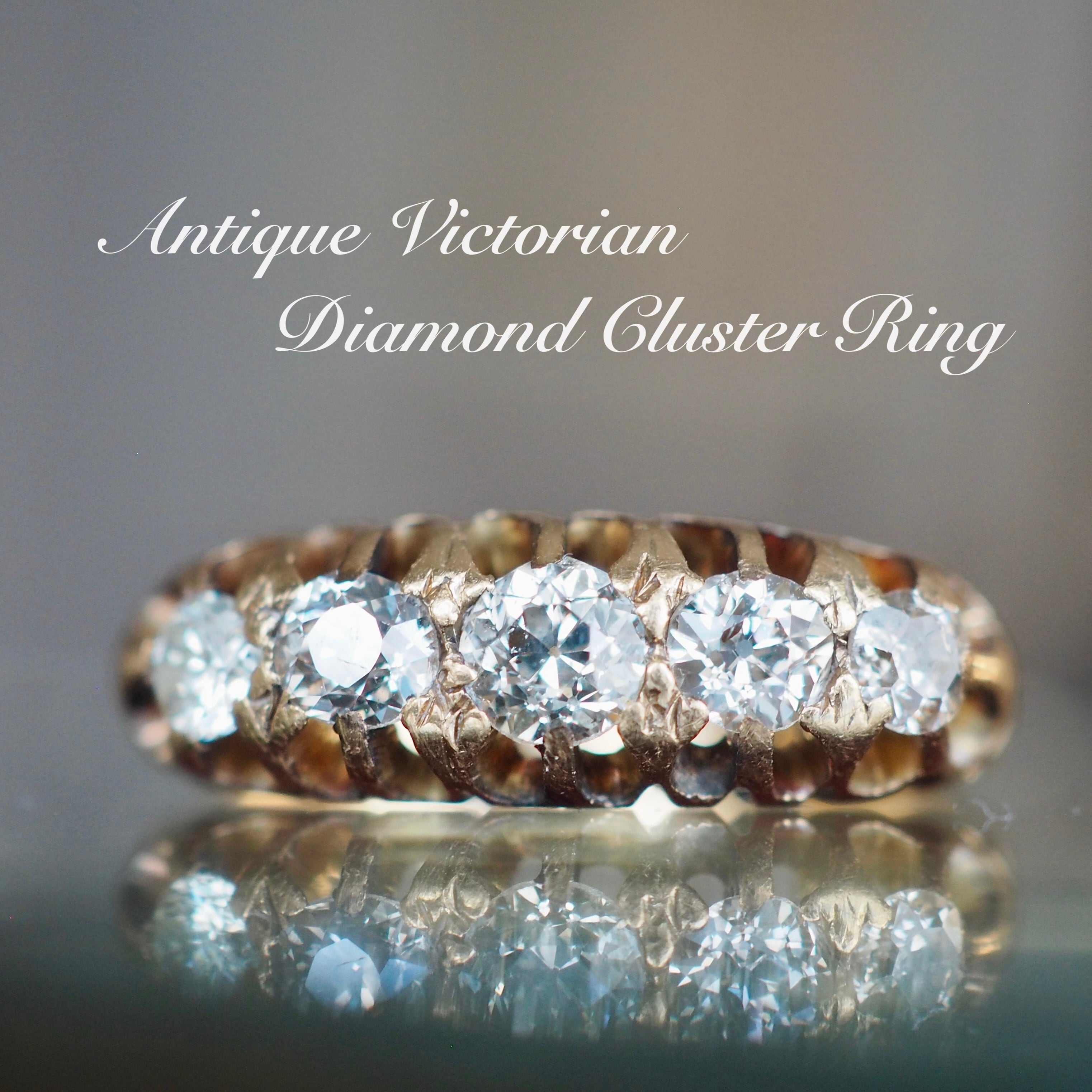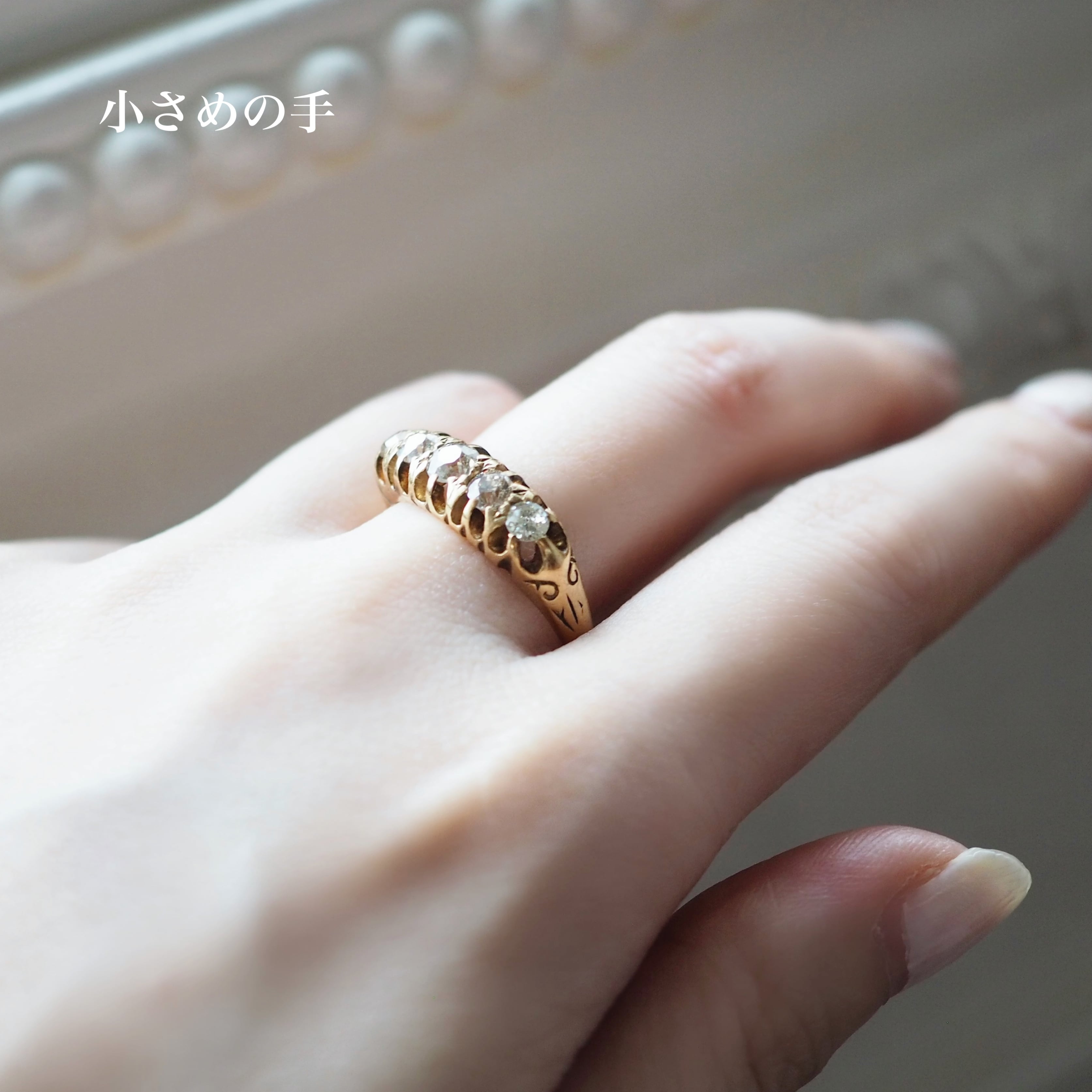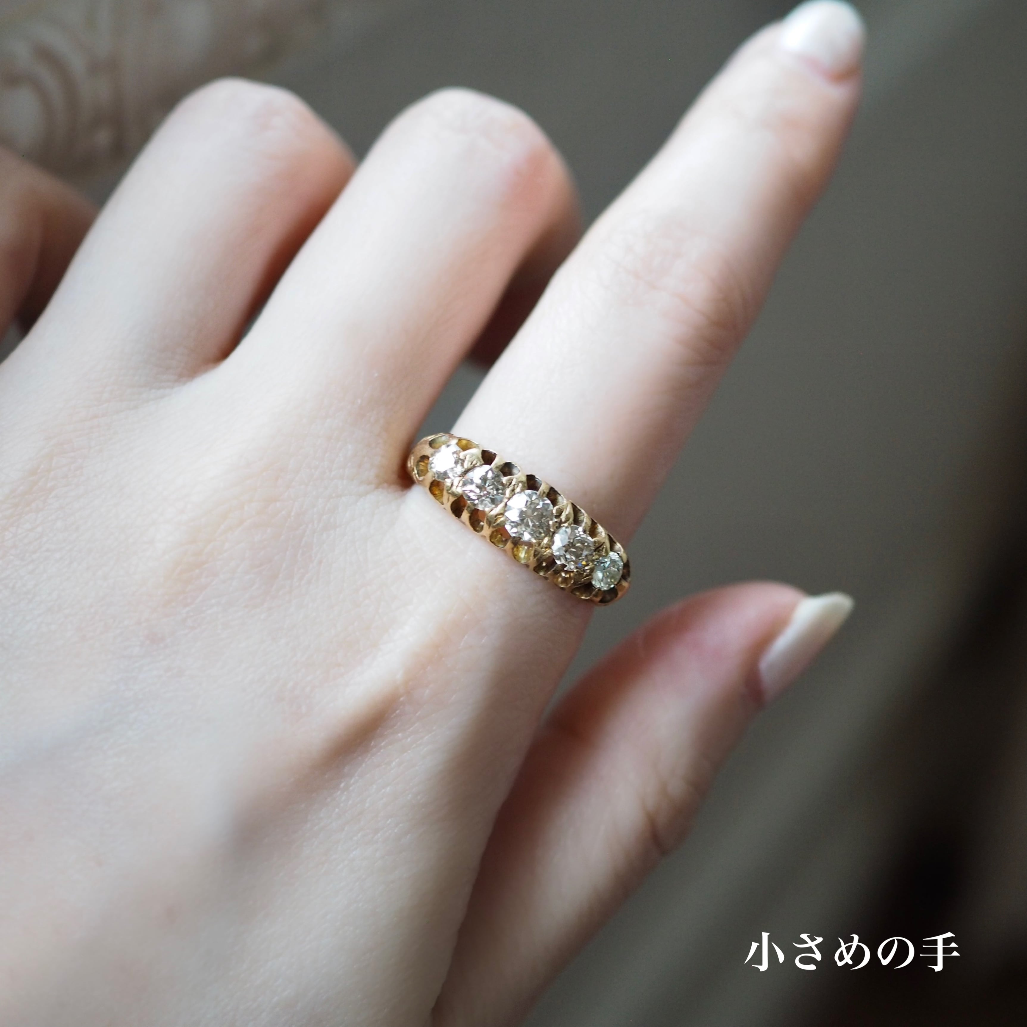 コロンとしたオールドヨーロピアンカットがほどこされたダイヤ5石がセットされたヴィクトリアン・リング。