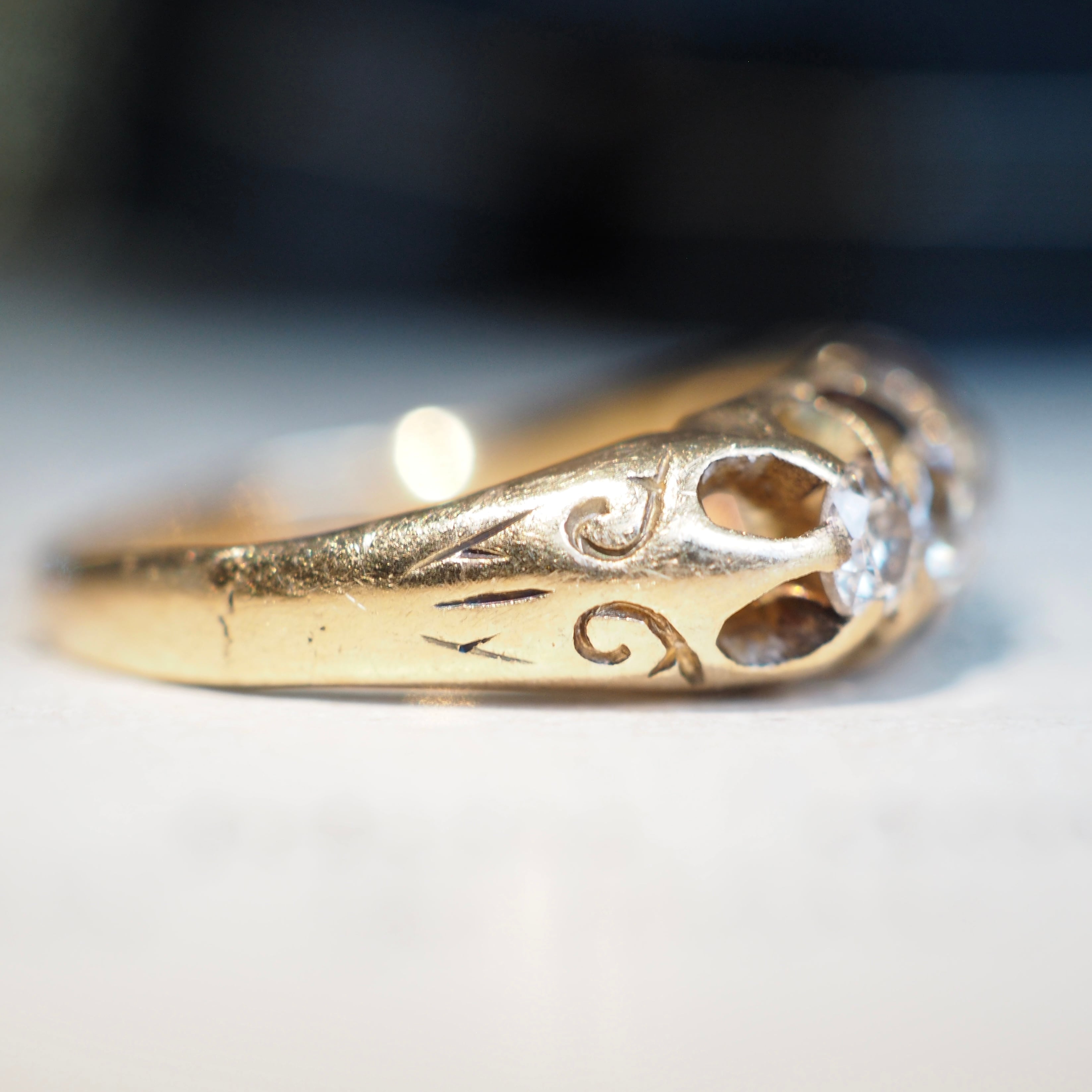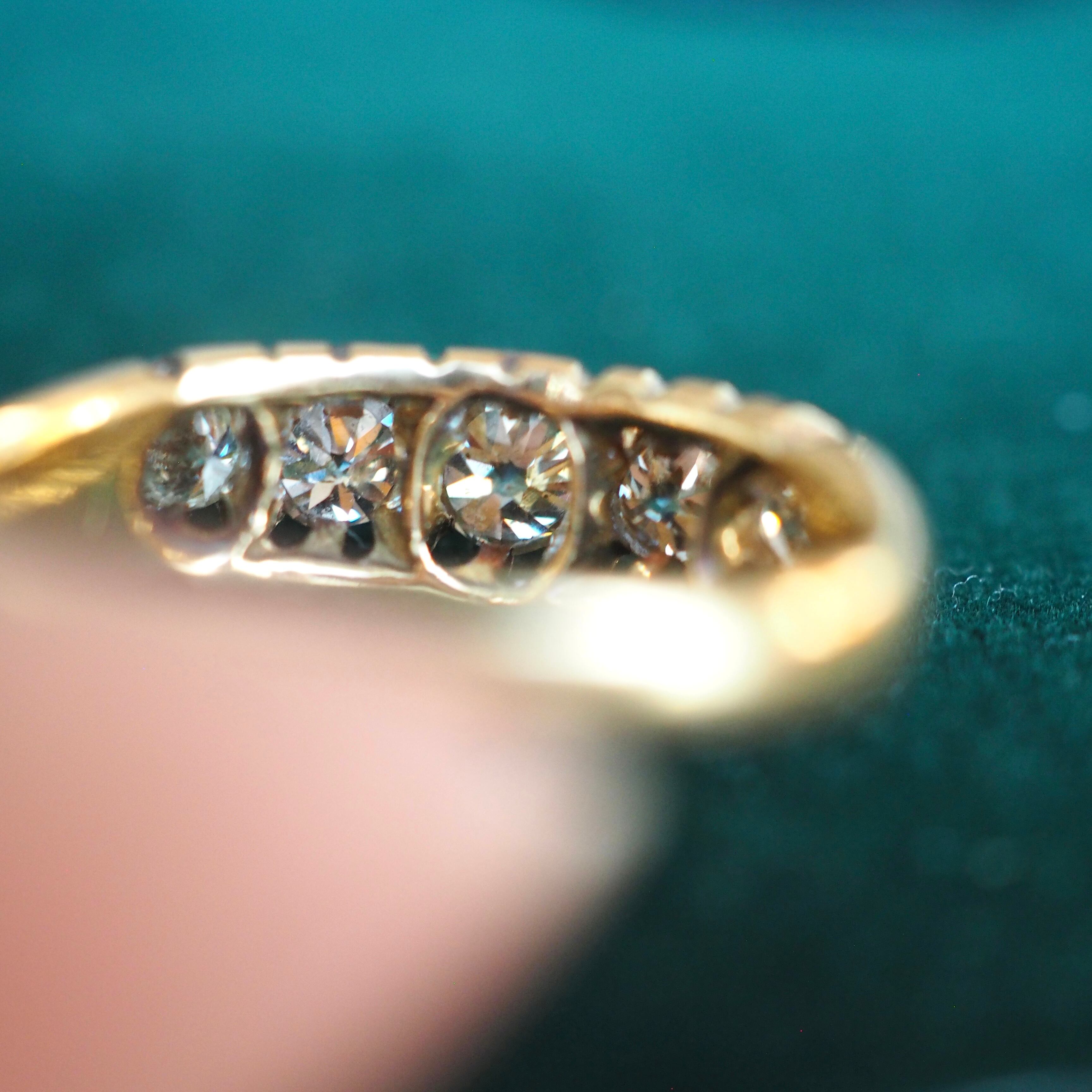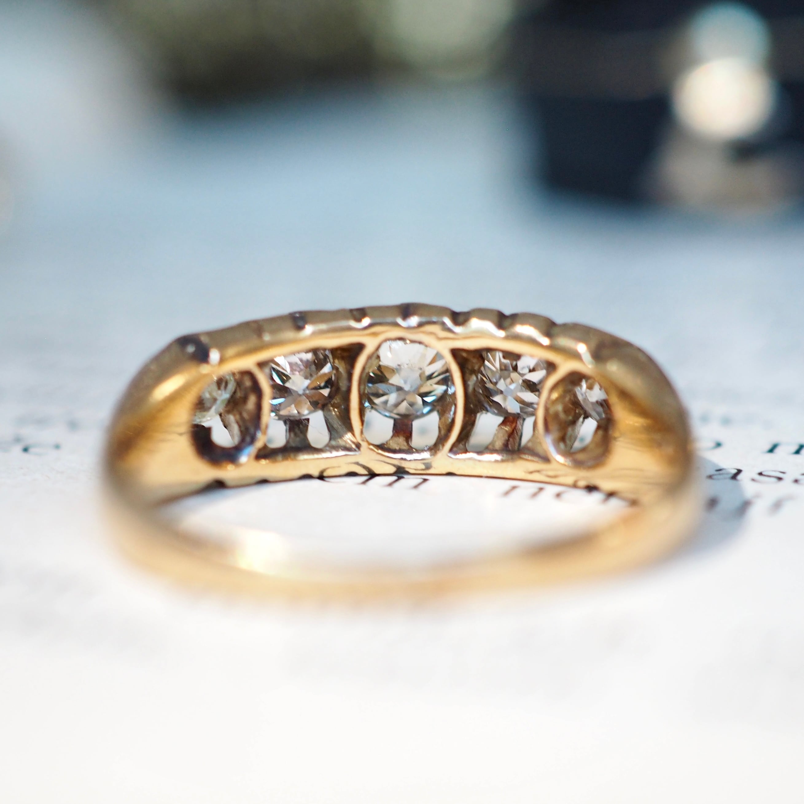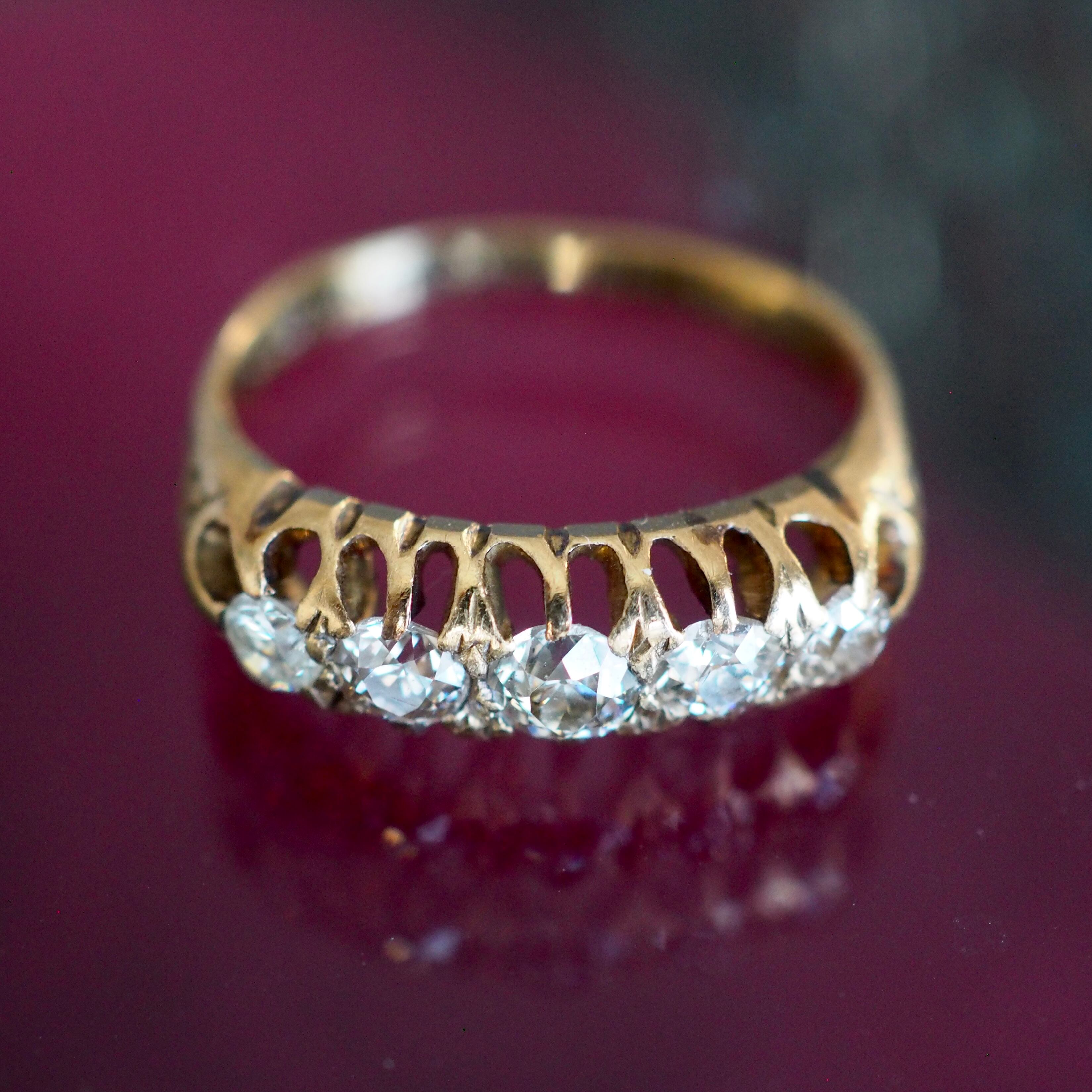 コロンとしたオールドヨーロピアンカットがほどこされたダイヤ5石がセットされたヴィクトリアン・リング。